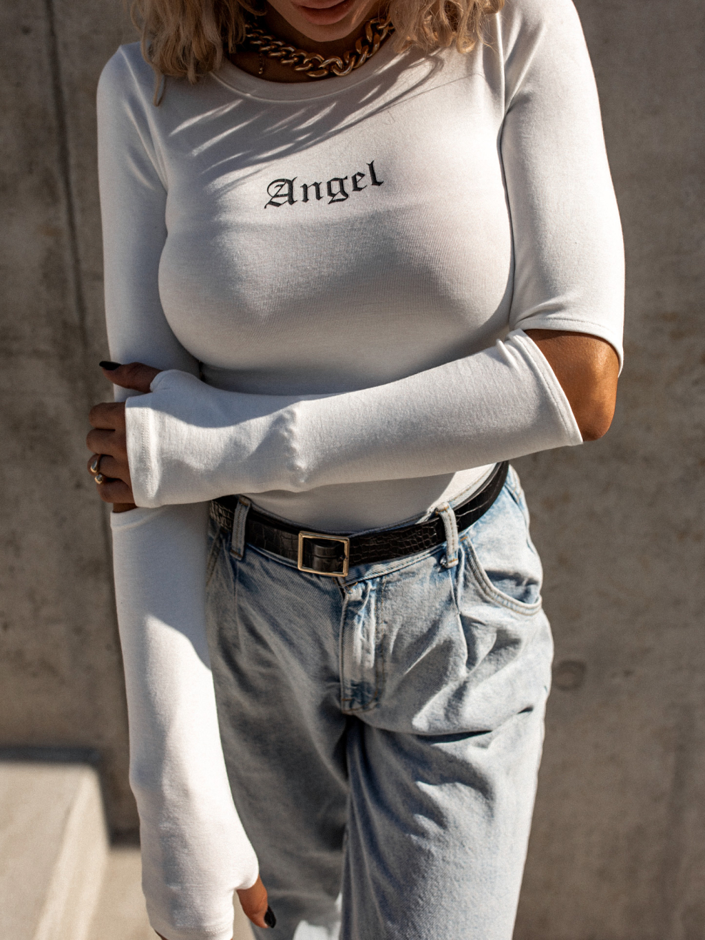 Bílé triko ANGEL s průstřihy na rukávech