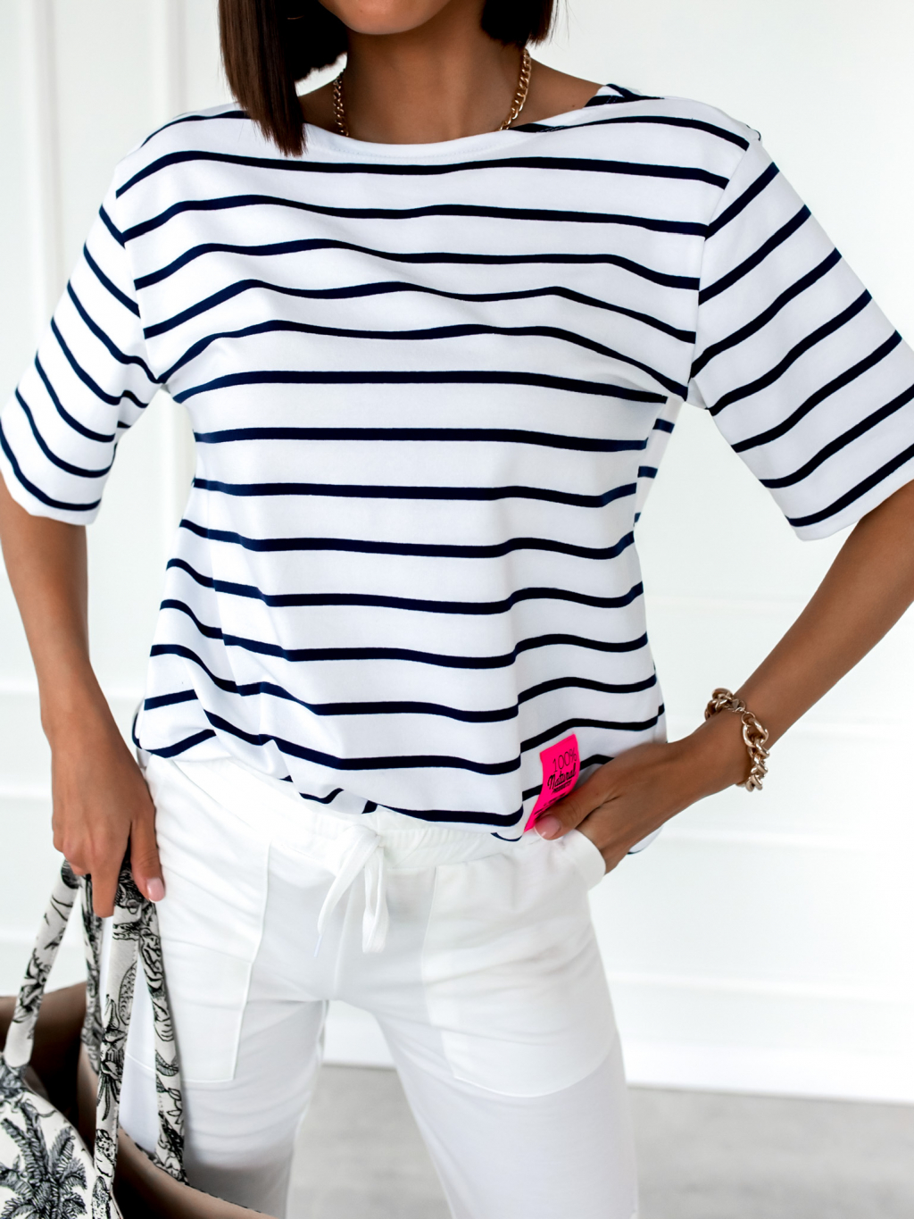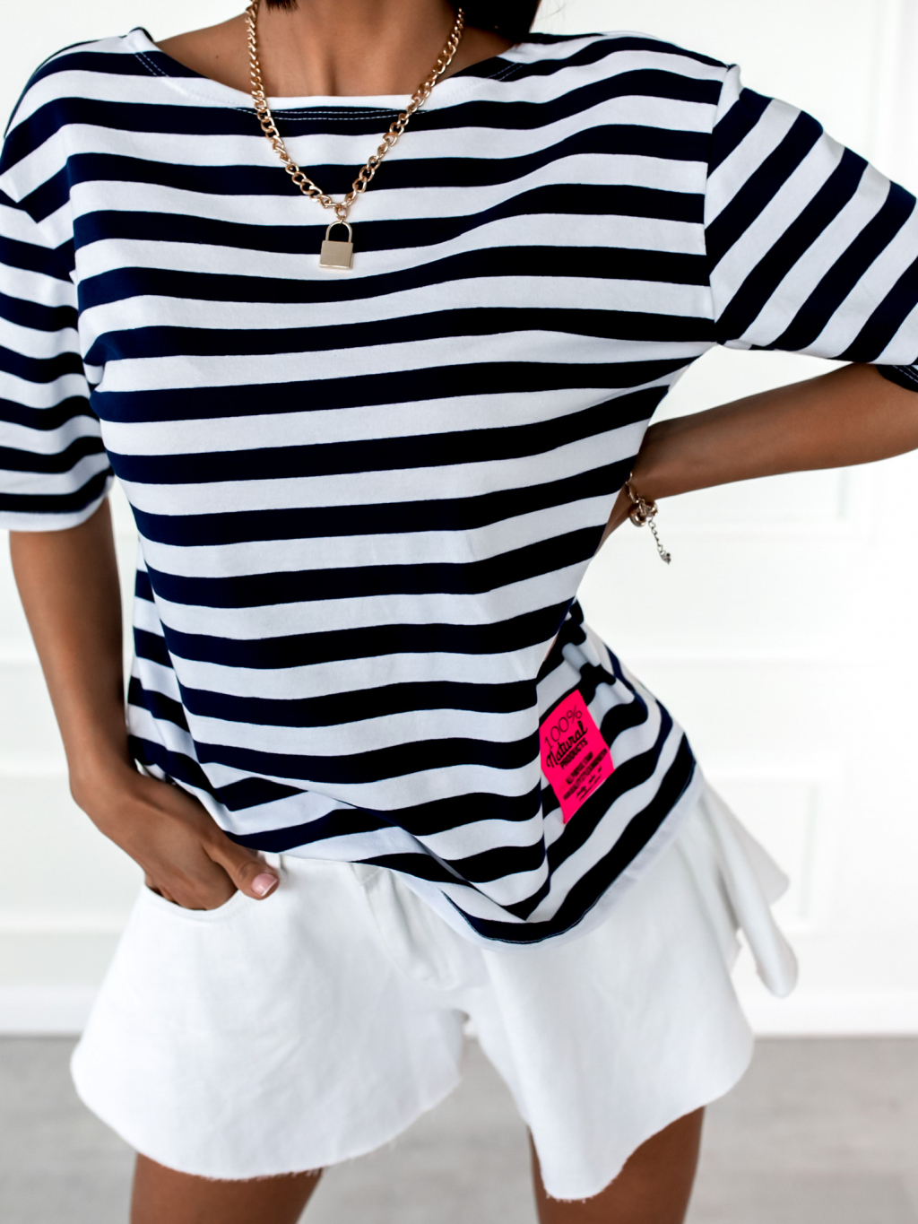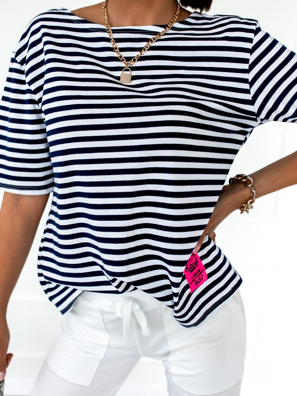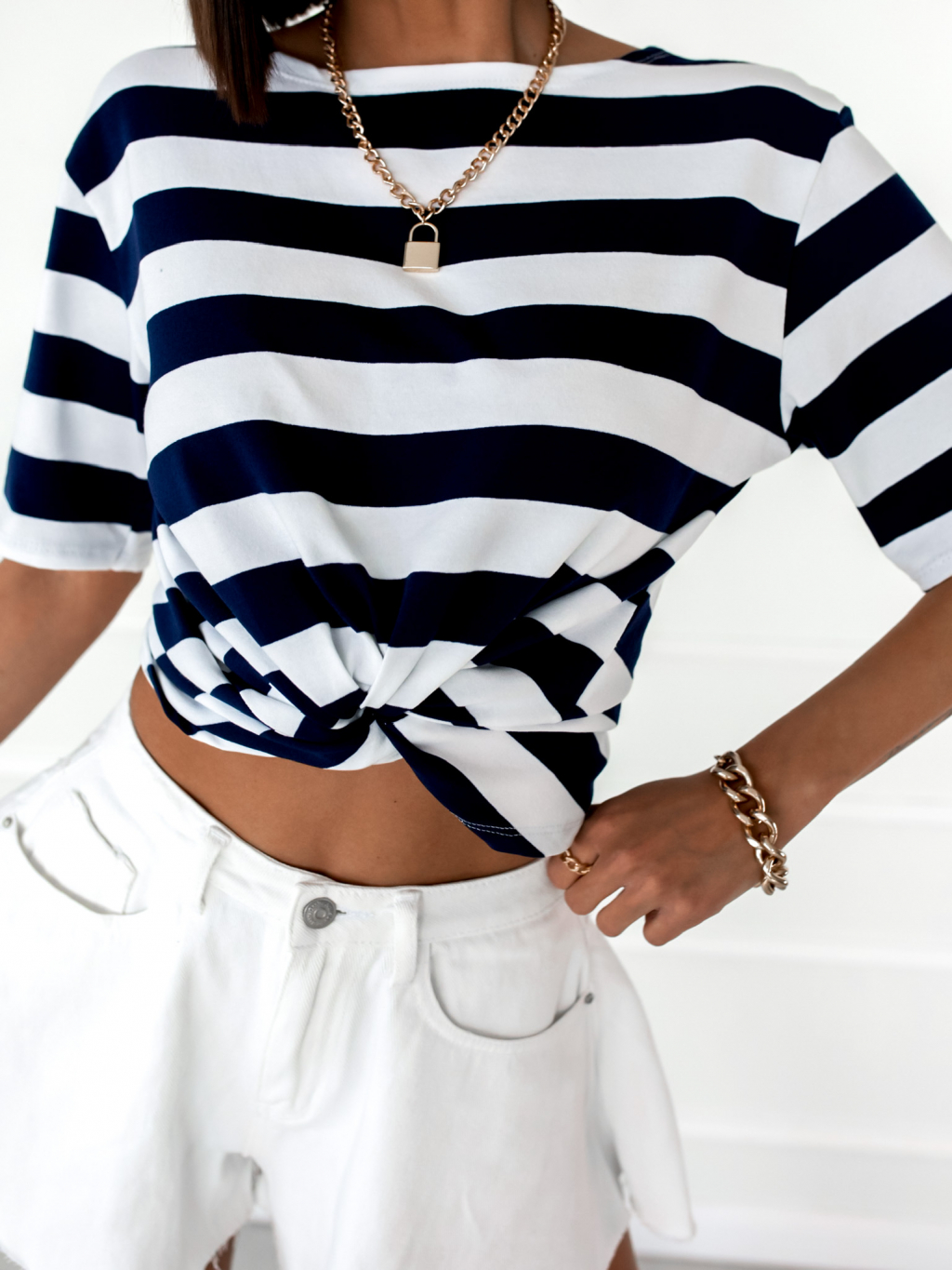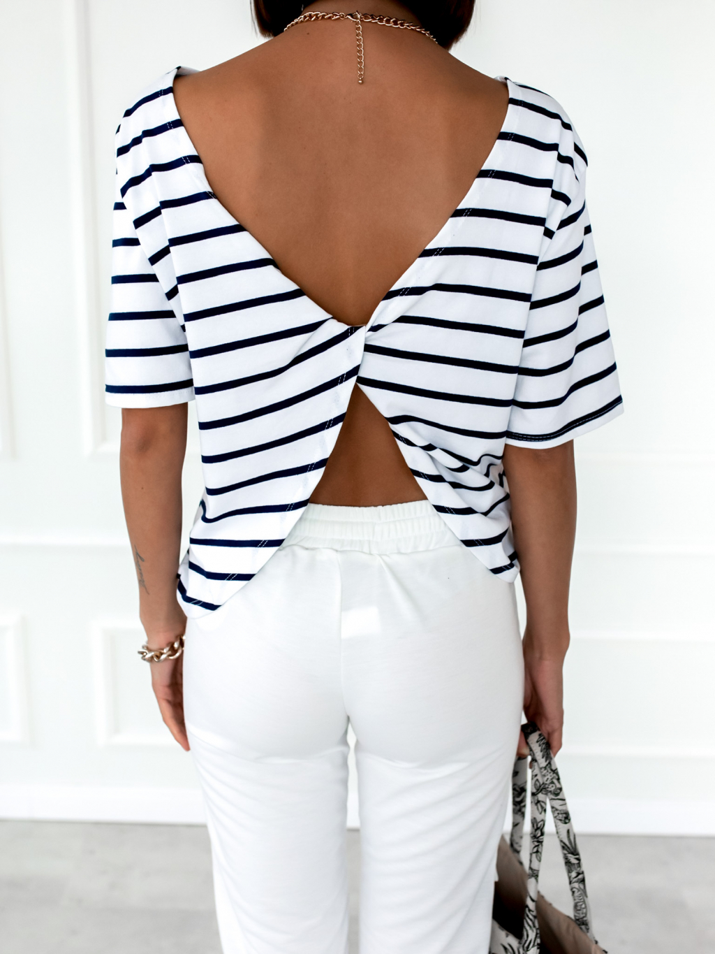 Bílo modré proužkované triko STAMP s odhalenými zády