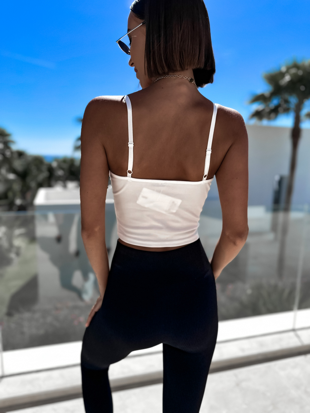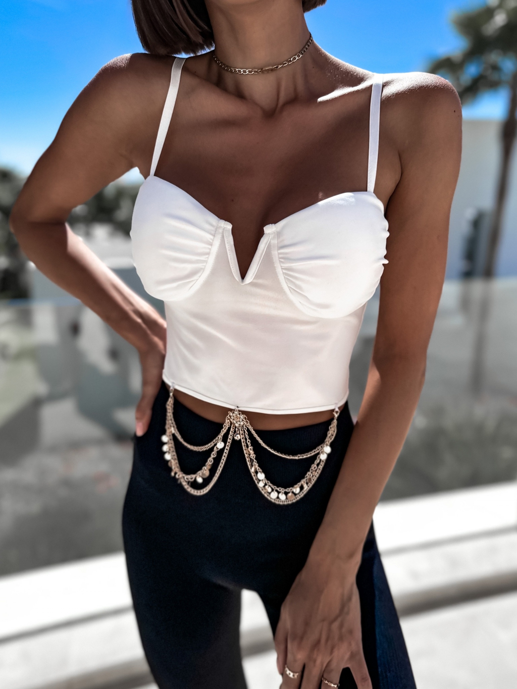 Bílý elegantní crop top LAURALIS se zlatým detailem