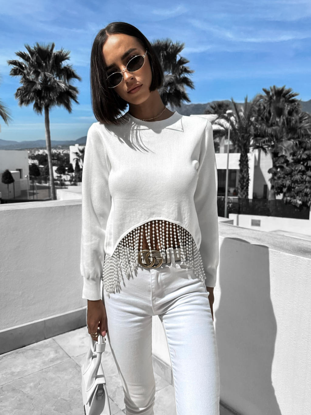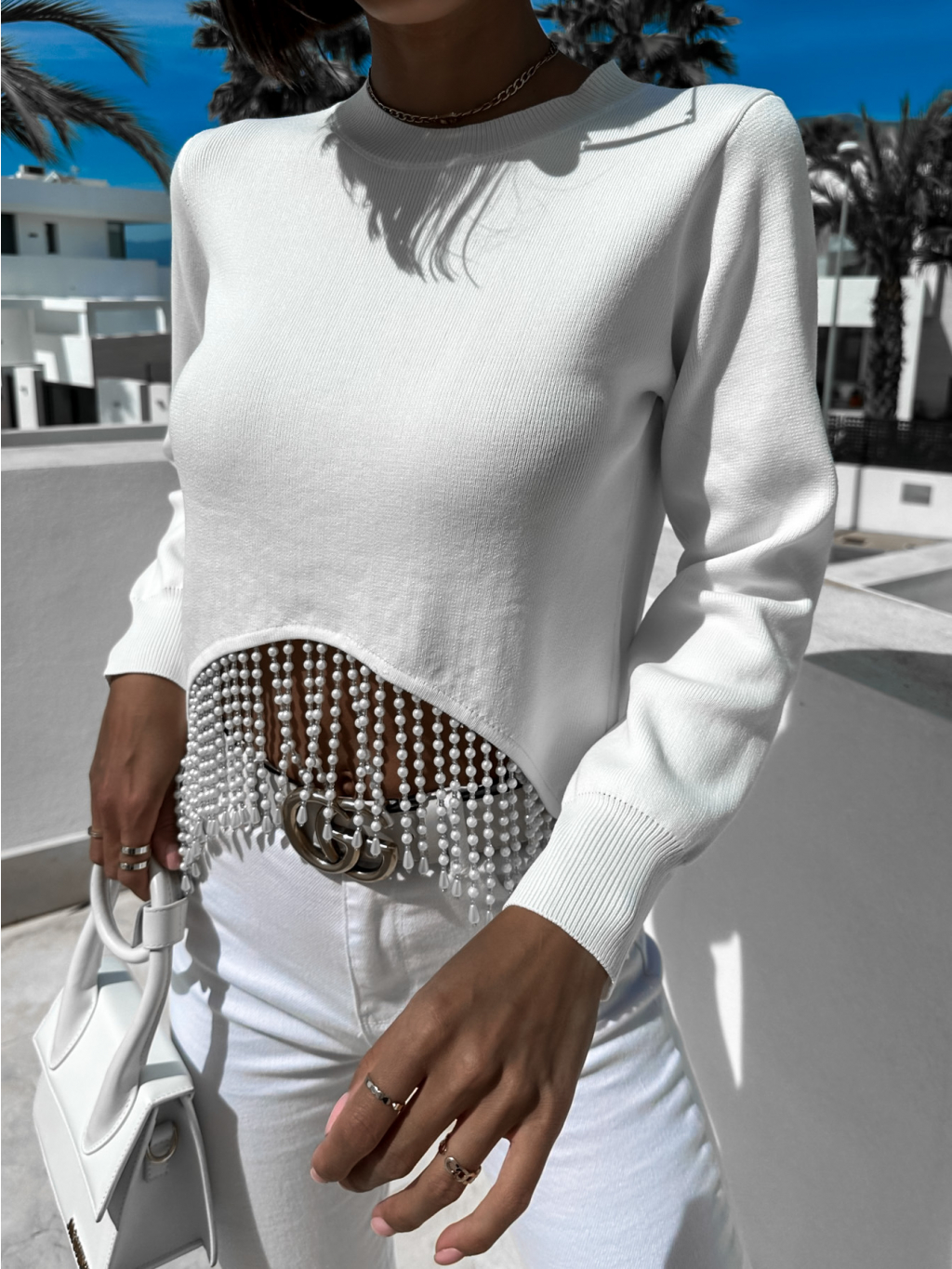 Bílý elegantní top DHARA s perličkami