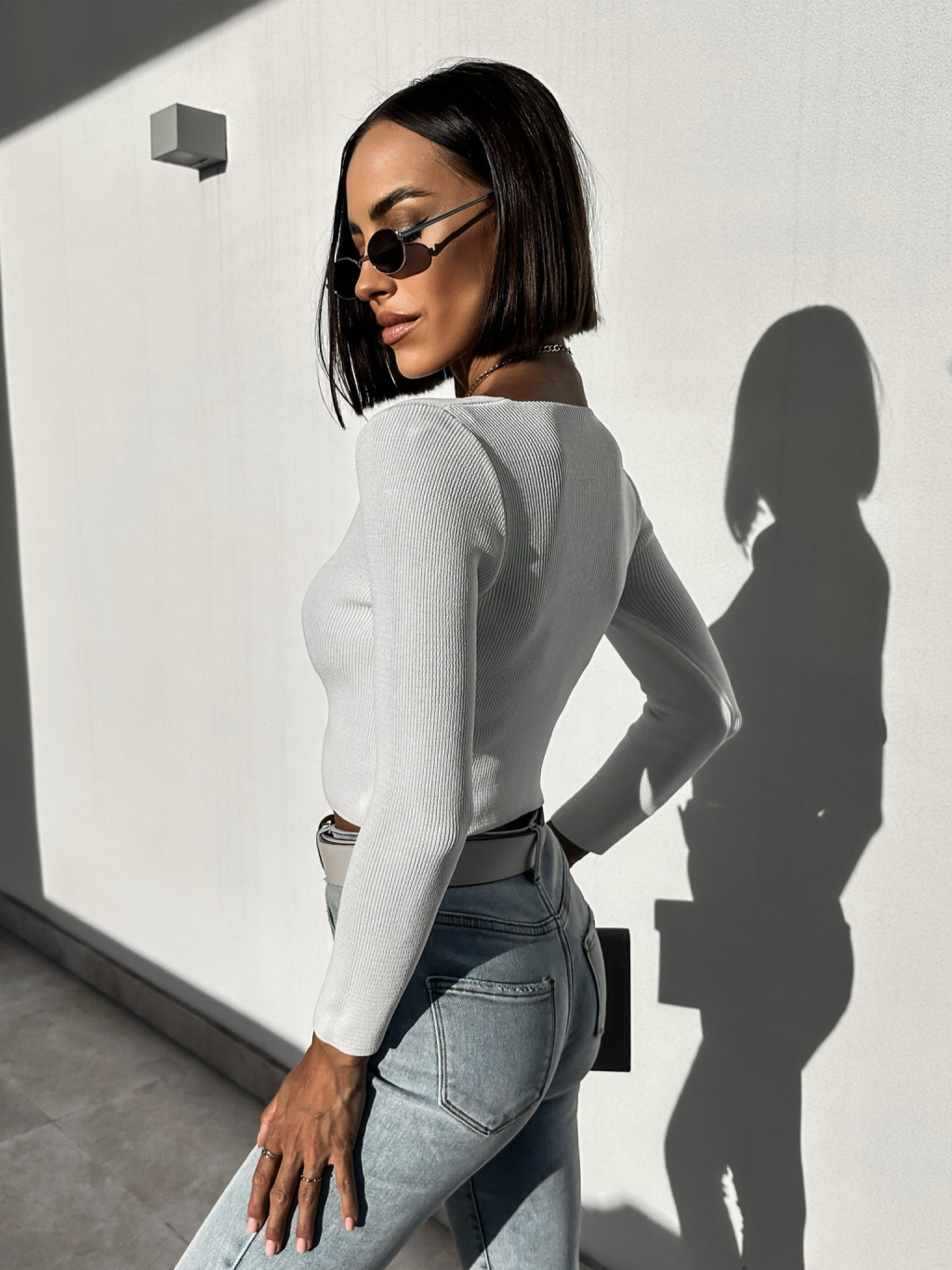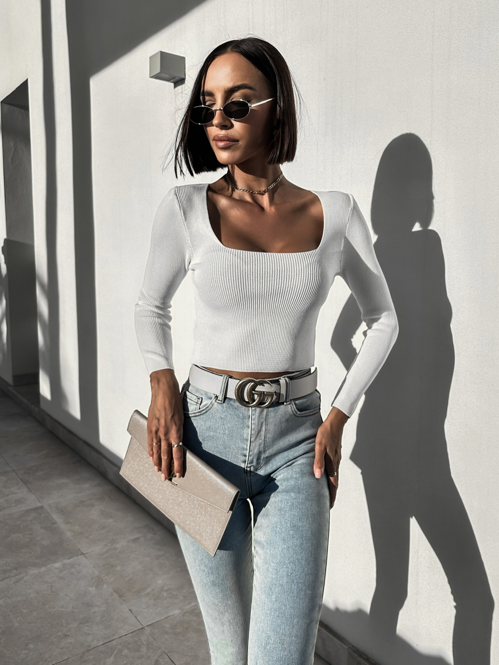 Bílý elegantní top DOMINICE s dlouhým rukávem
