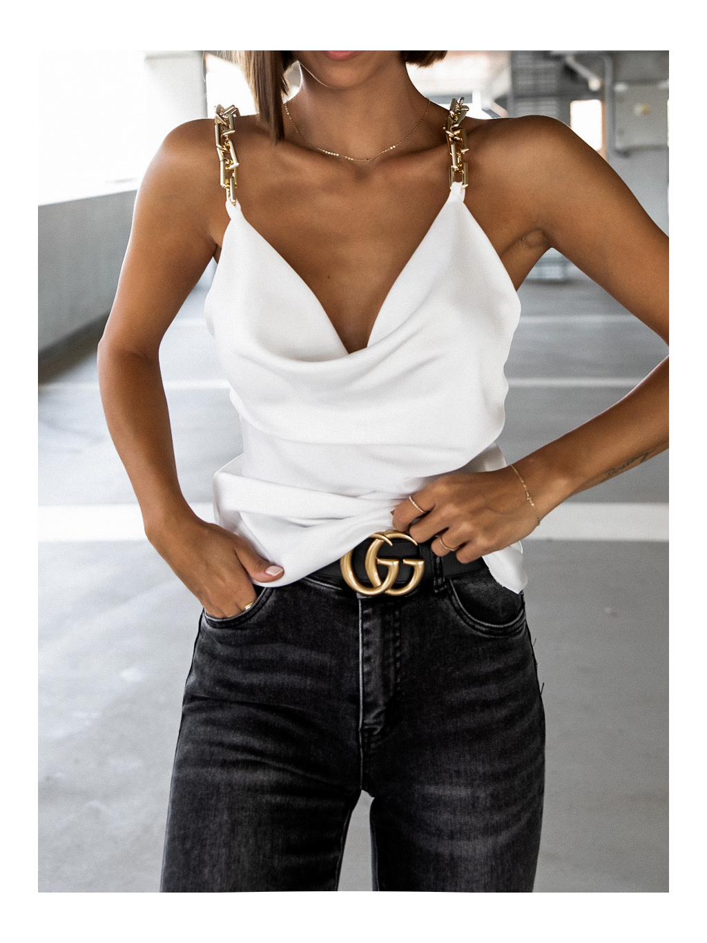 Bílý elegantní top GENEVIA se zlatými ramínky