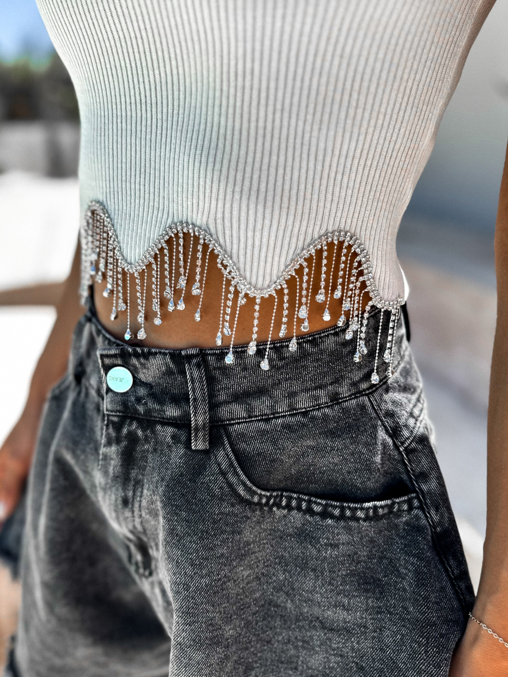 Bílý elegantní top HENDENT se stříbrnými detaily