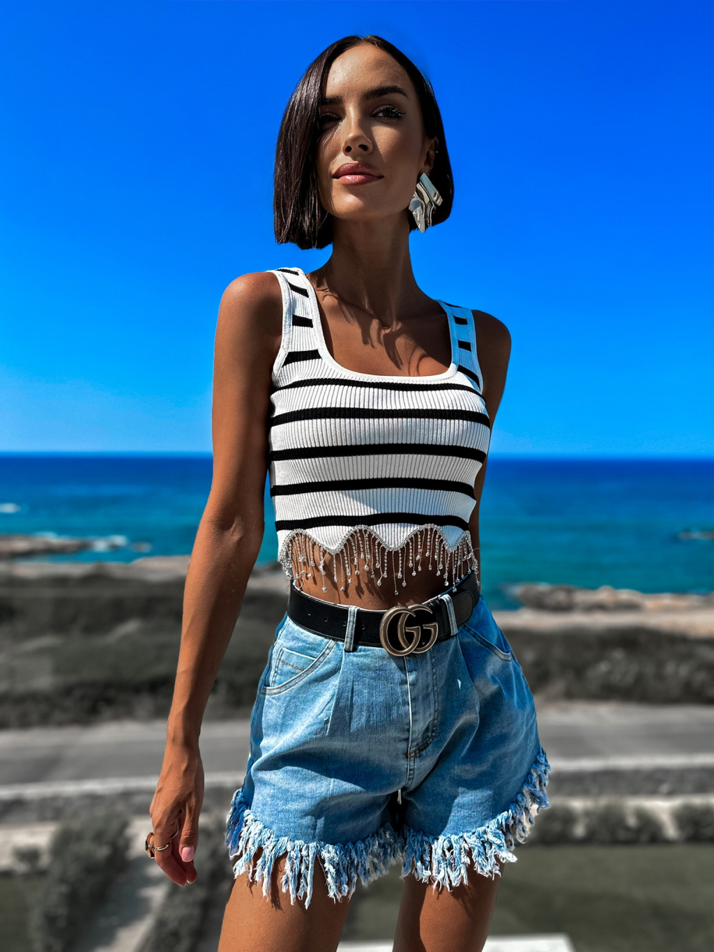 Bílý pruhovaný top VISSERA