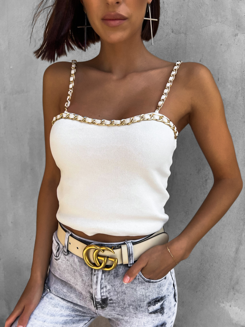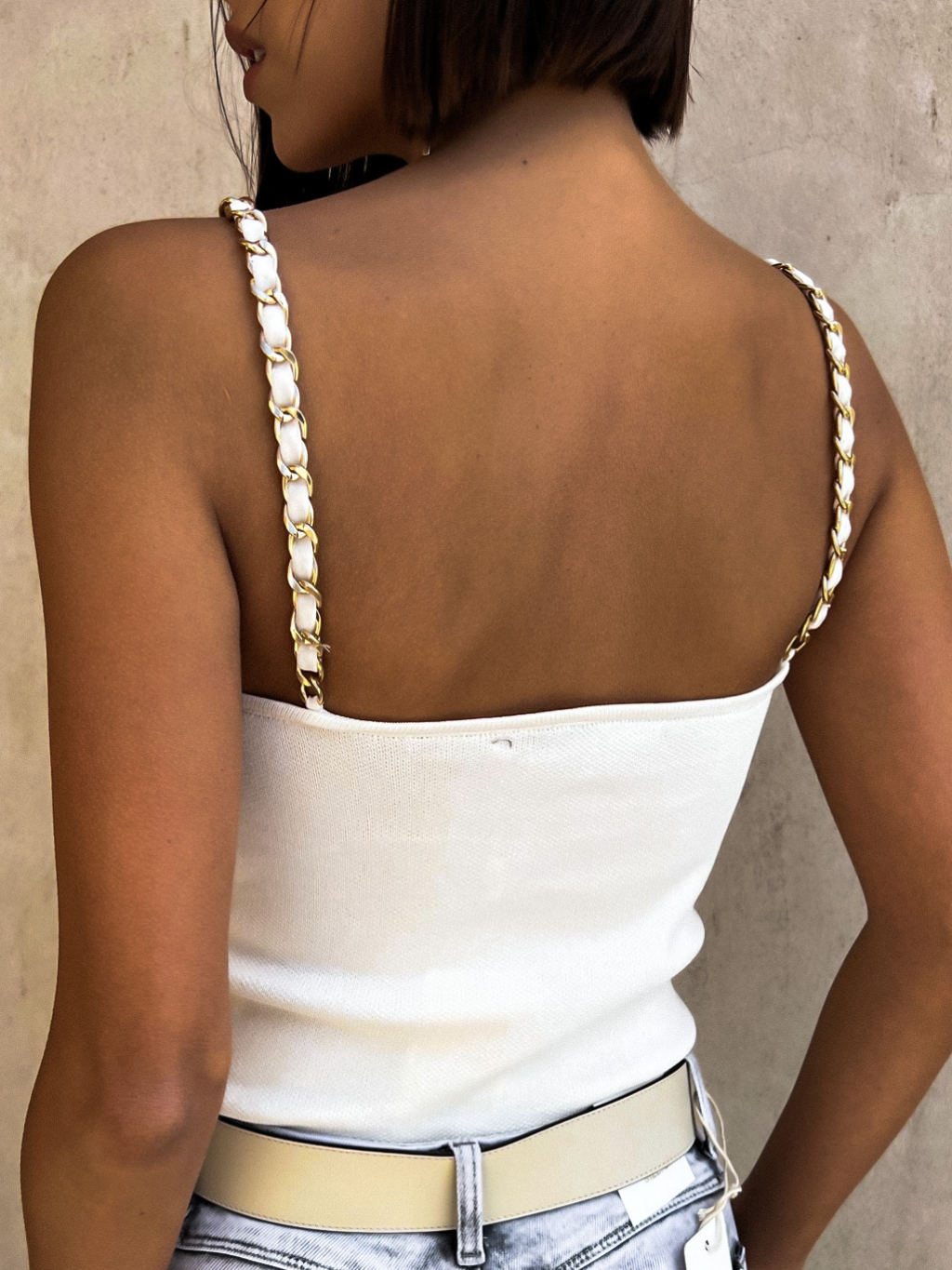 Bílý top CATILO se zlatým řetízkem