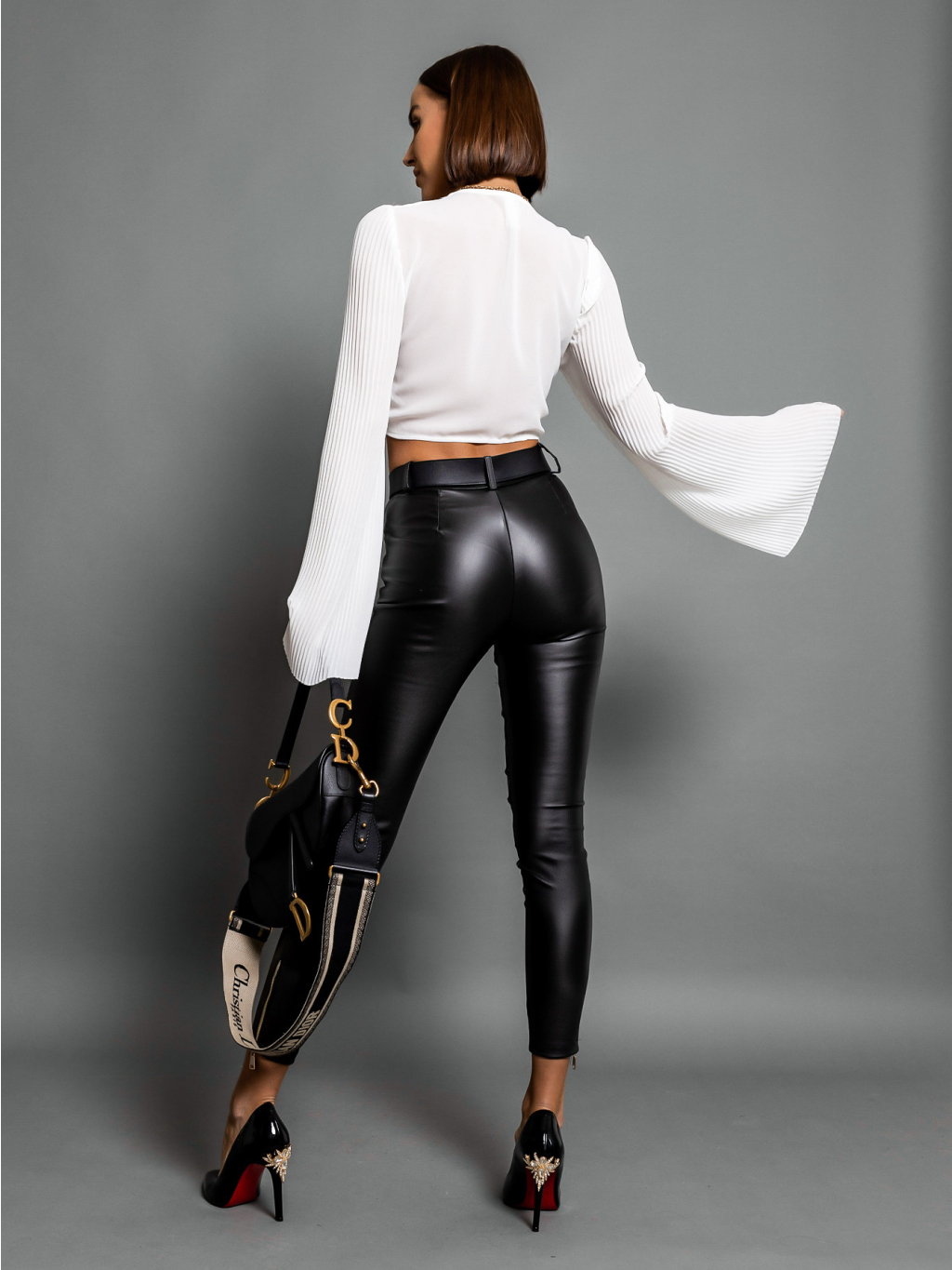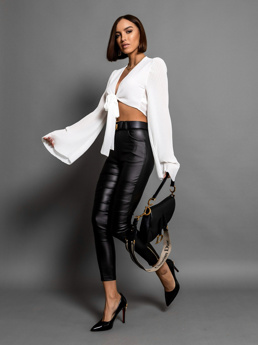 Bílý zavinovací top PETALS s rozšířenými rukávy