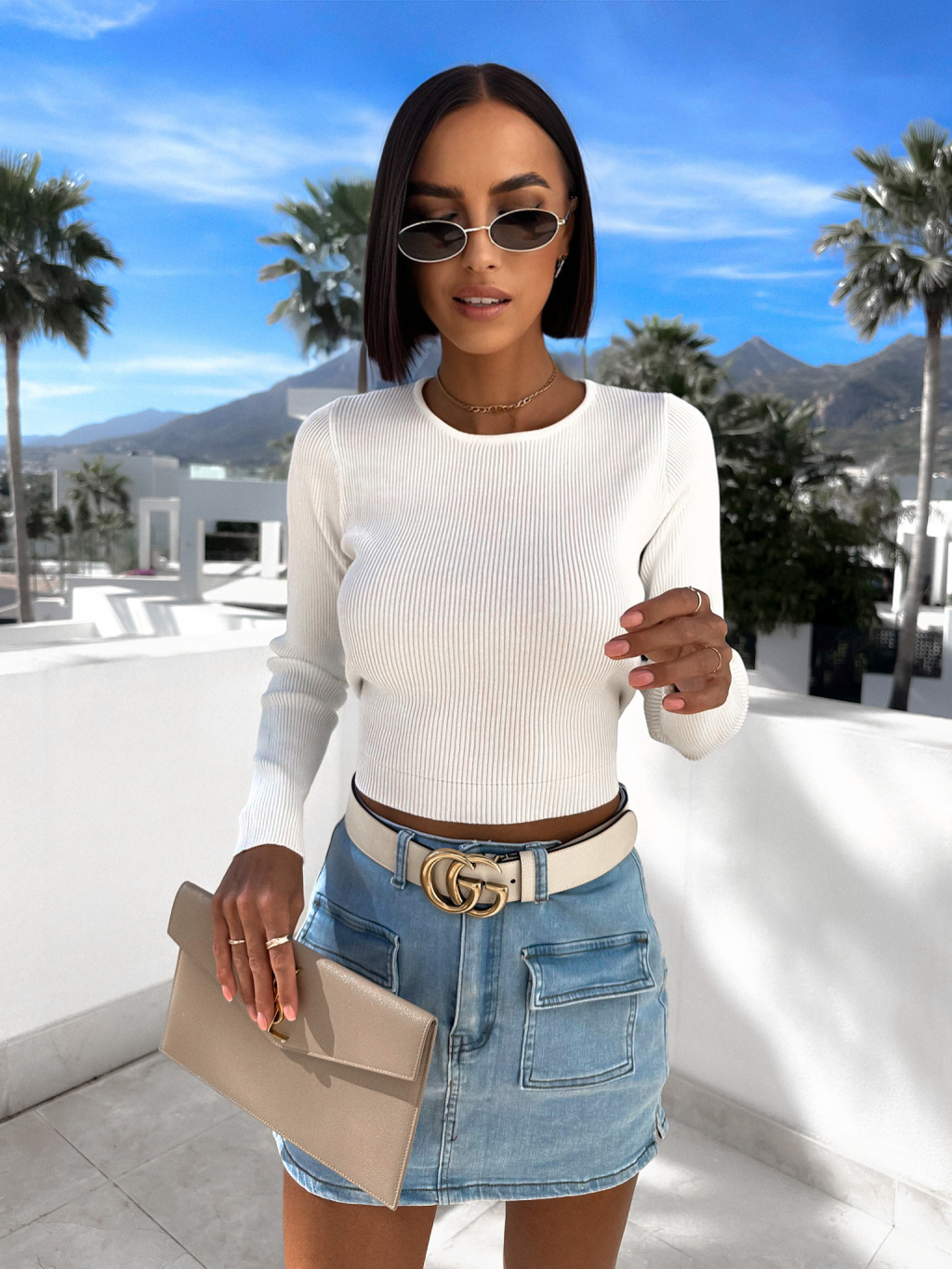 Bílý žebrovaný top VINCEN s dlouhým rukávem