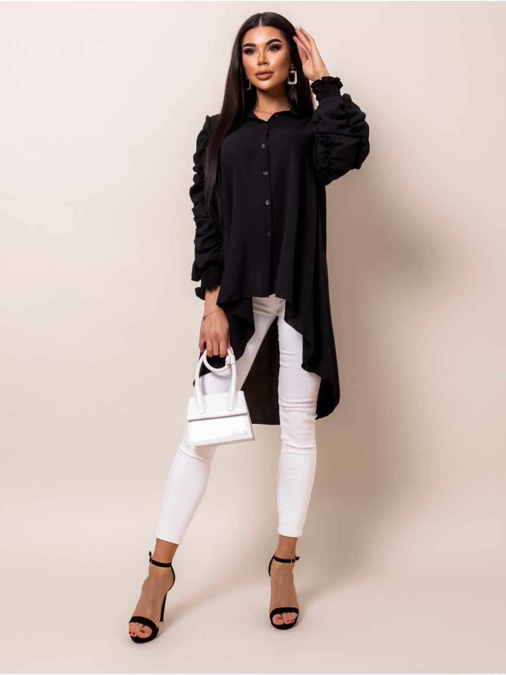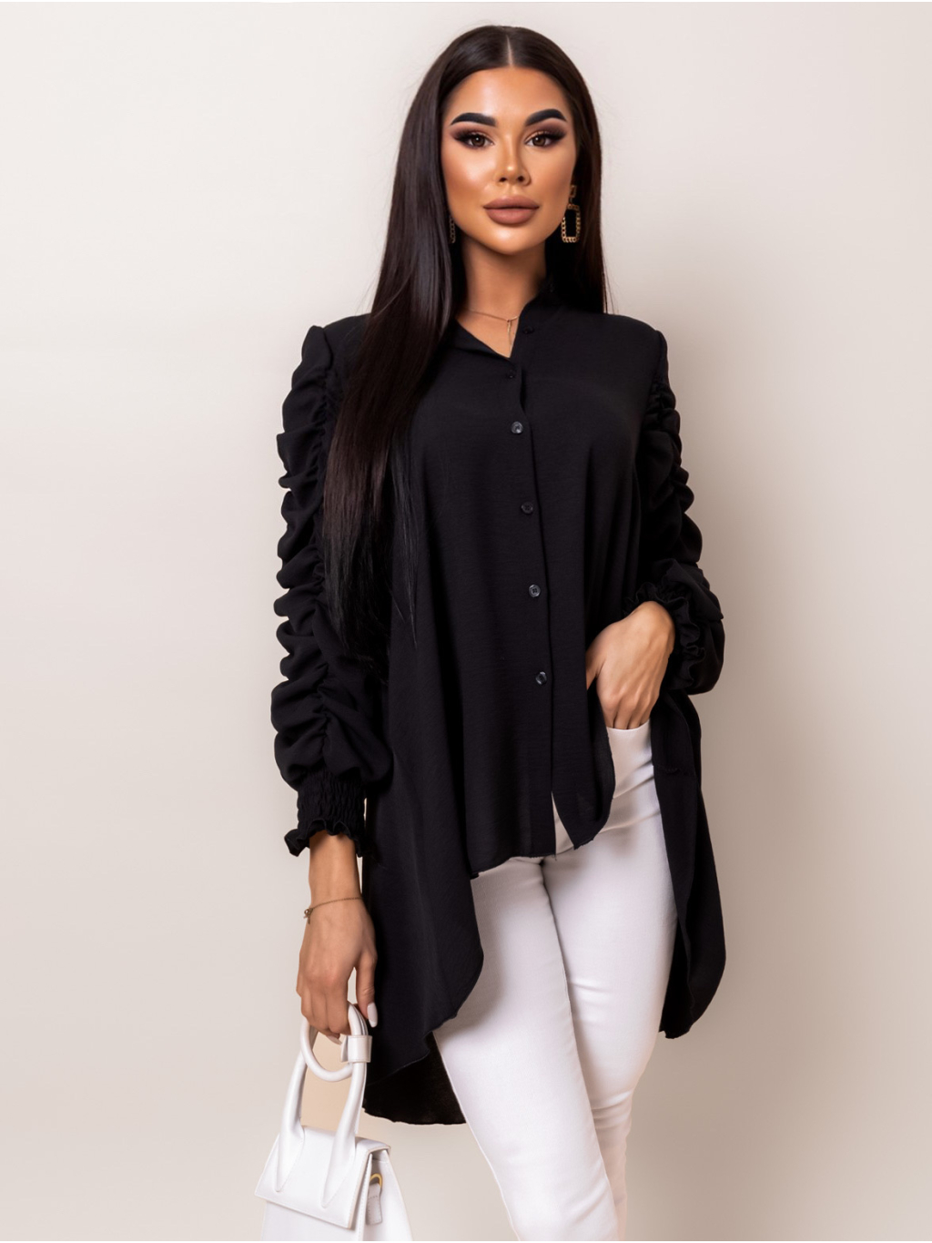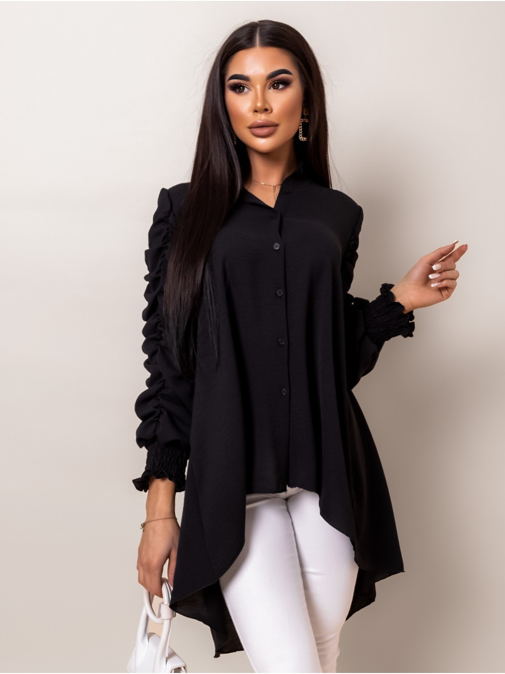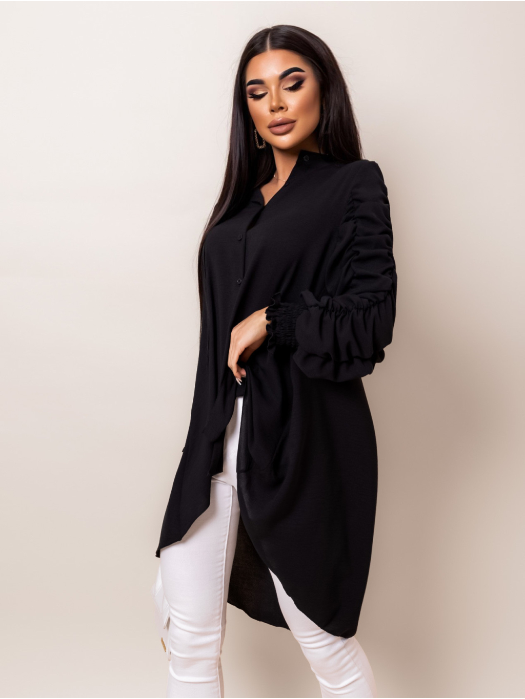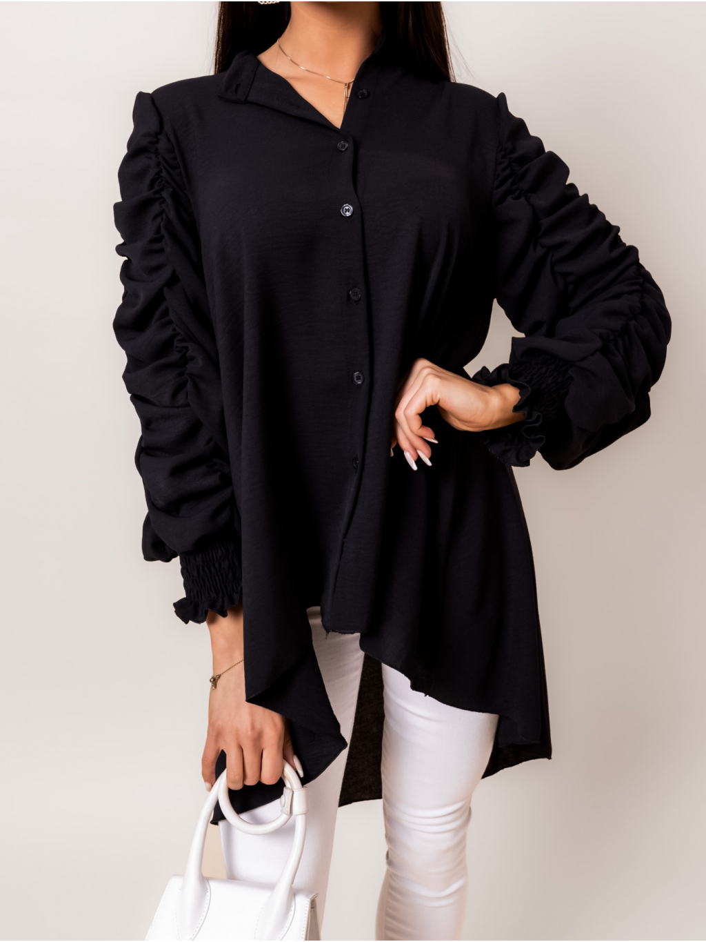 Černá delší košile COILED s dlouhým rukávem