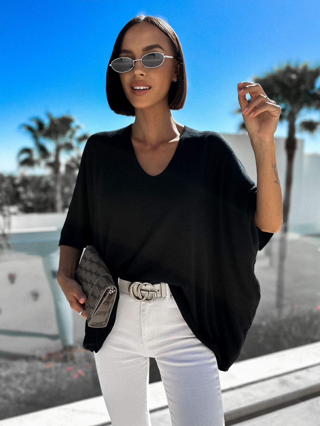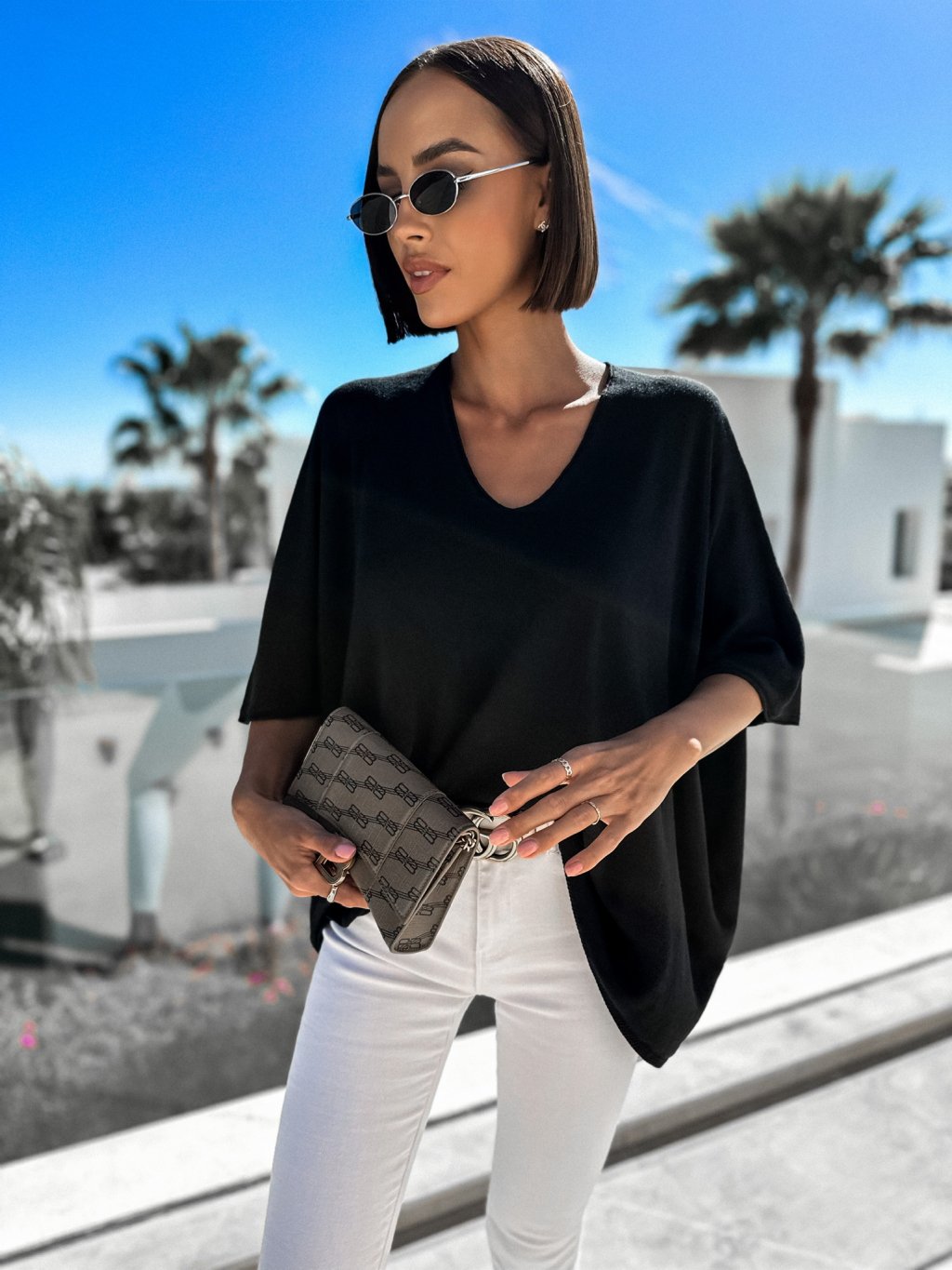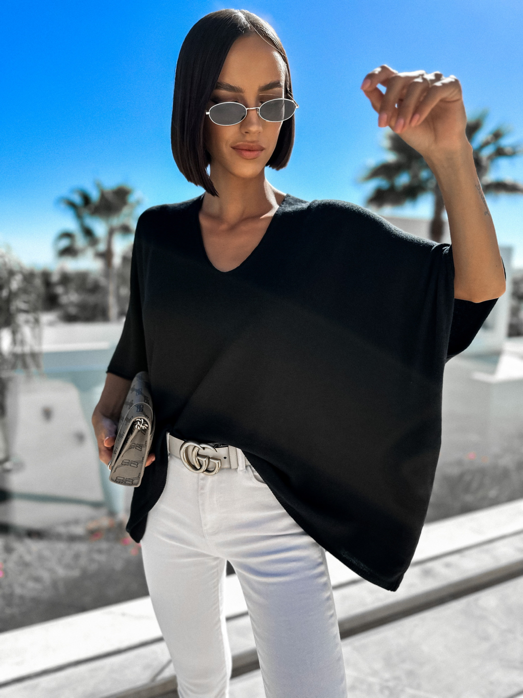 Černá elegantní halenka ERINNIE s výstřihem do V