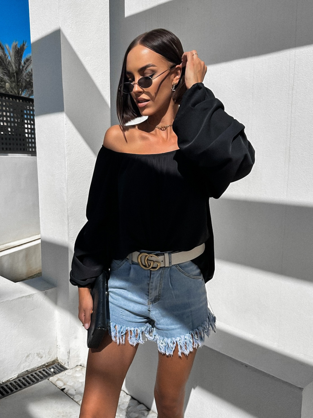Černá elegantní halenka SALMIE s vrásněním