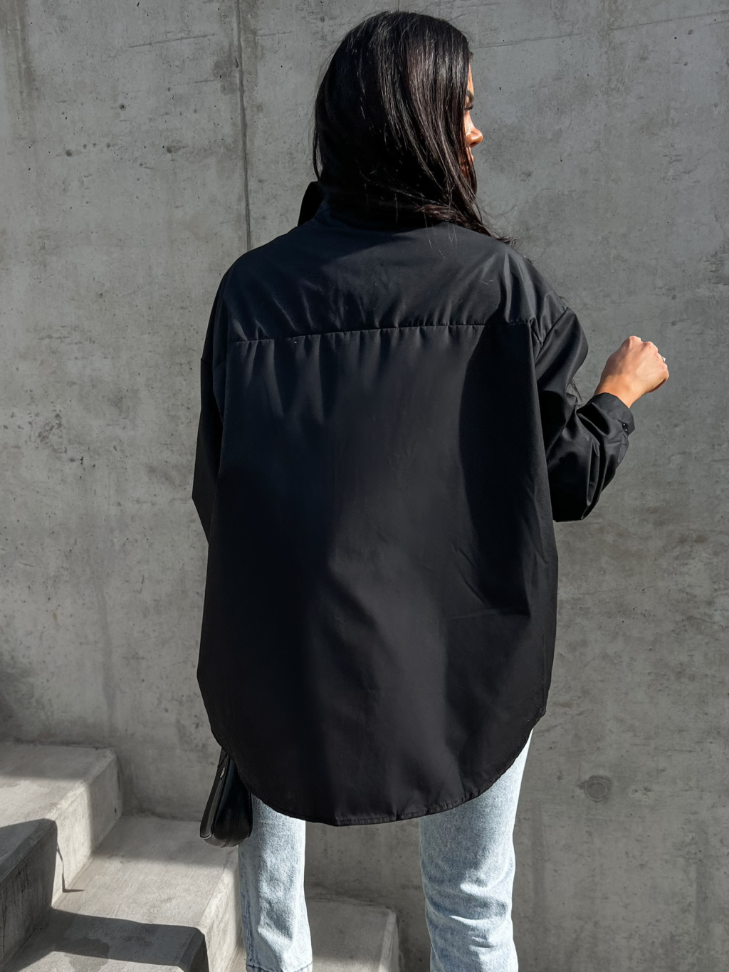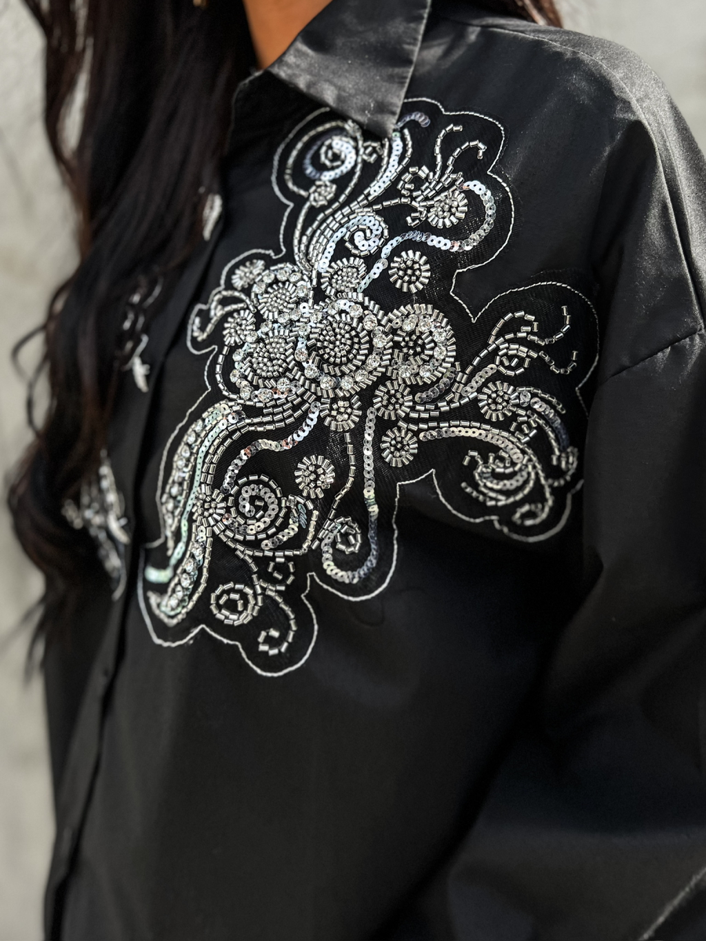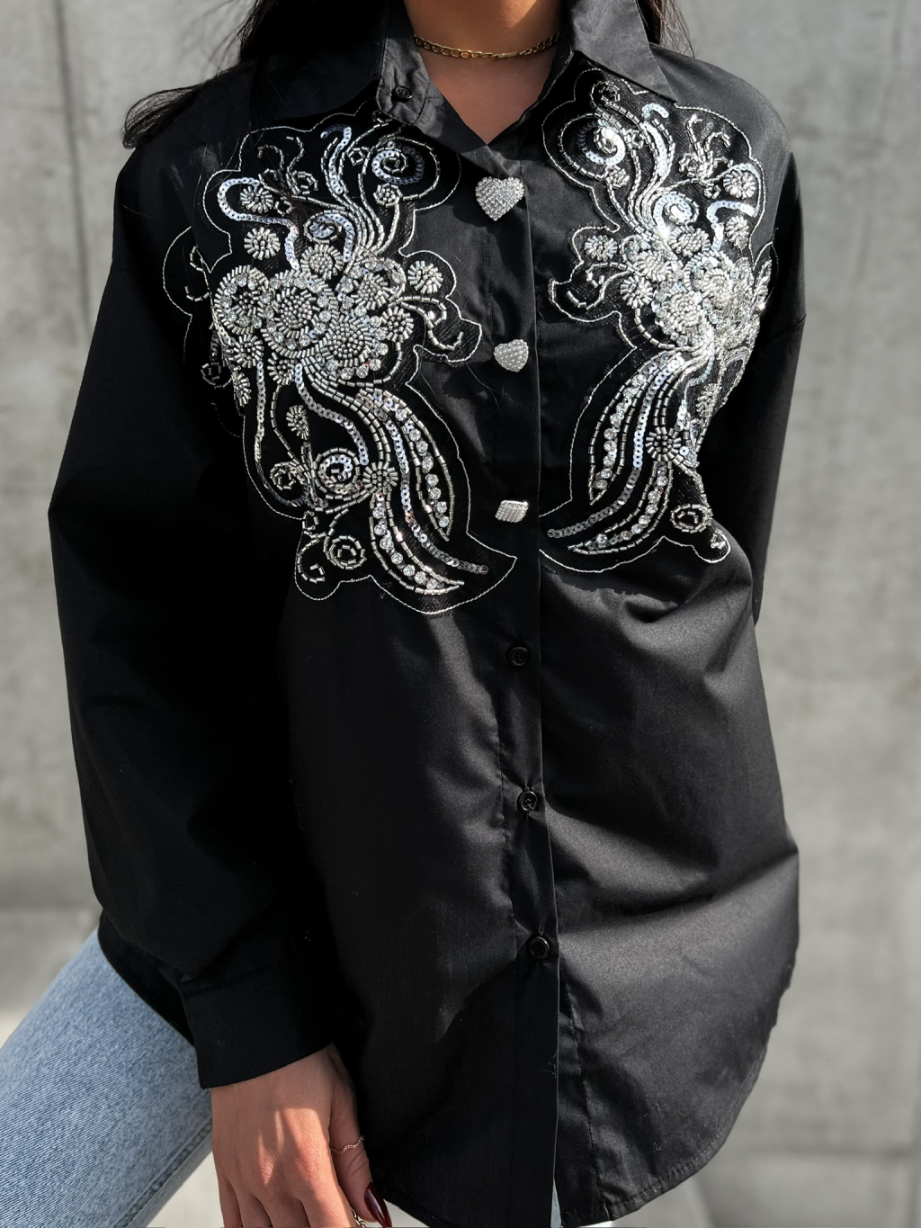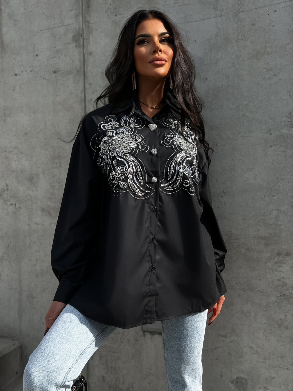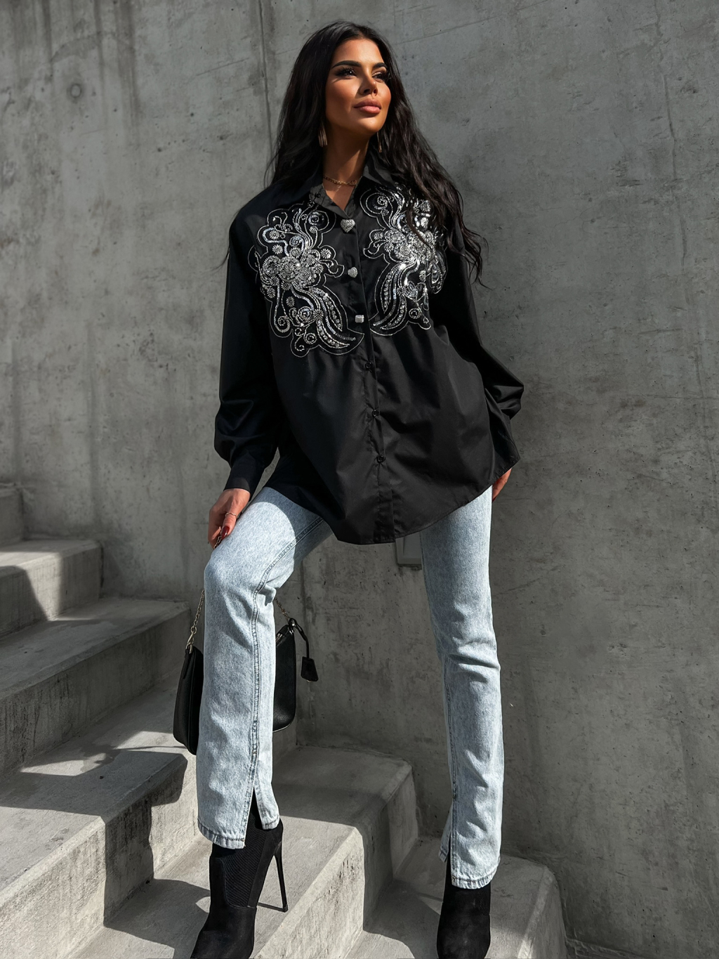 Černá elegantní košile KLAMACE se stříbrnými detaily