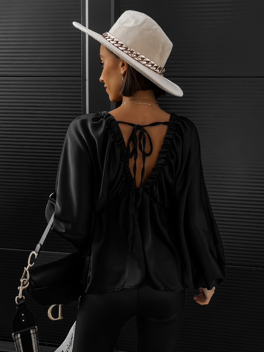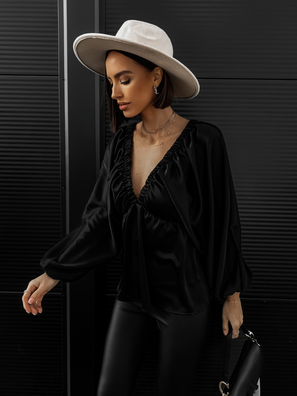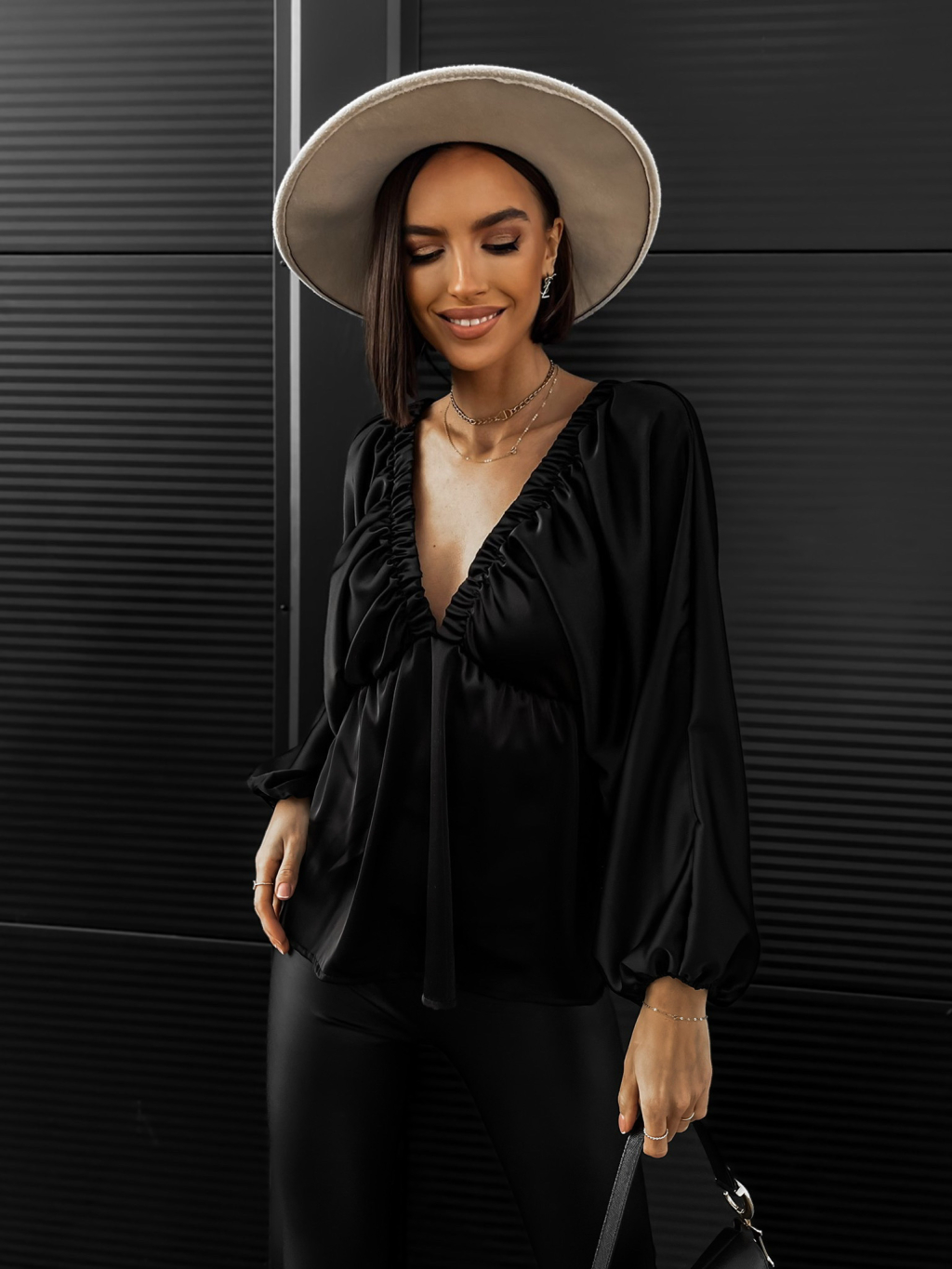 Černá lesklá elegantní halenka GARNISA