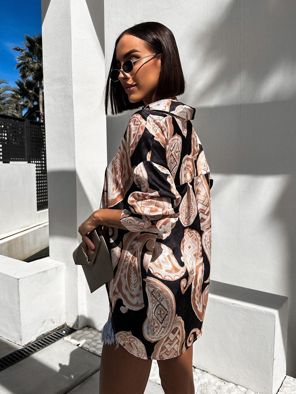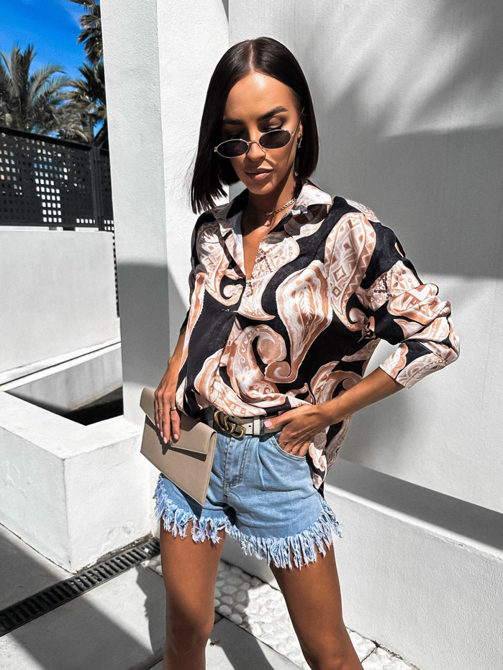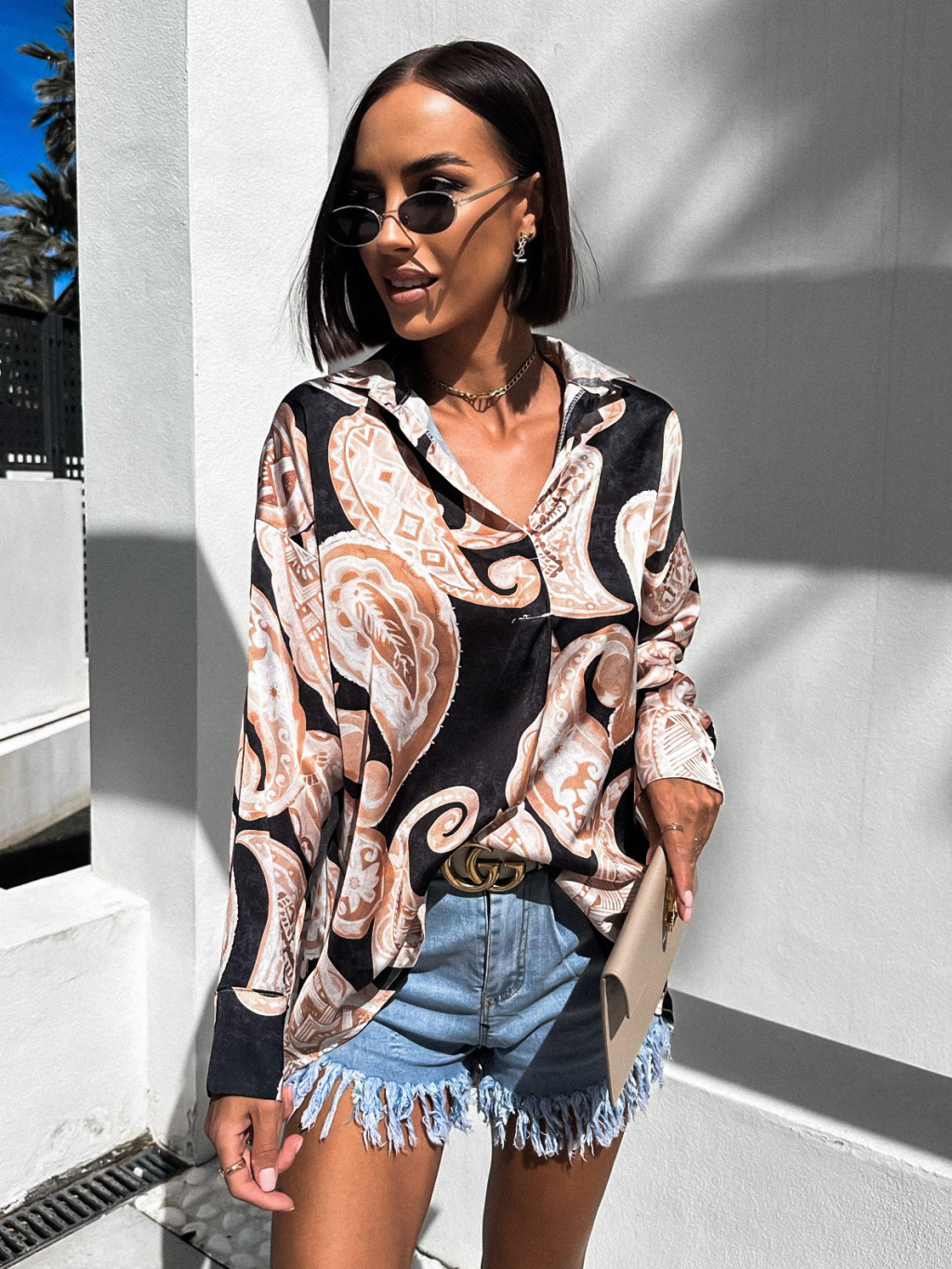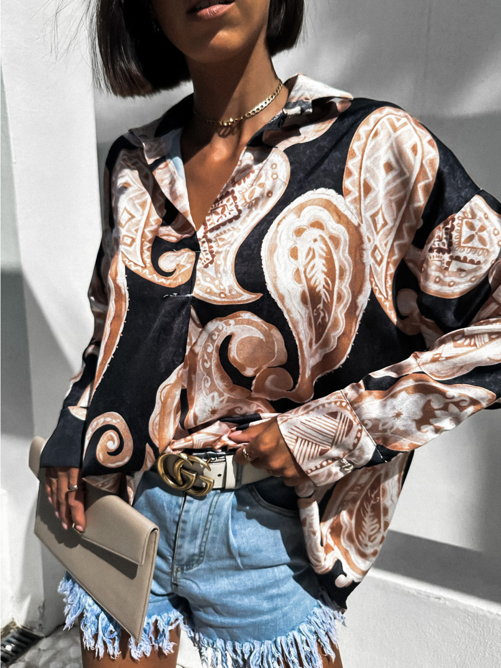 Černá lesklá elegantní košile PEGGIE se vzory