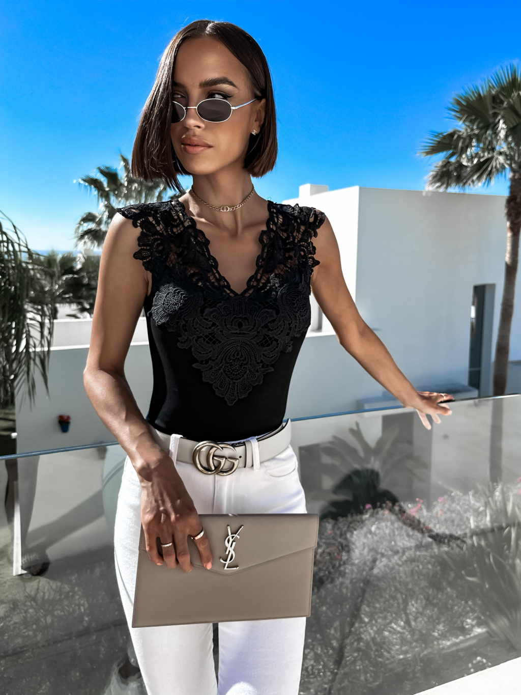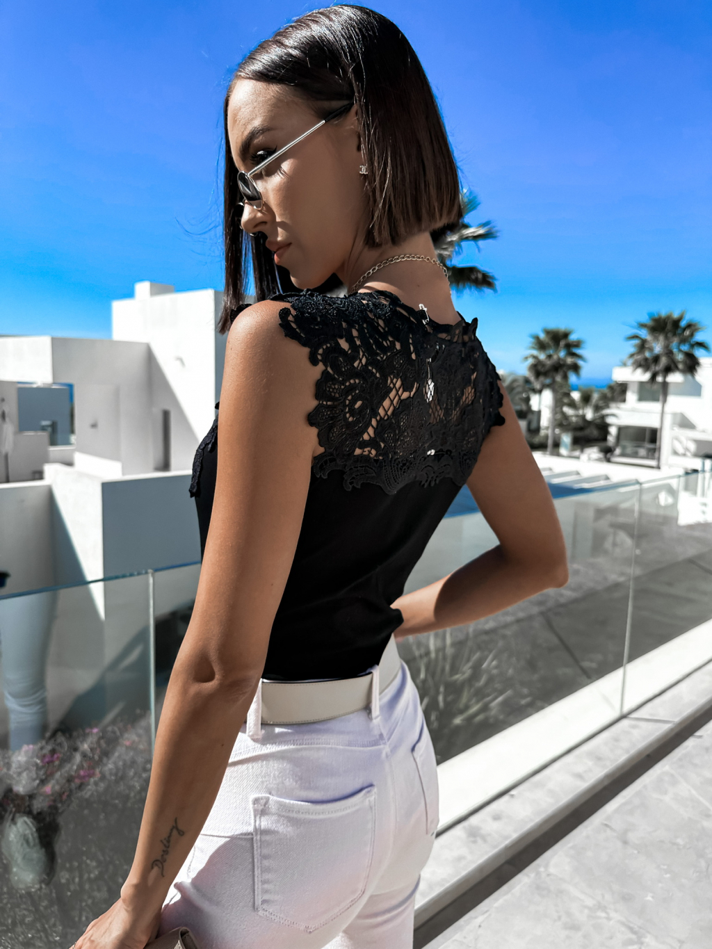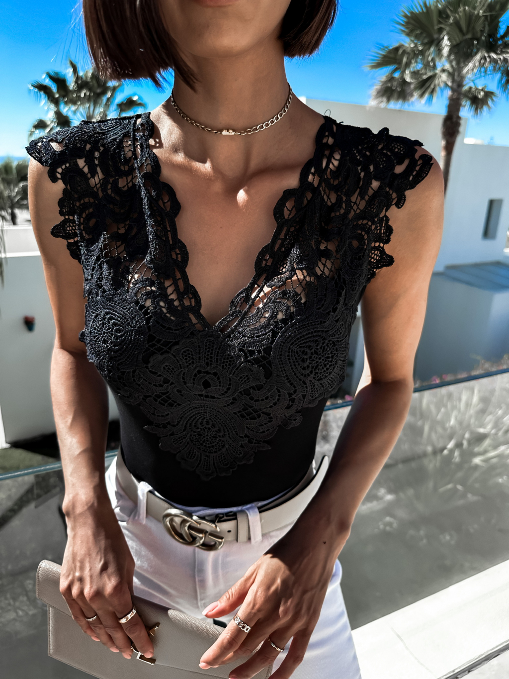 Černé elegantní body CONVERYNE s krajkou