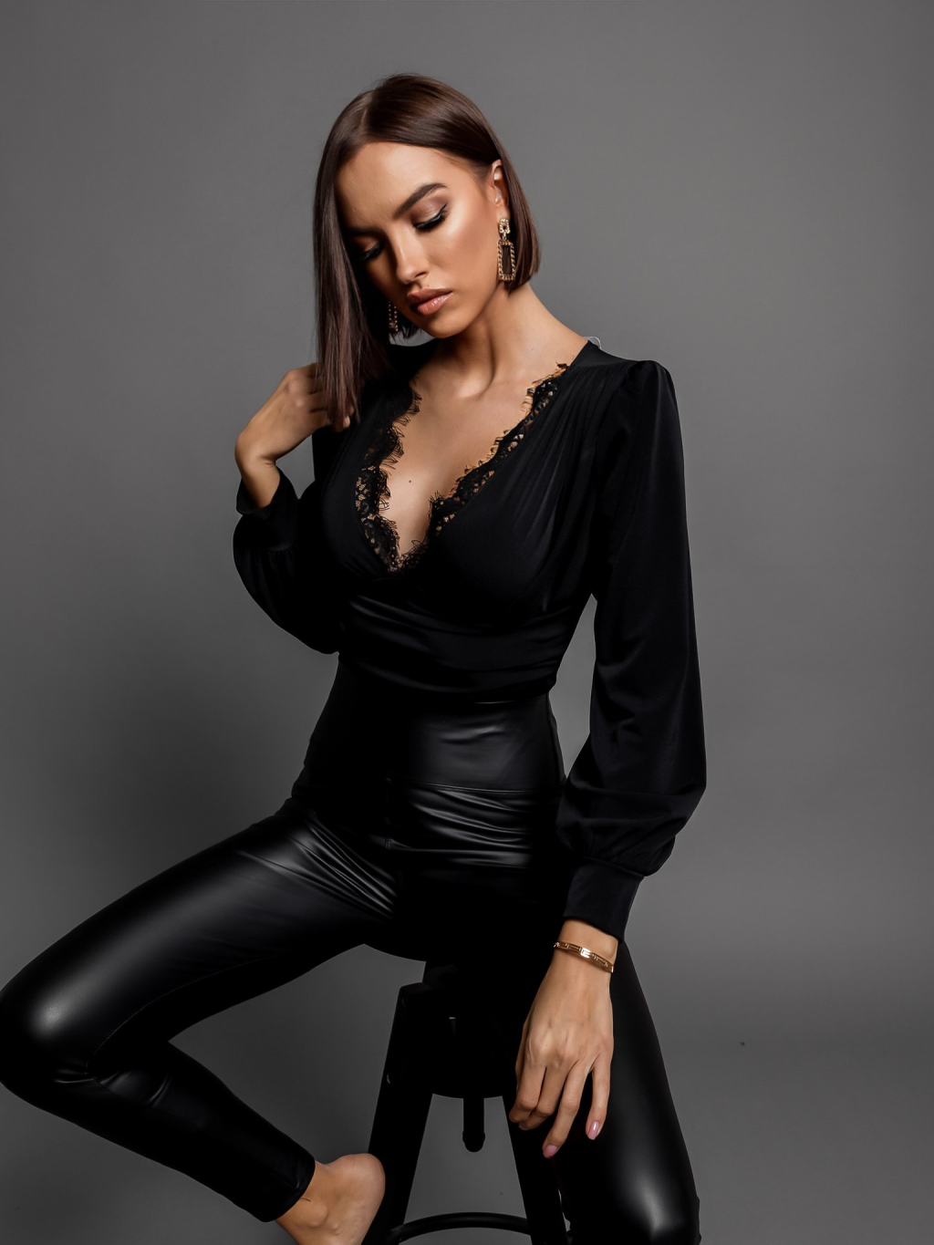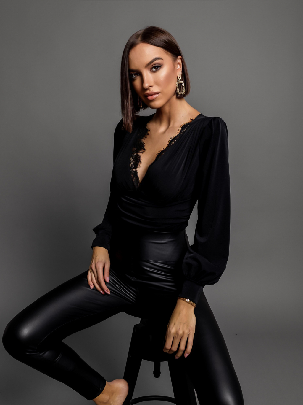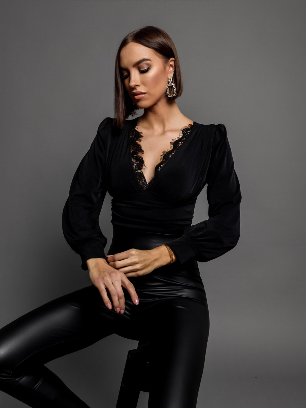 Černé elegantní body ROUGLIE s vycpávkami na ramenou