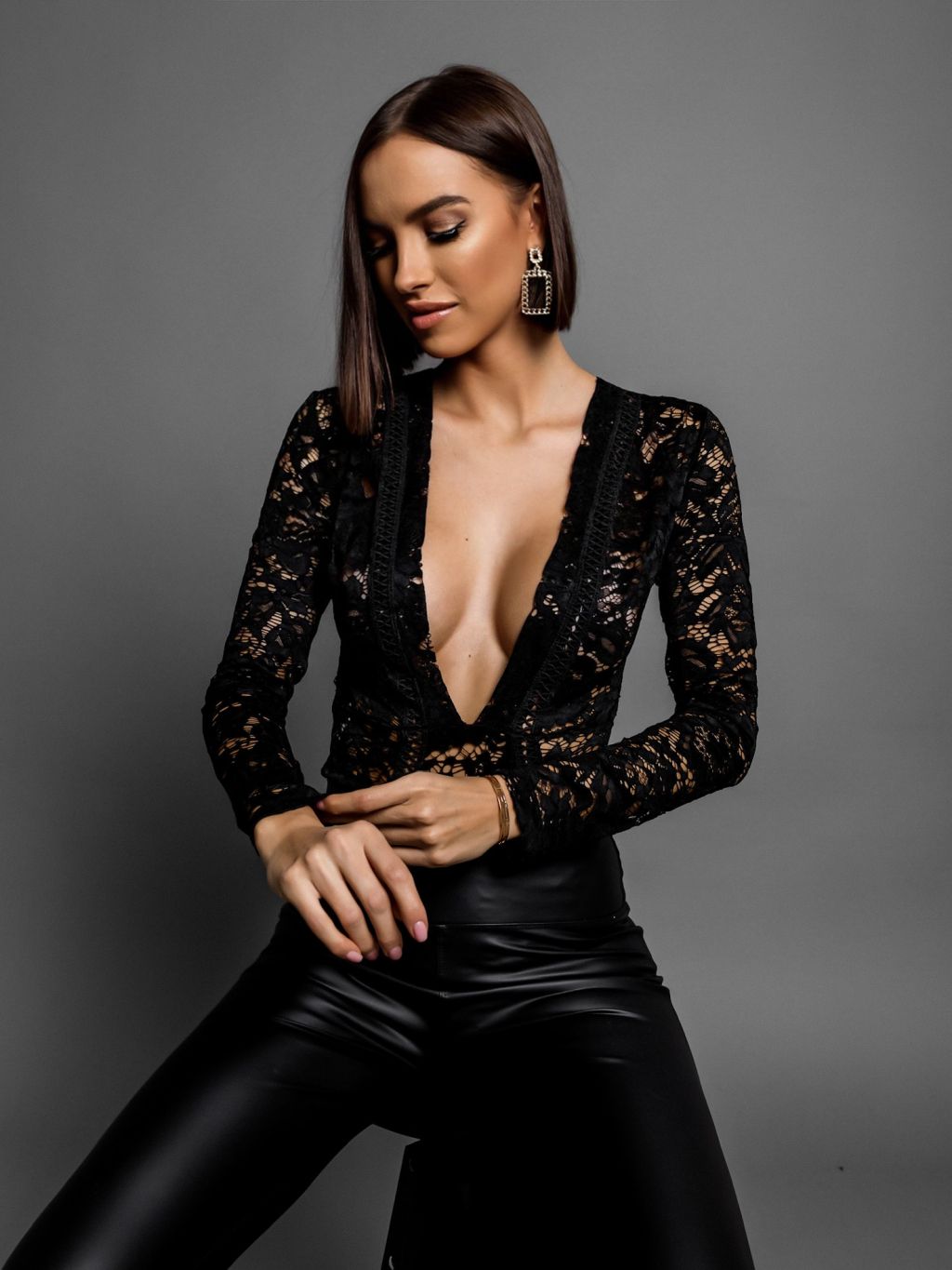 Černé krajkové body JOENY s výstřihem