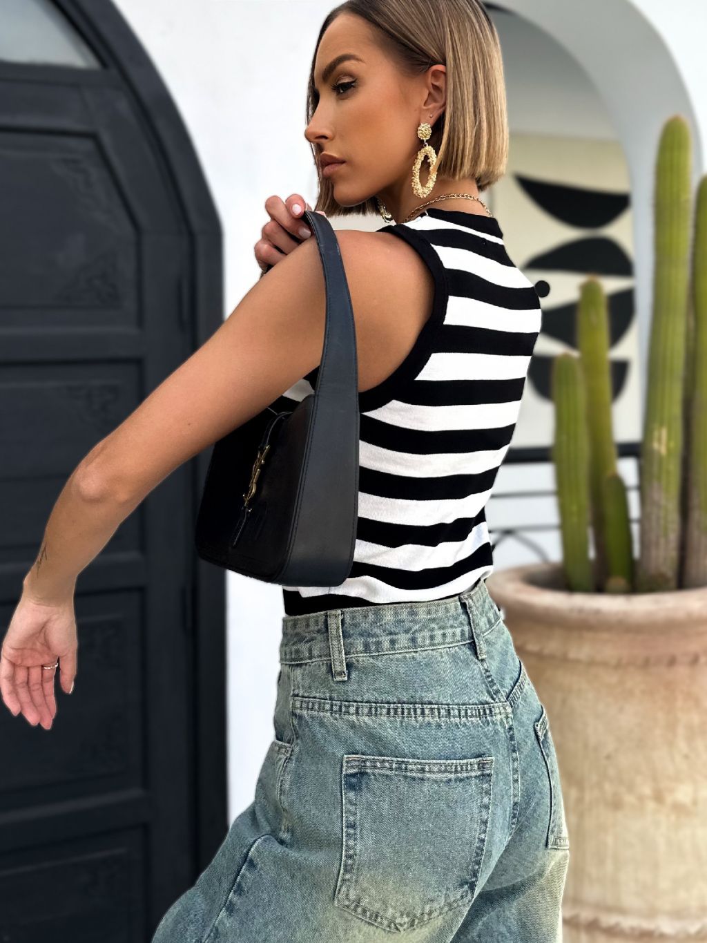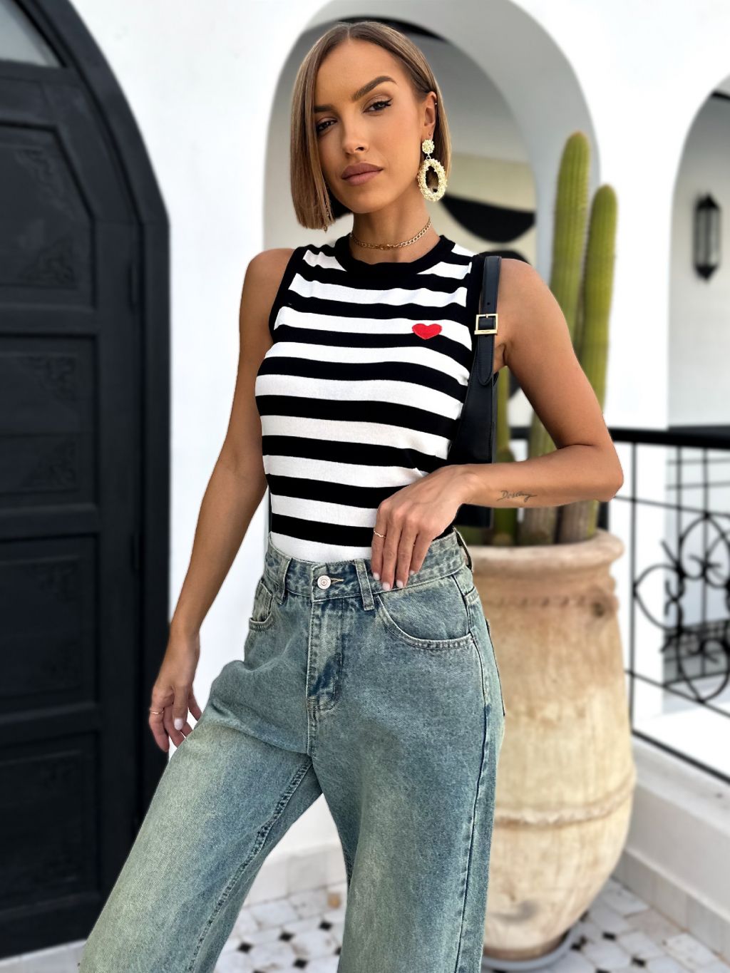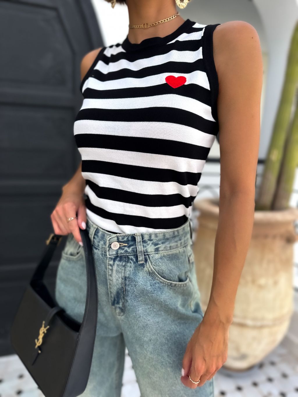 Černé pruhované žebrované tílko OZAN
