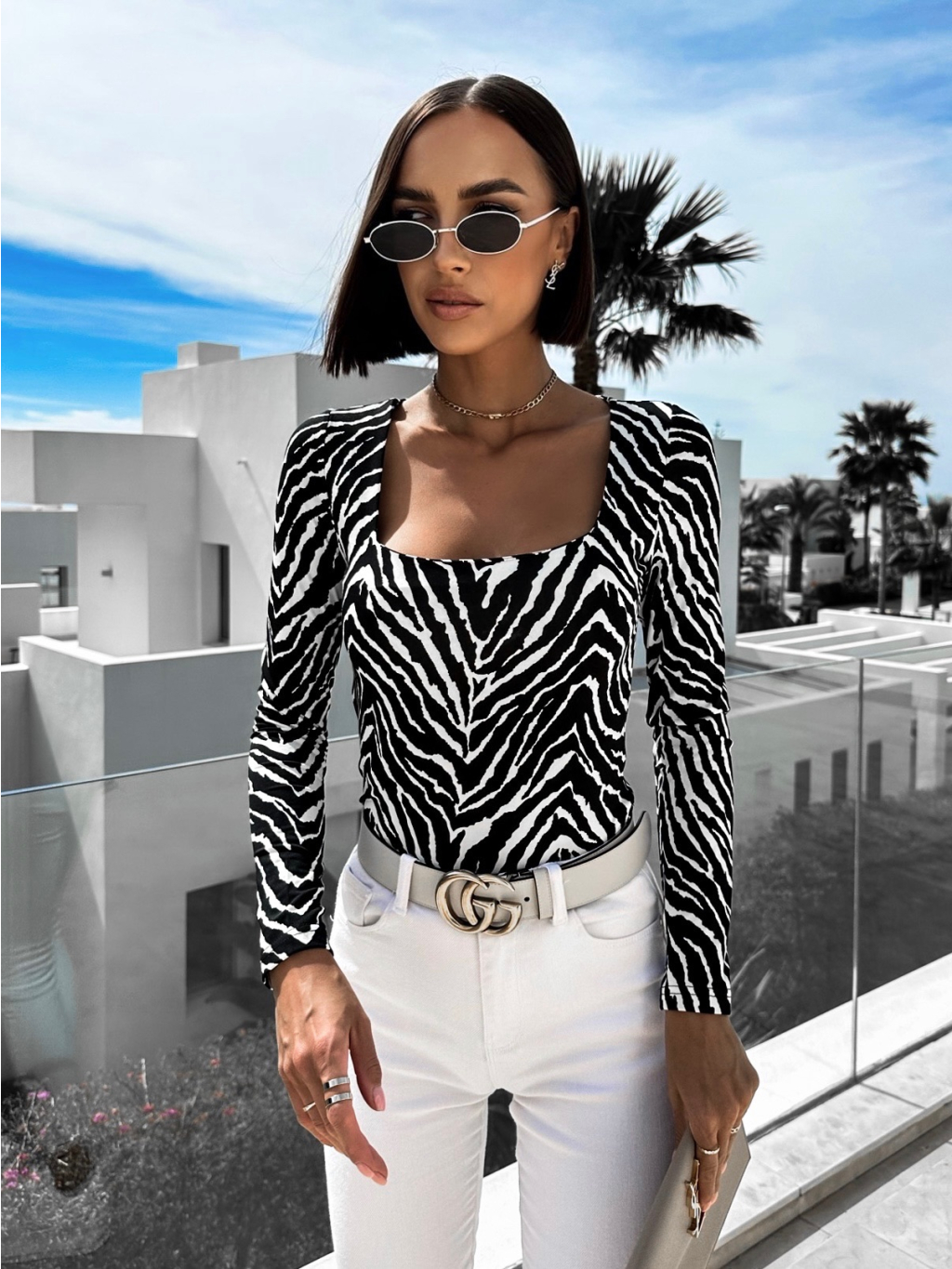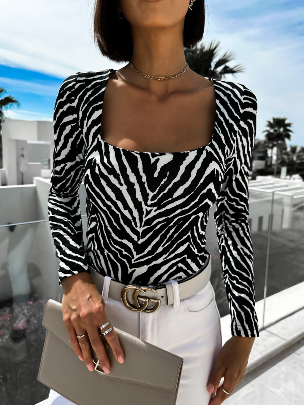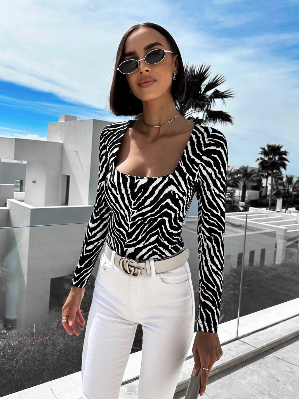 Černobílé elegantní tričko LEUINE s dlouhým rukávem
