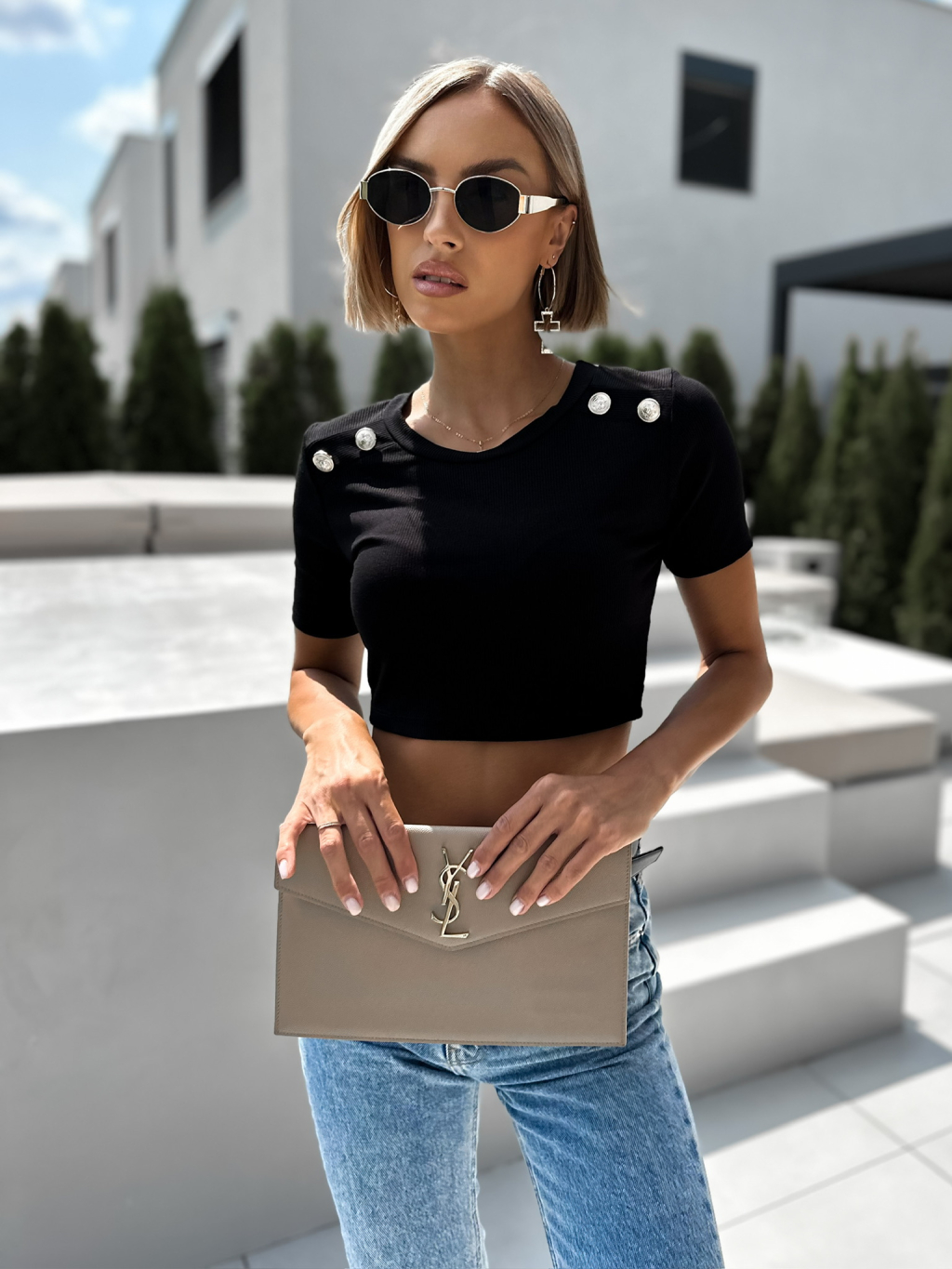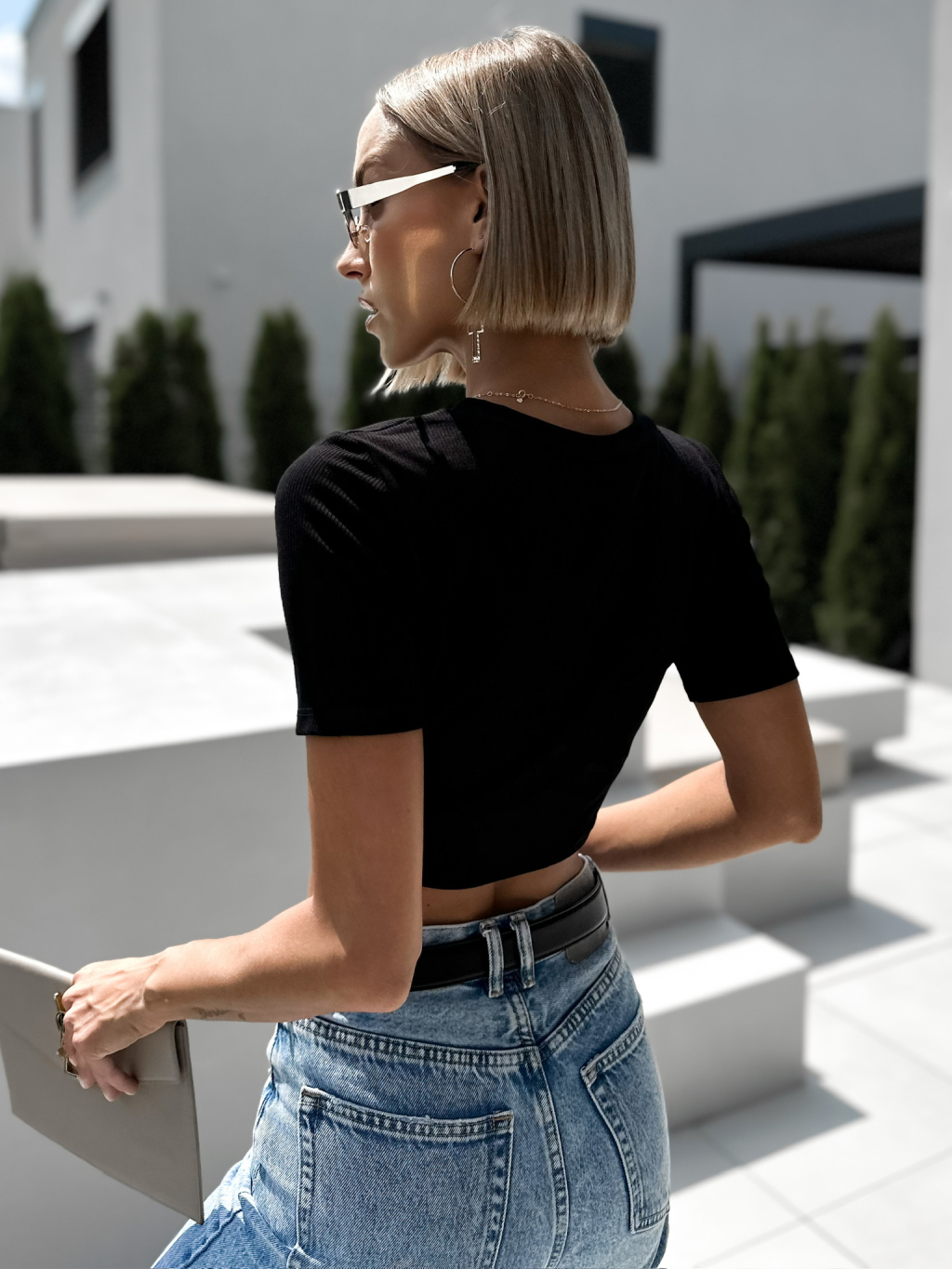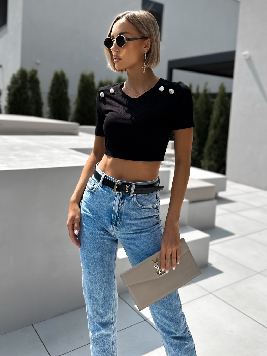Černý crop top LYTA s knoflíky