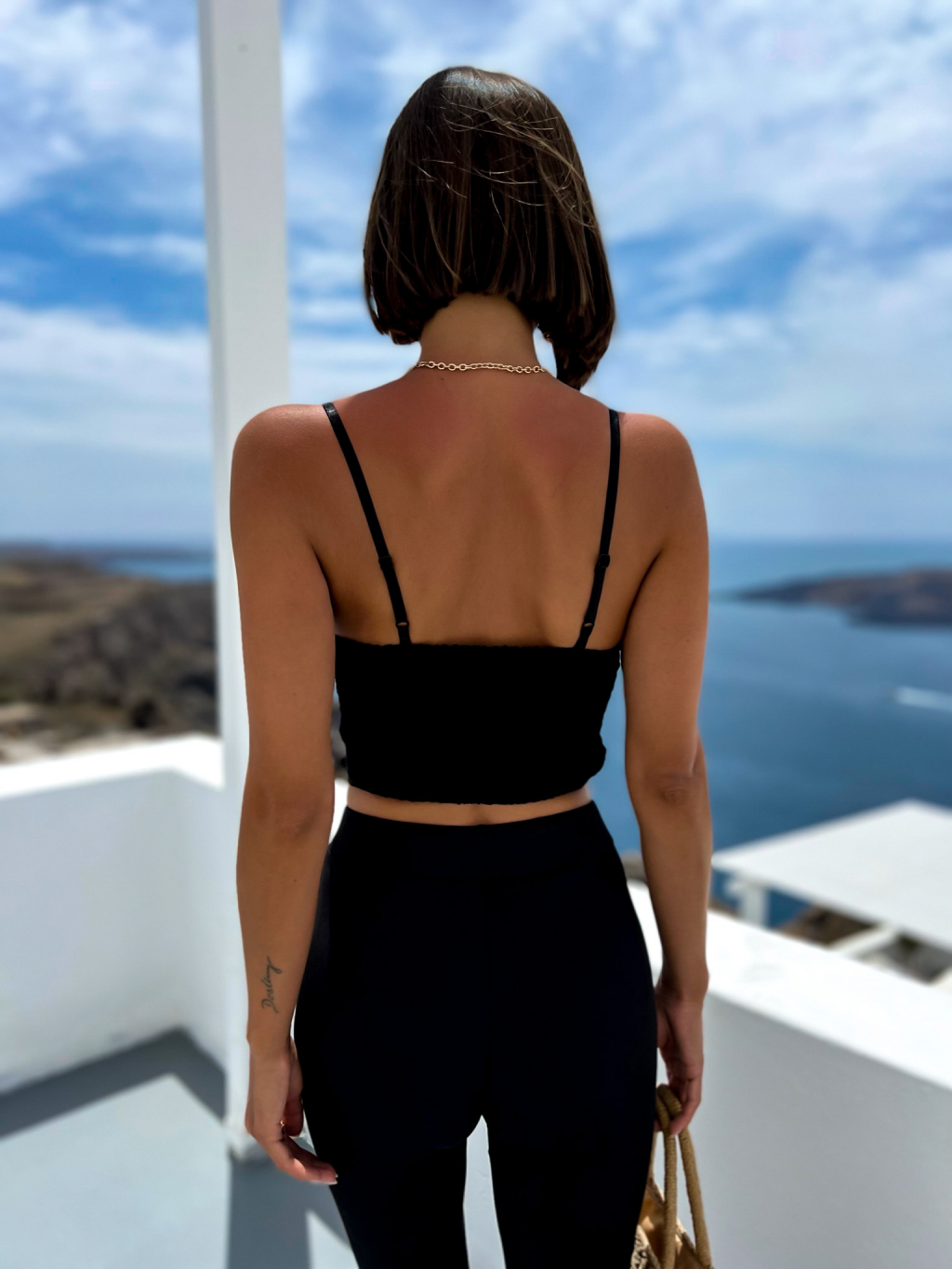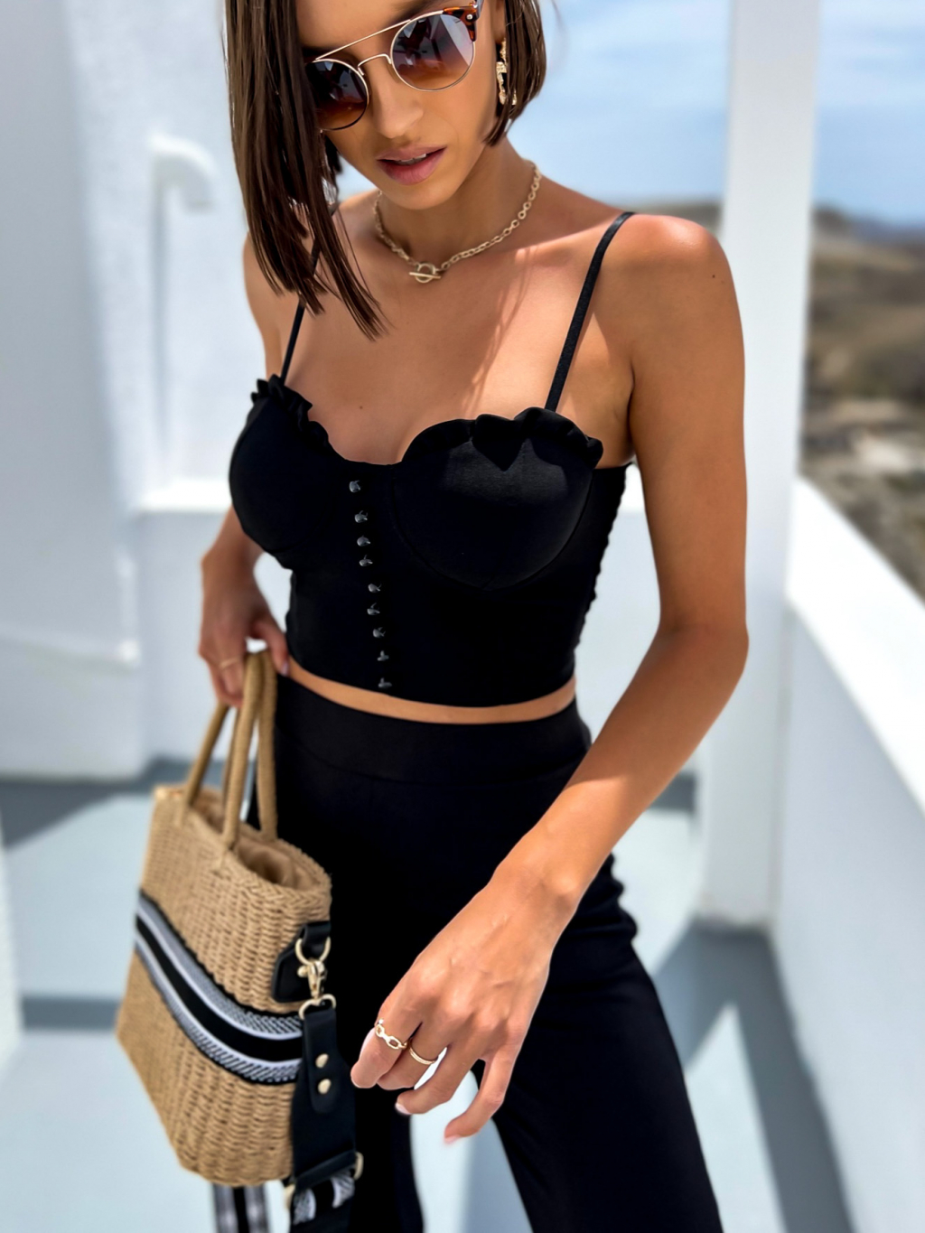 Černý elegantní crop top CIRRUS s knoflíky