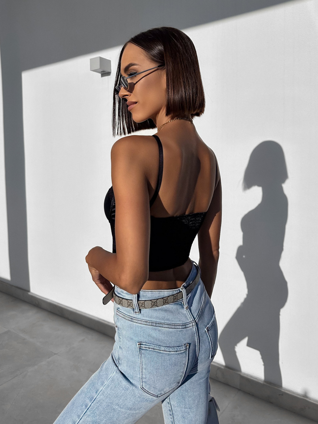 Černý elegantní crop top DASHELL