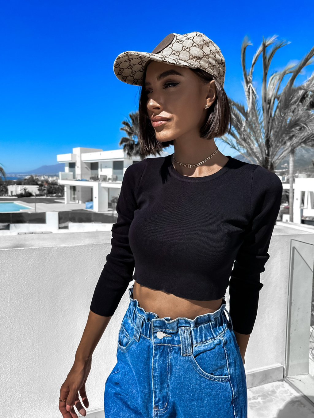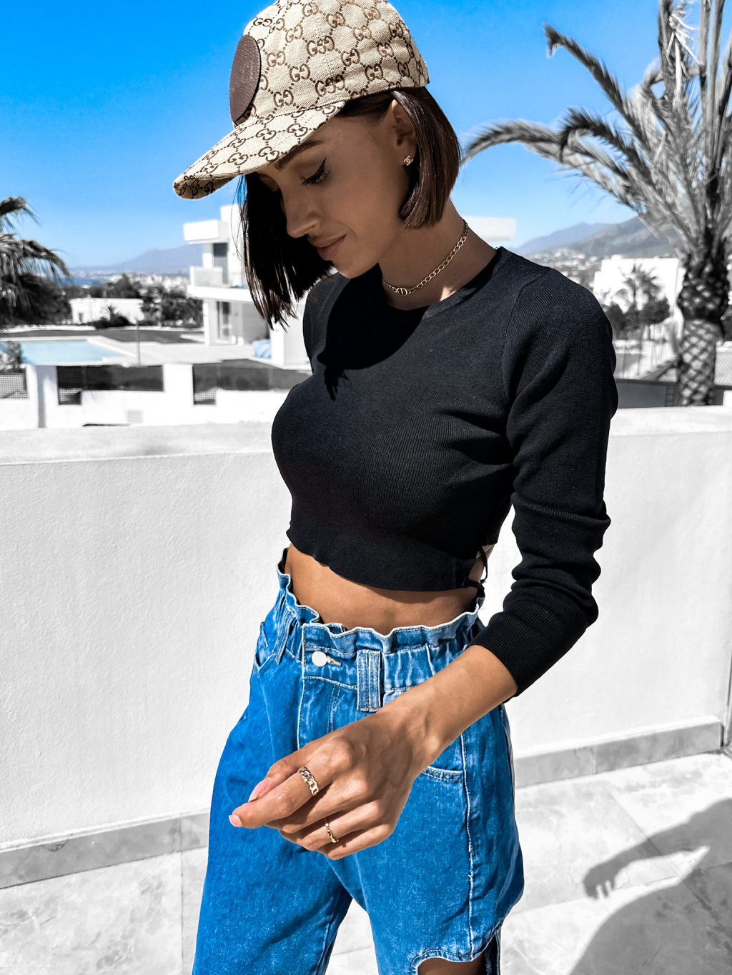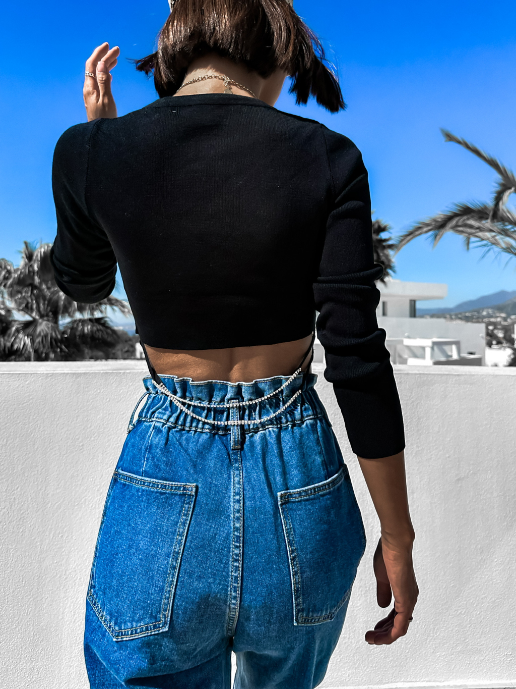 Černý elegantní crop top KLARANE s dlouhým rukávem