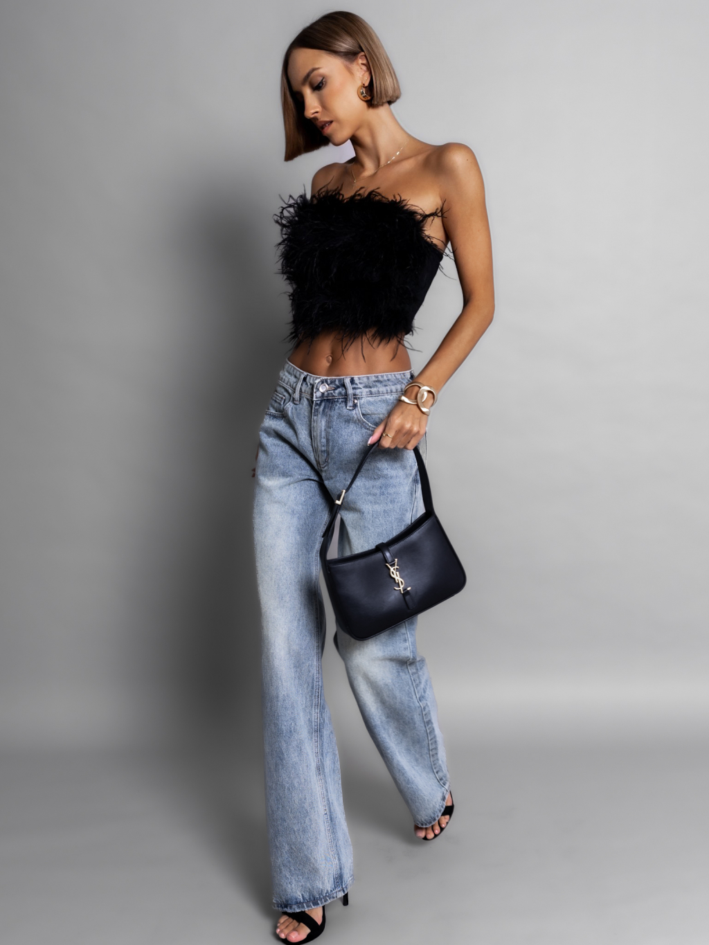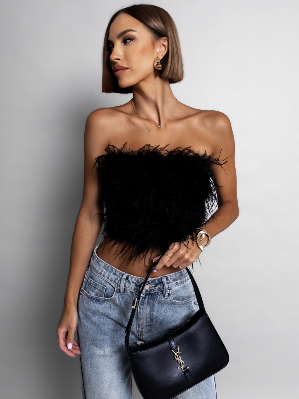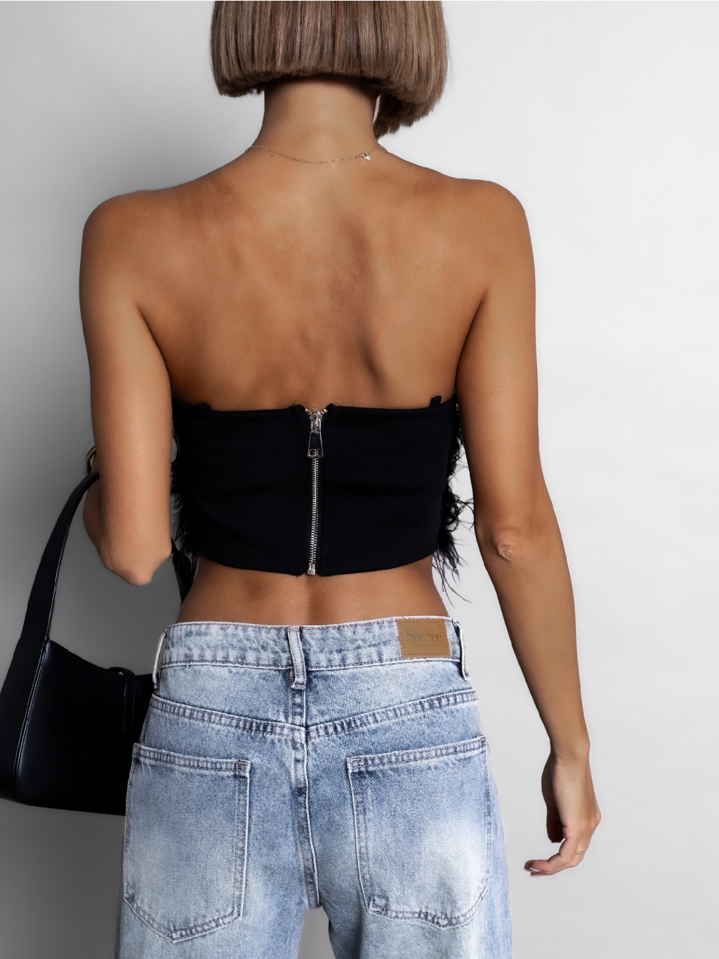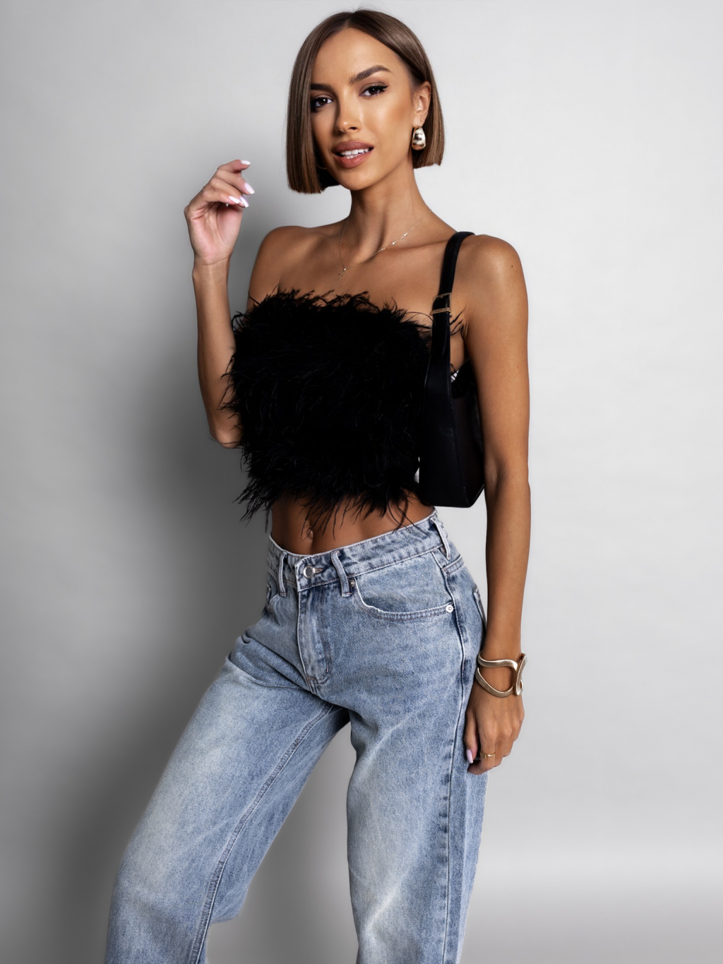 Černý elegantní top DAVID s peříčky
