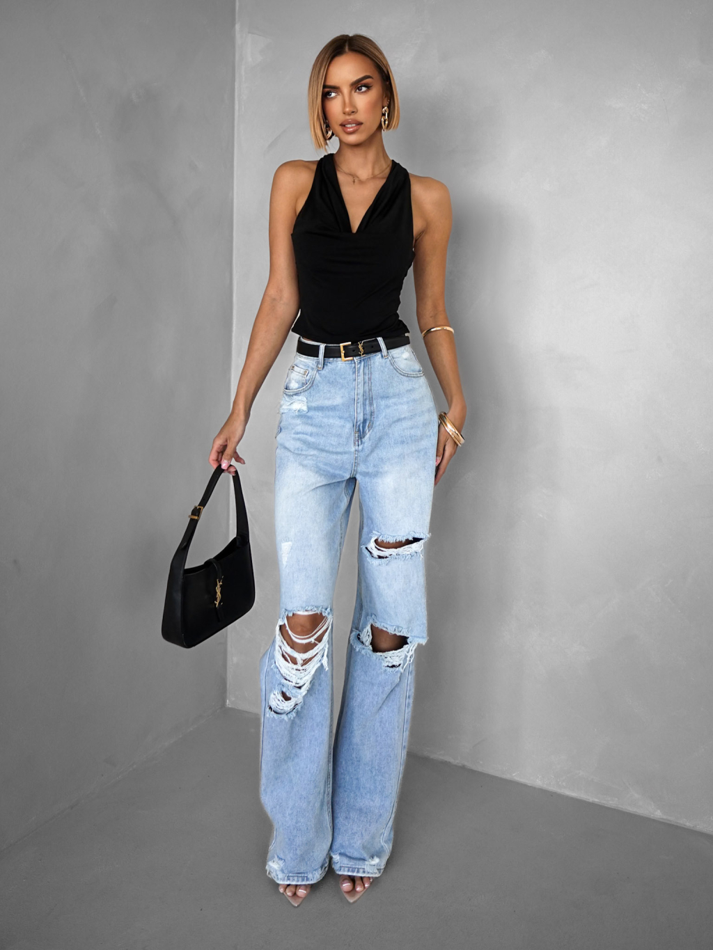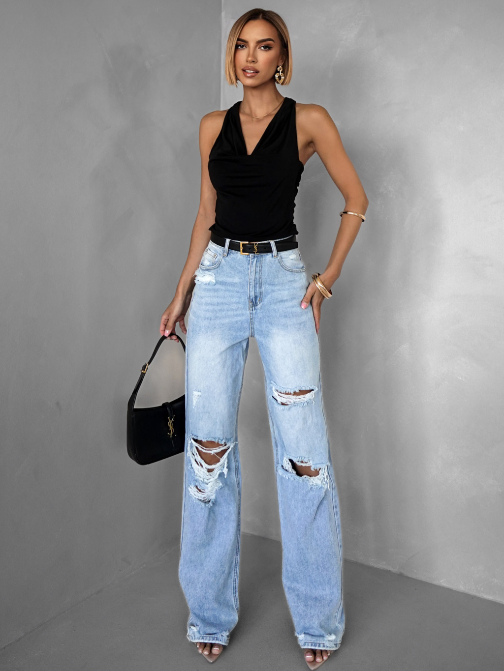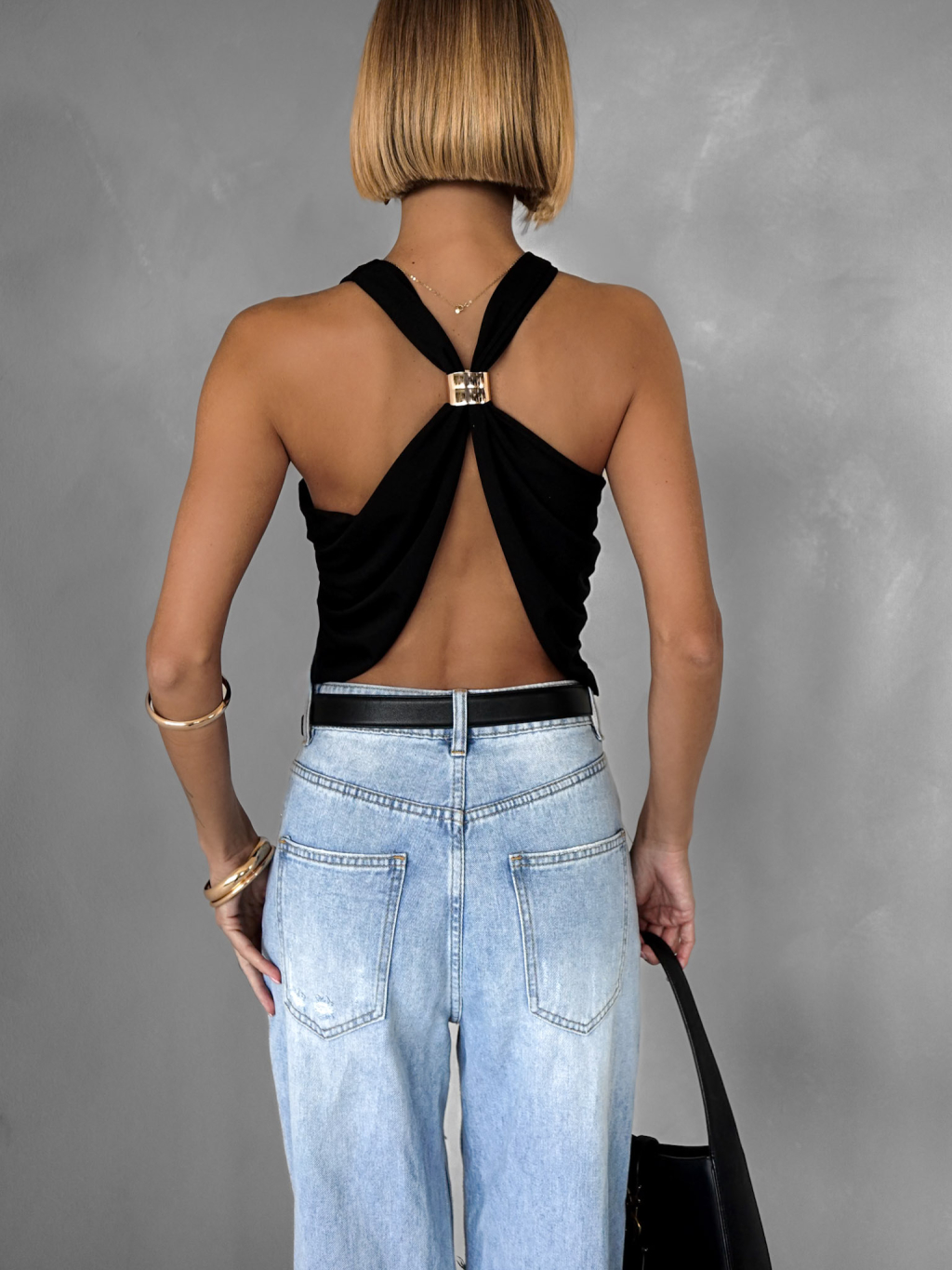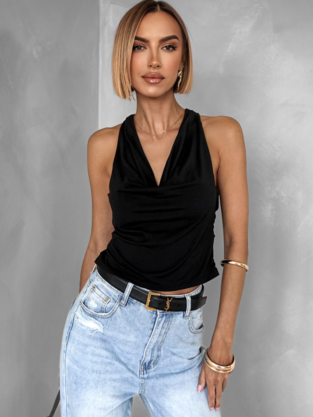 Černý elegantní top OWENS s výstřihem