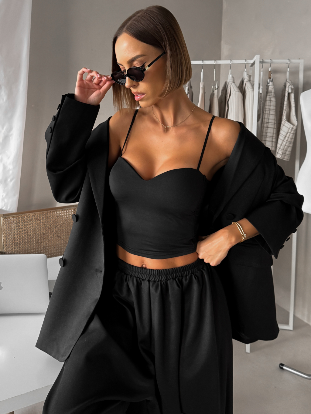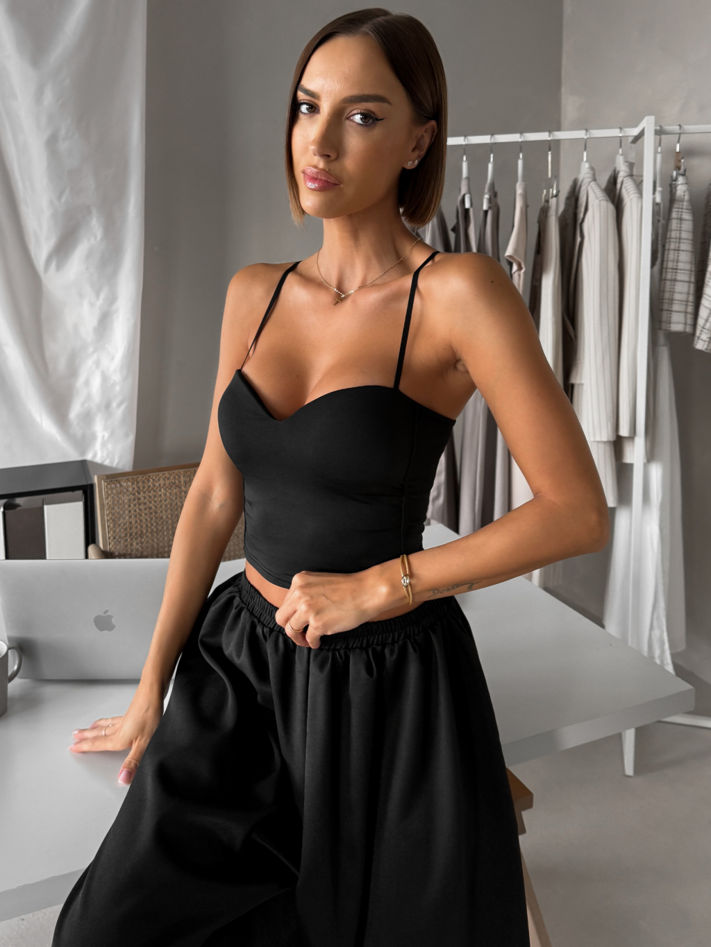 Černý krátký korzetový top BRONZE