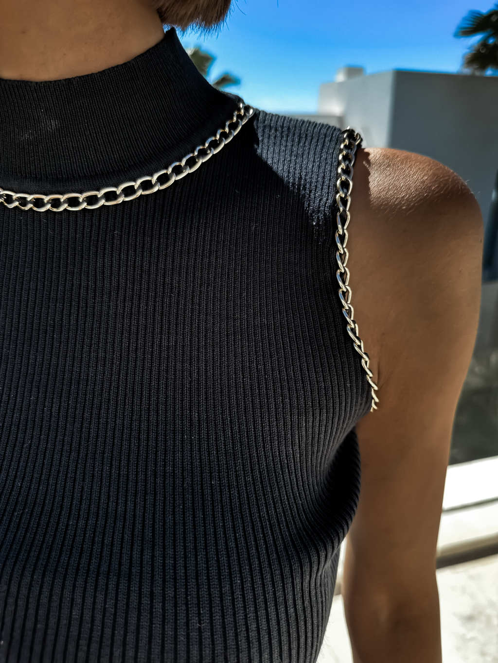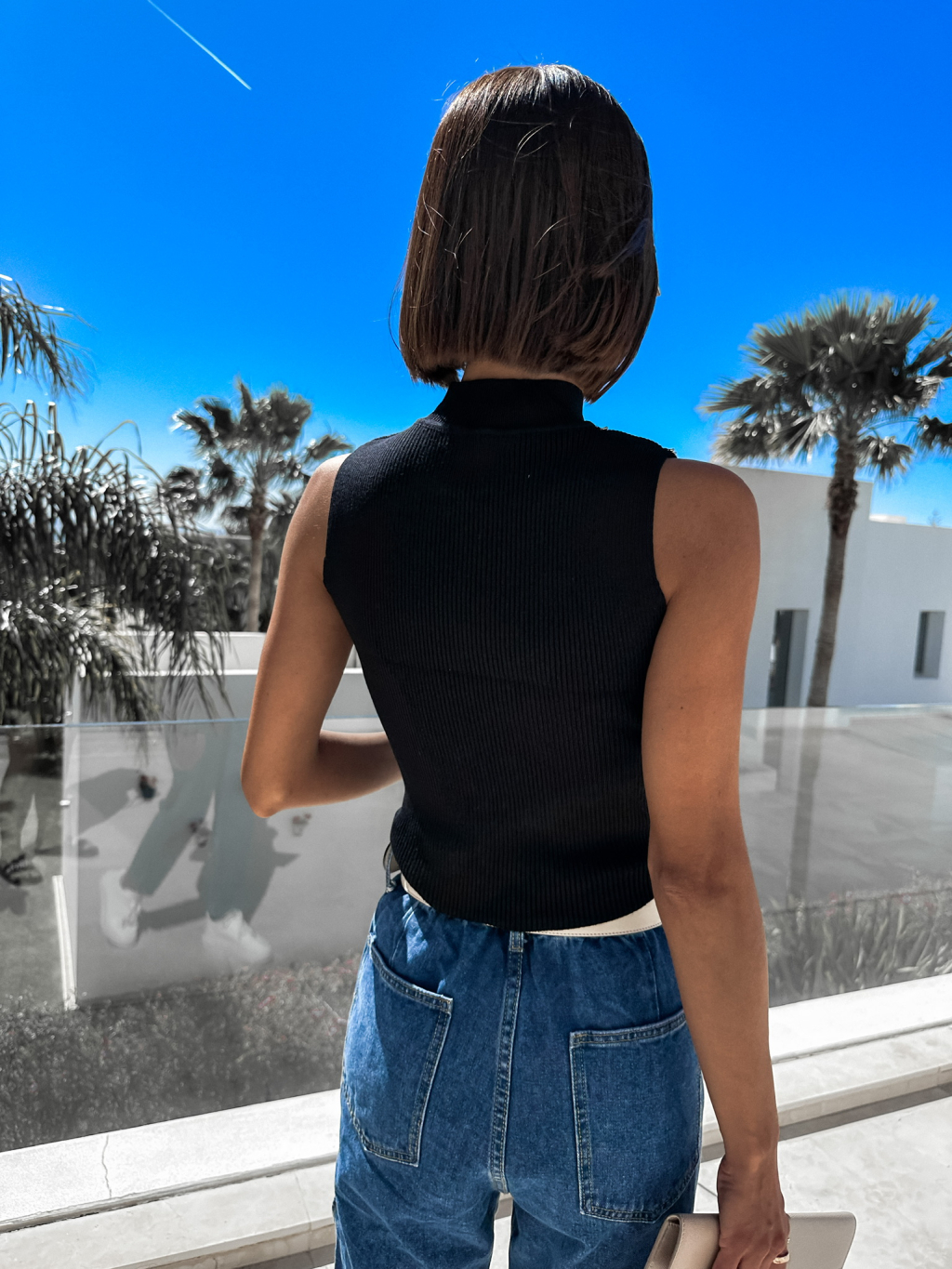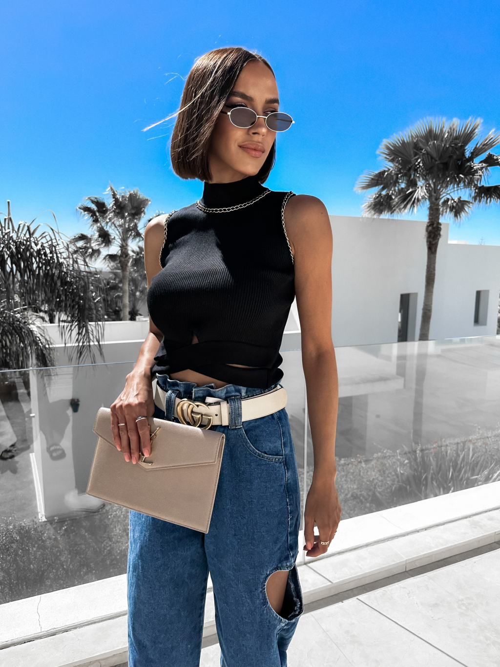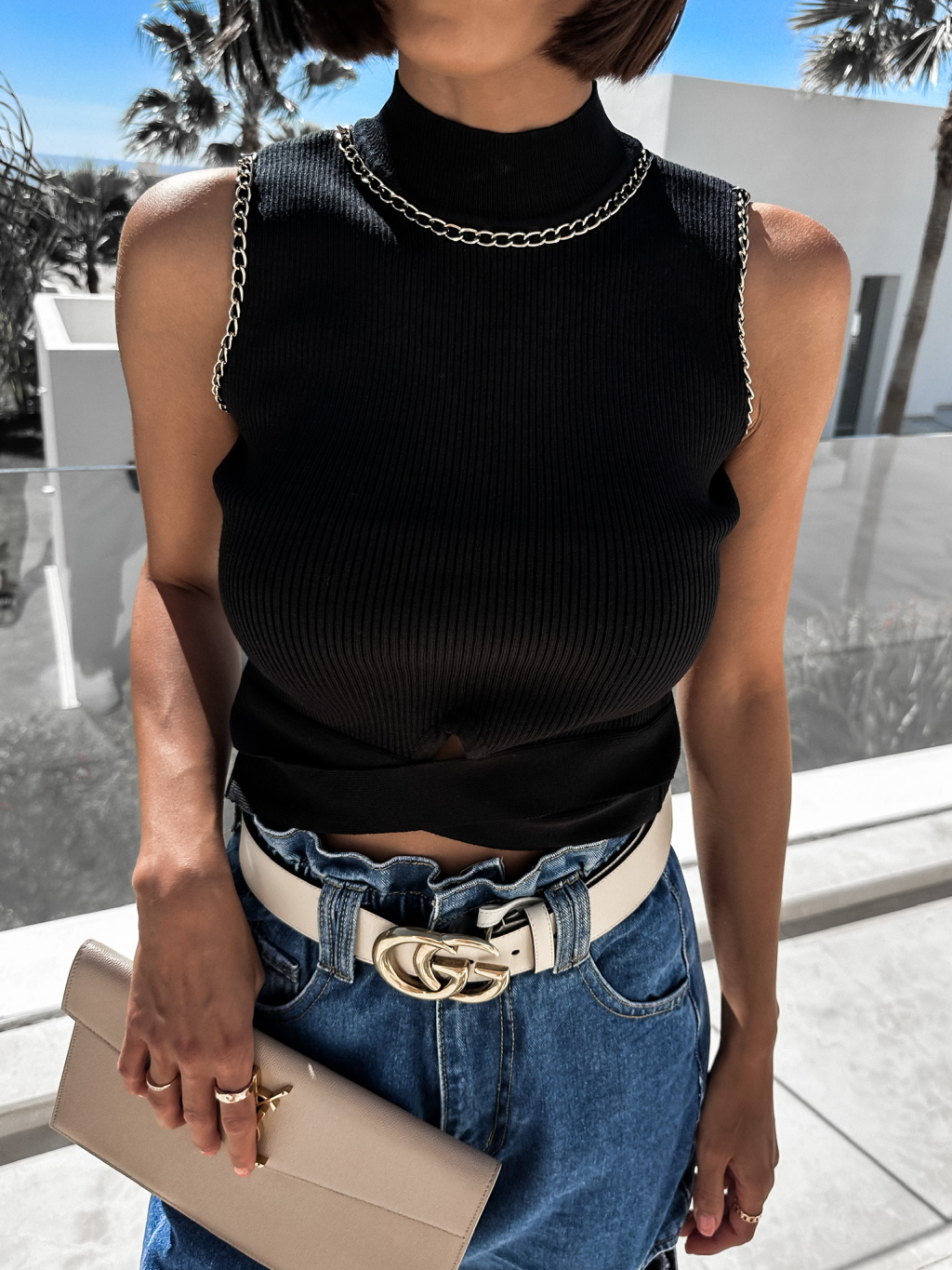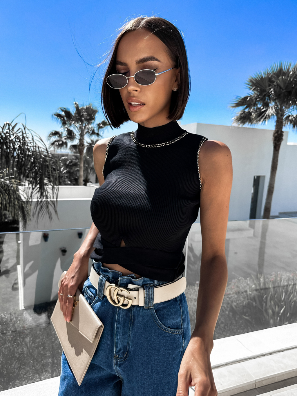 Černý žebrovaný top BOLSANE se zlatým detailem