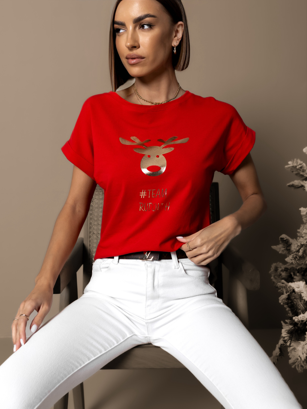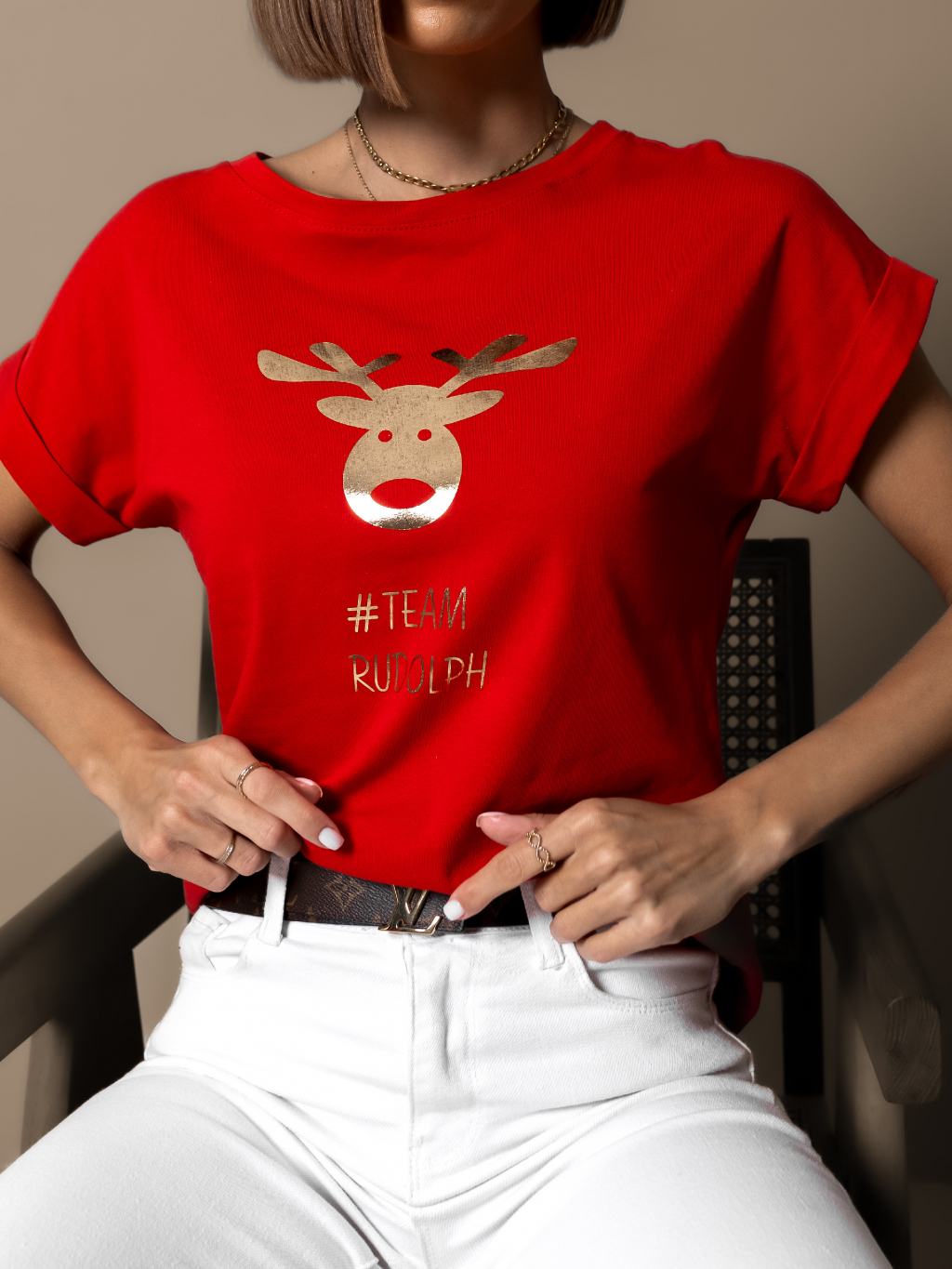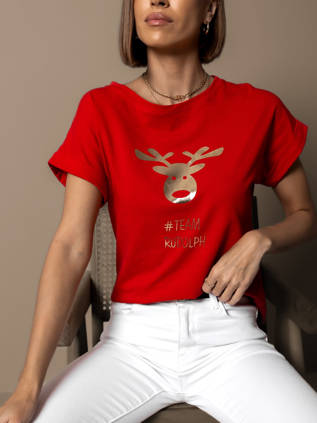 Červené vánoční triko TITYOSE se sobem