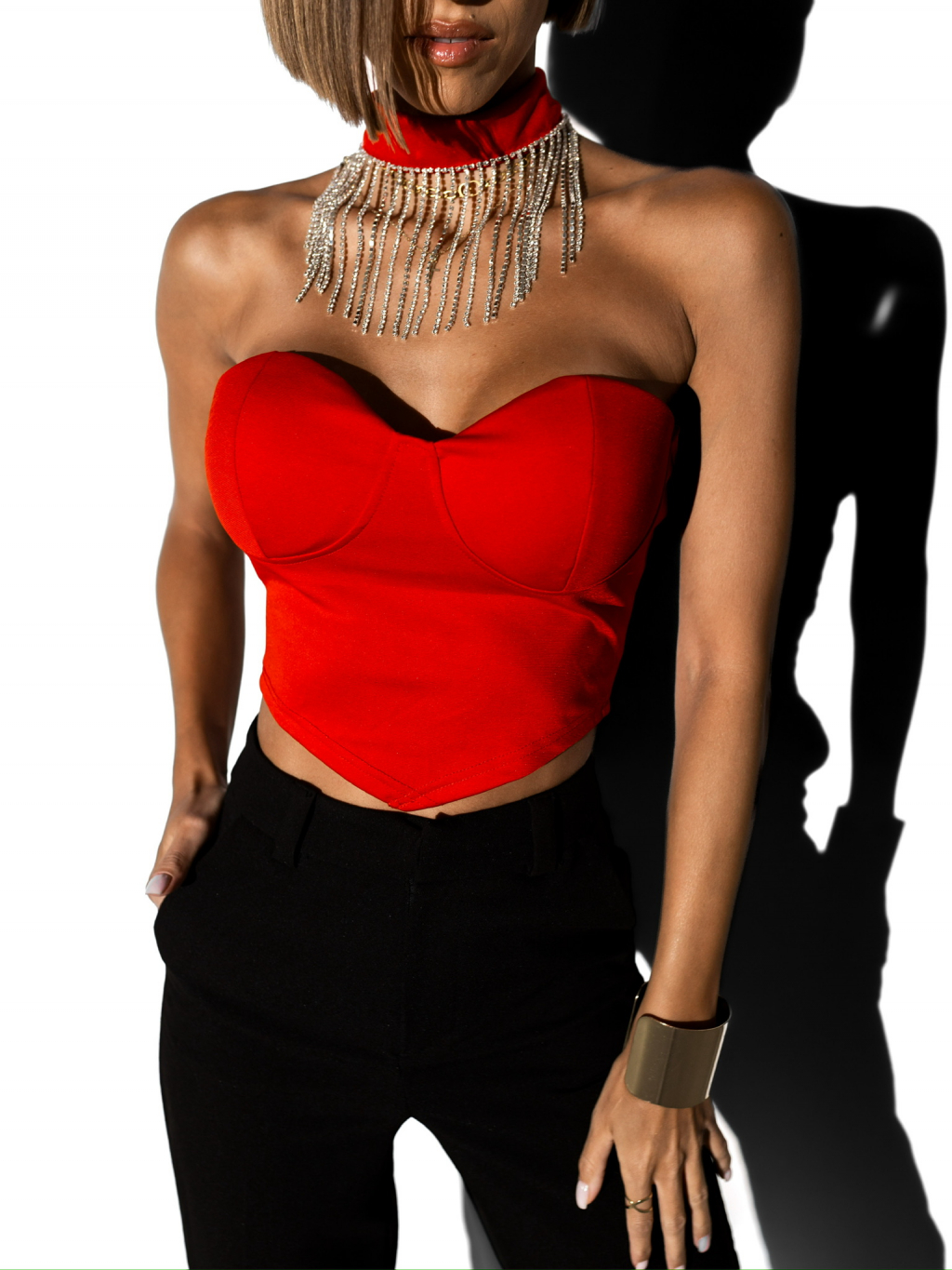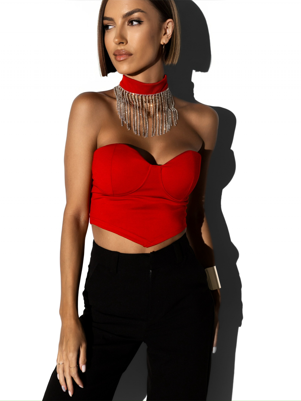 Červený top MATHIAS se stříbrnou aplikací u krku