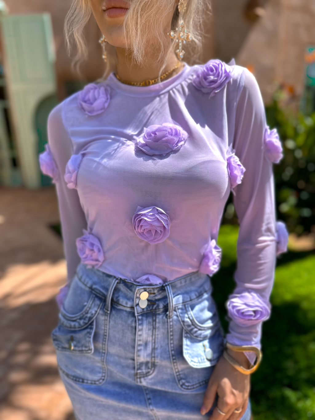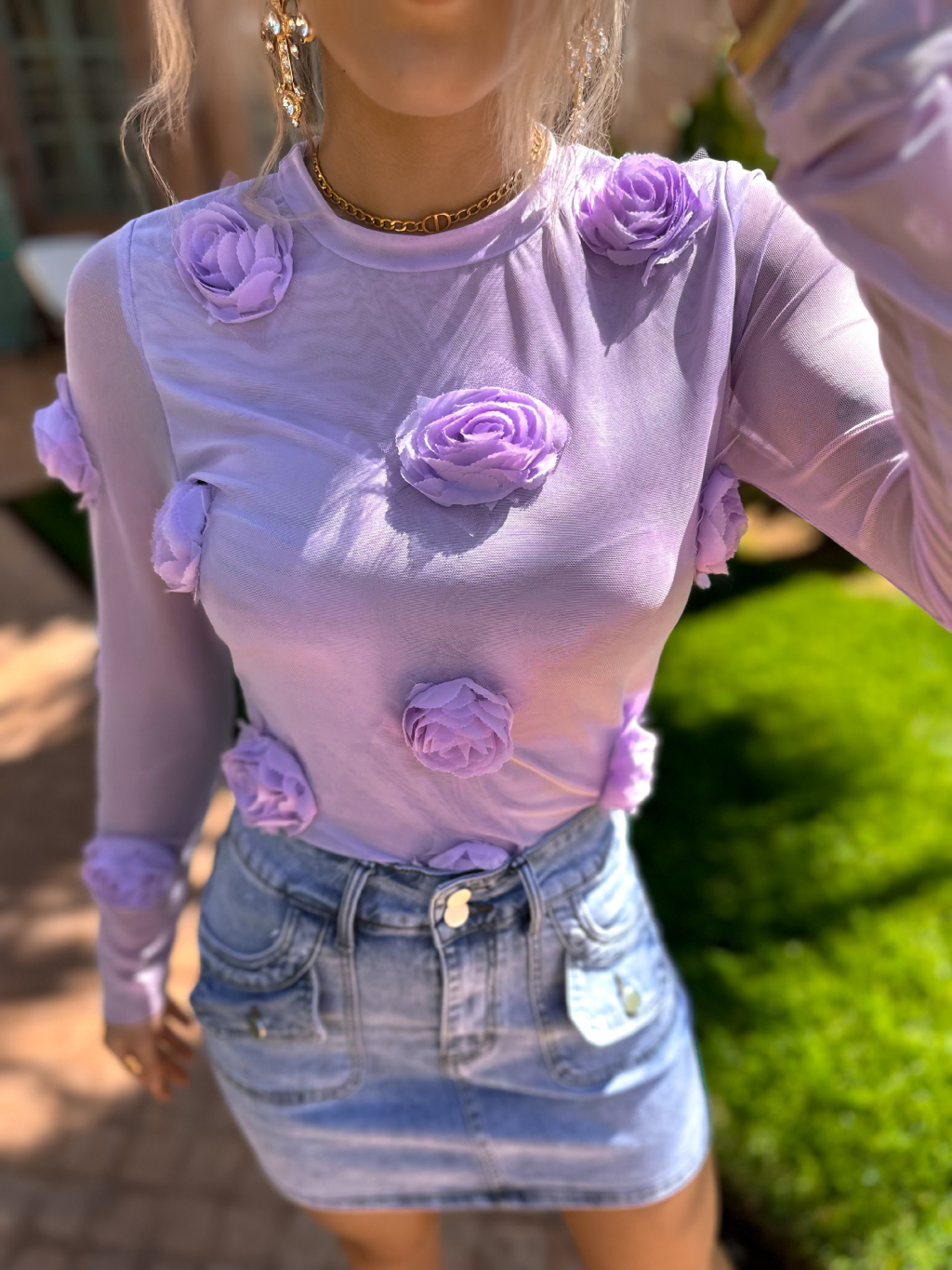 Fialové květinové triko ILLAI s dlouhým rukávem