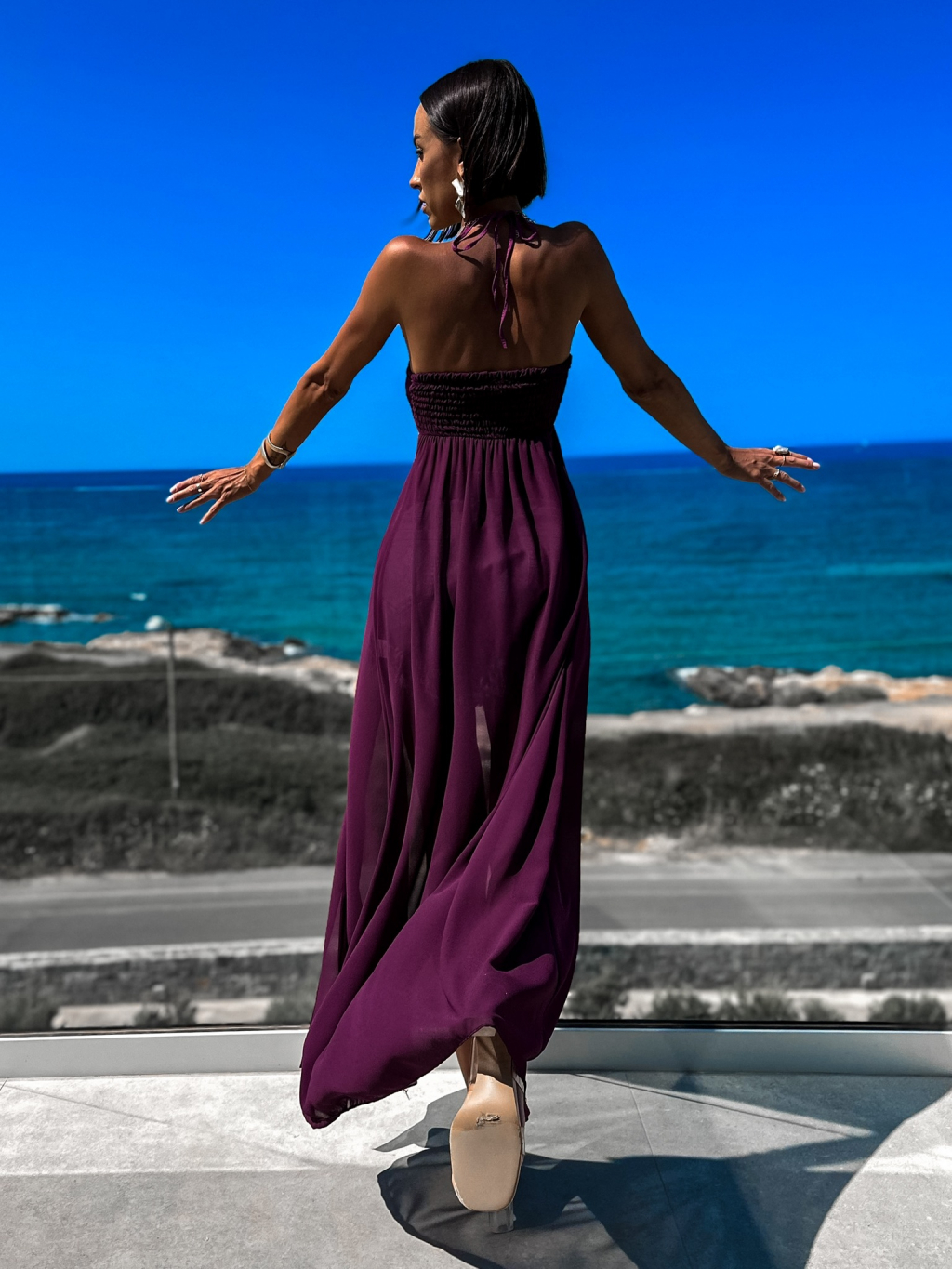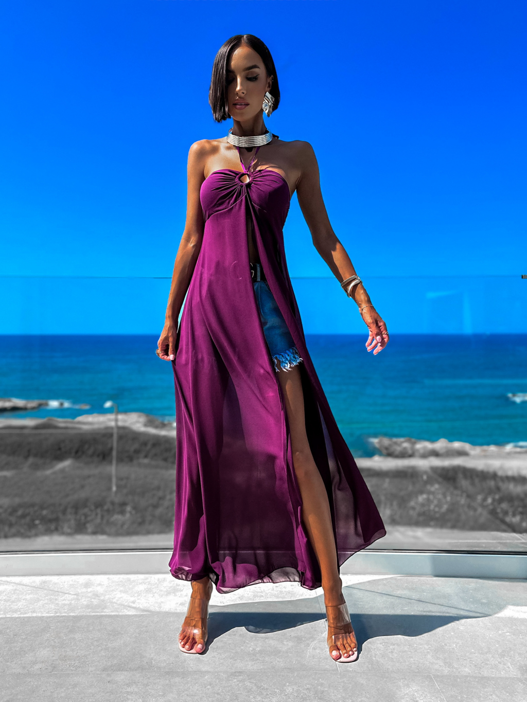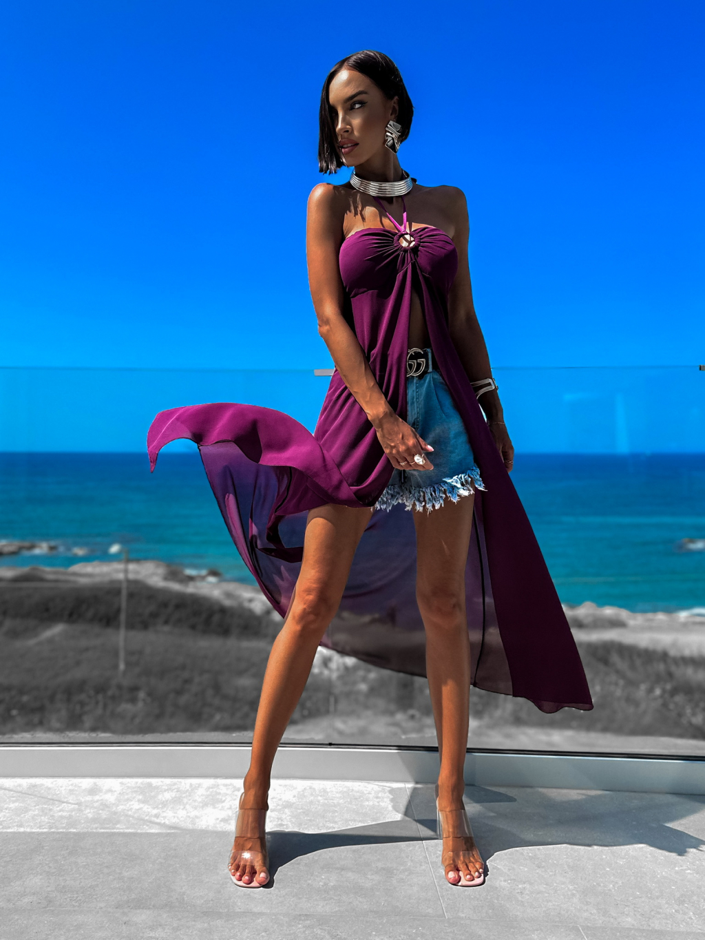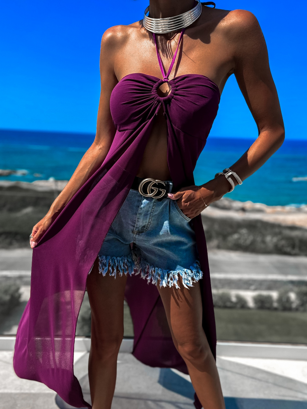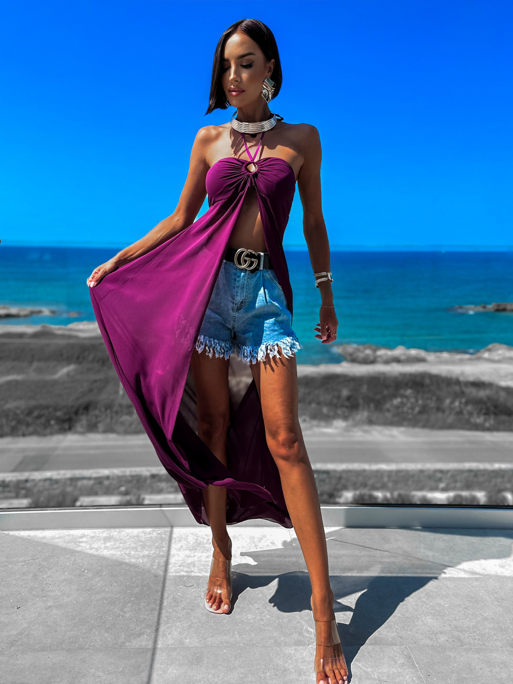 Fialový dlouhý elegantní top ETELLE s průstřihy