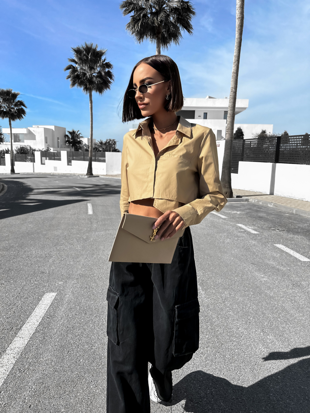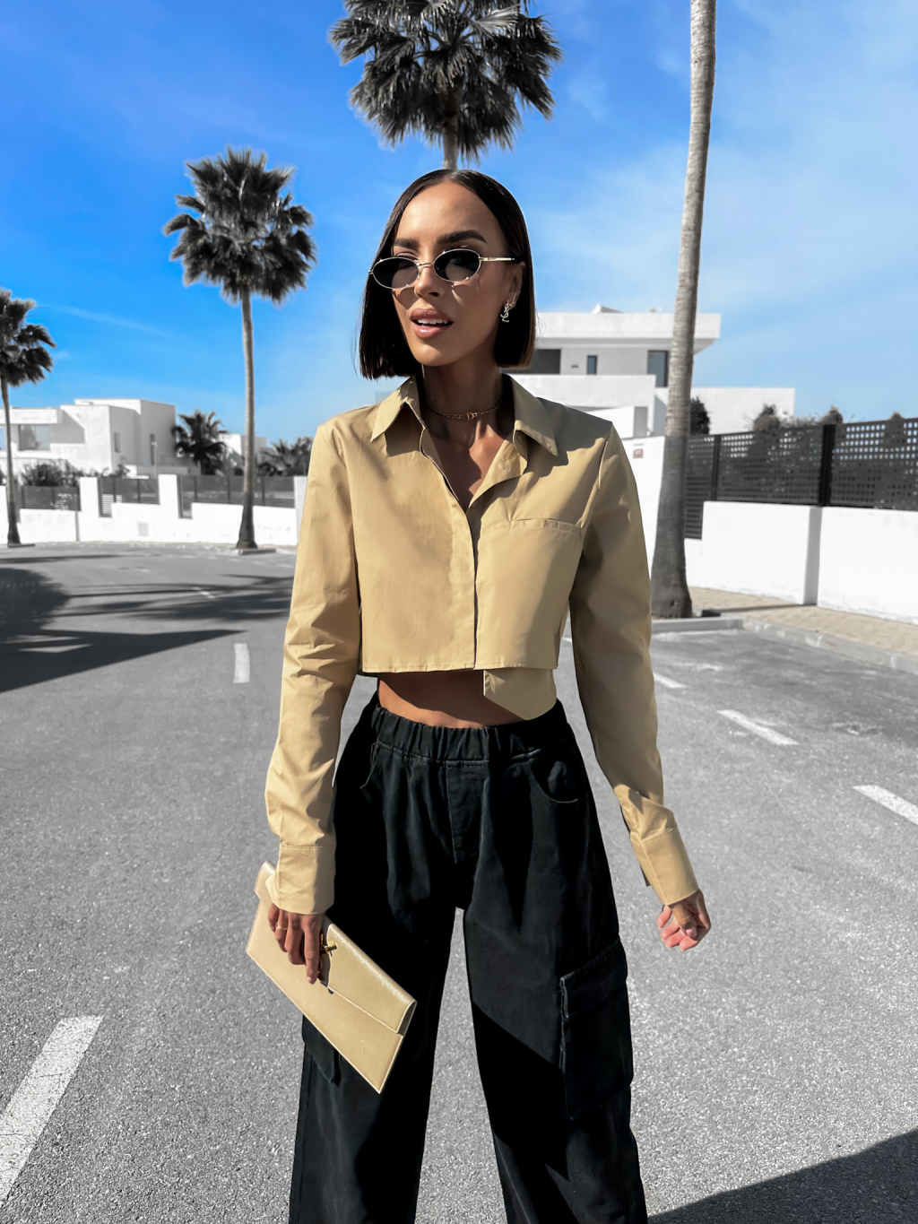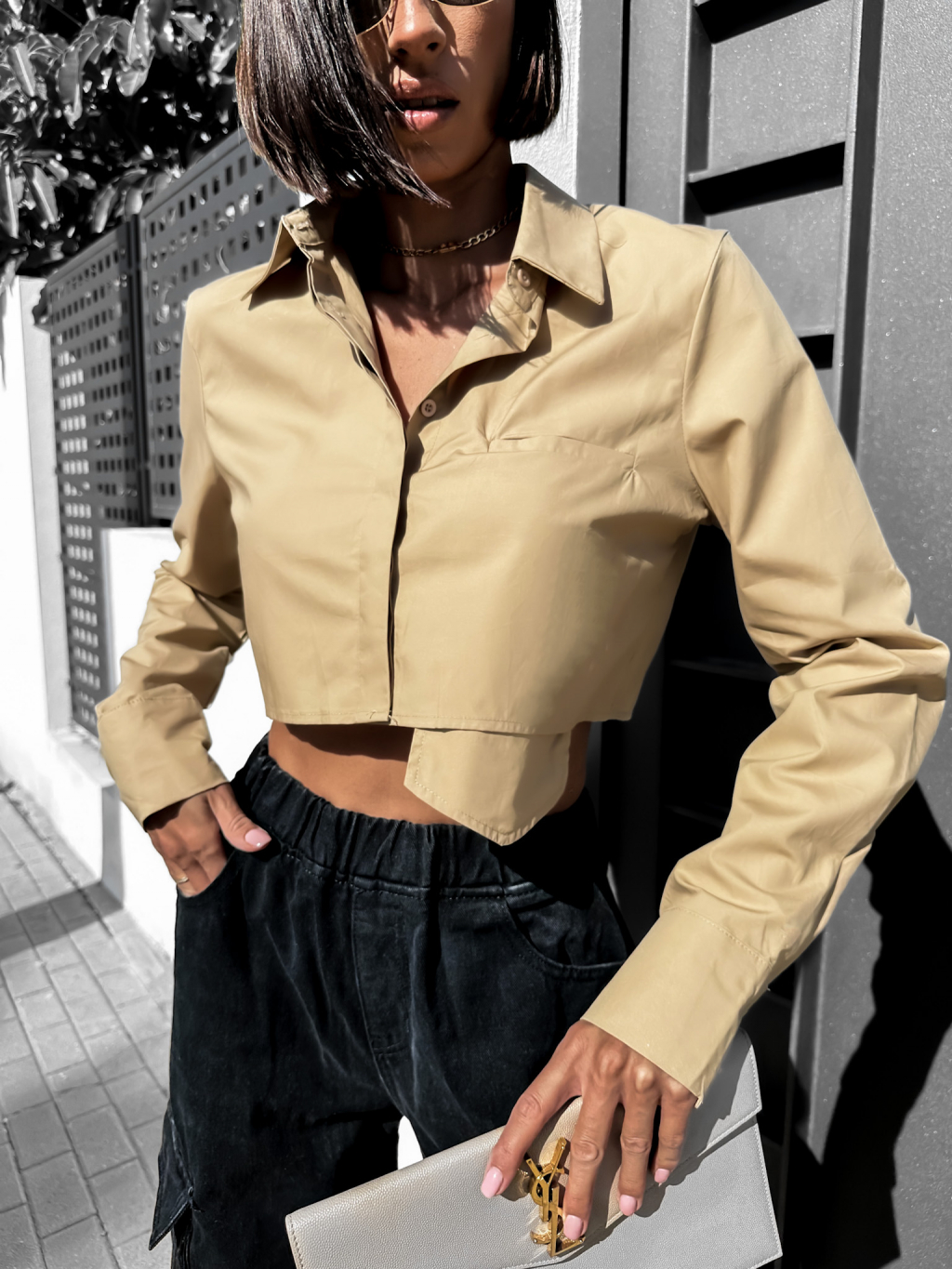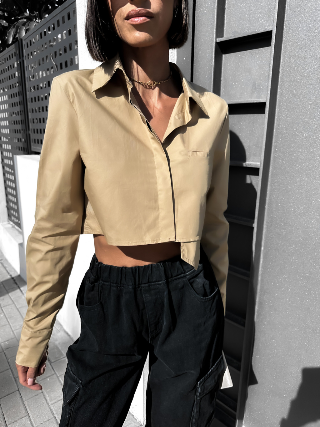 Hnědá elegantní kratší košile ARLONY