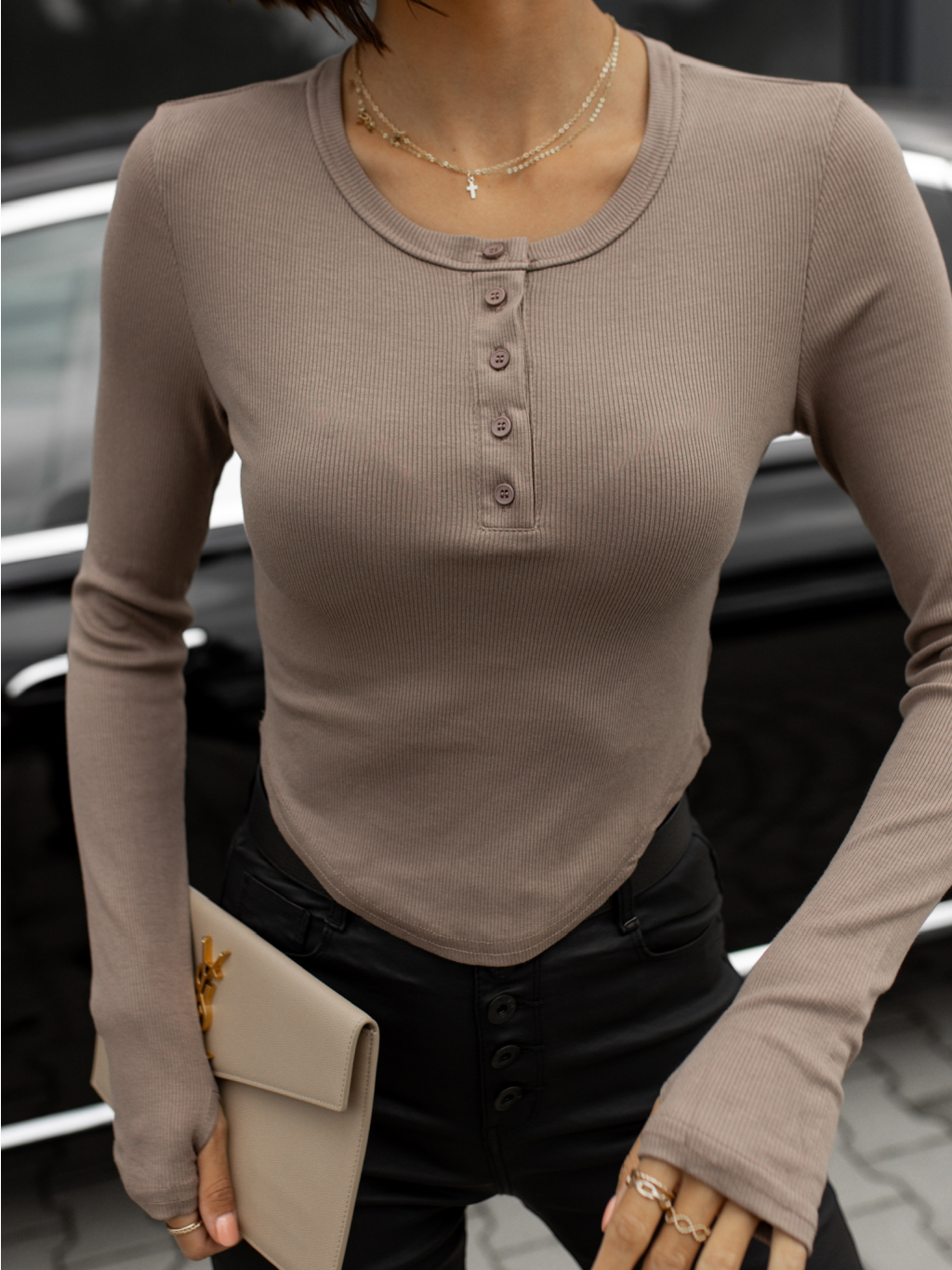 Hnědé tričko LELOSYN s dlouhým rukávem