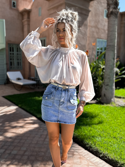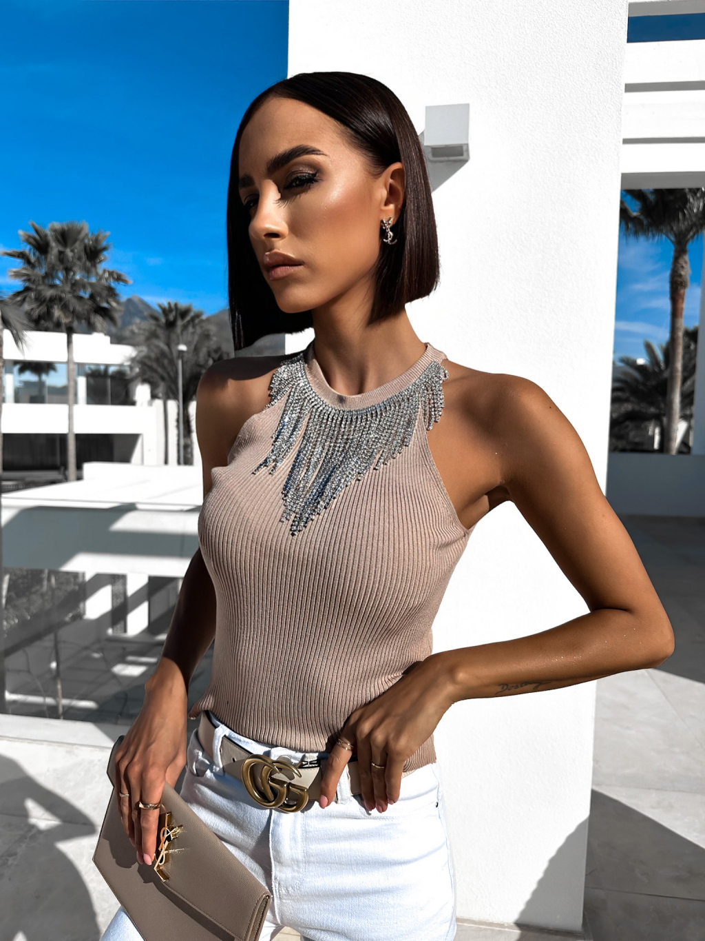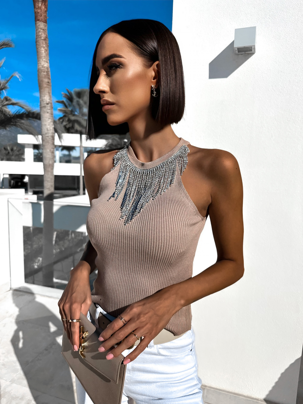 Hnědý elegantní top AROLENI se stříbrnými detaily