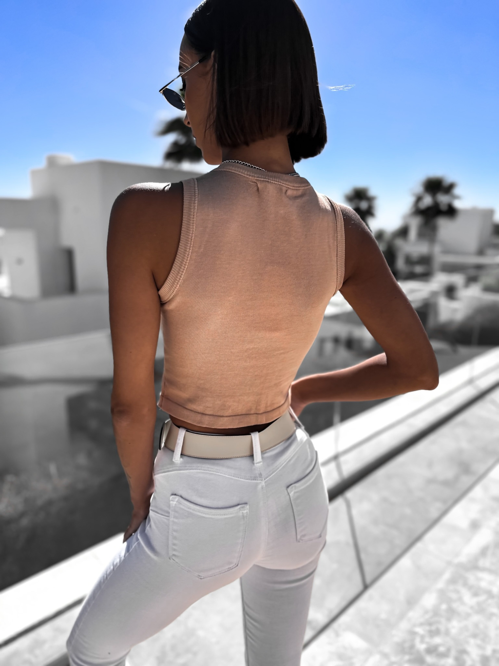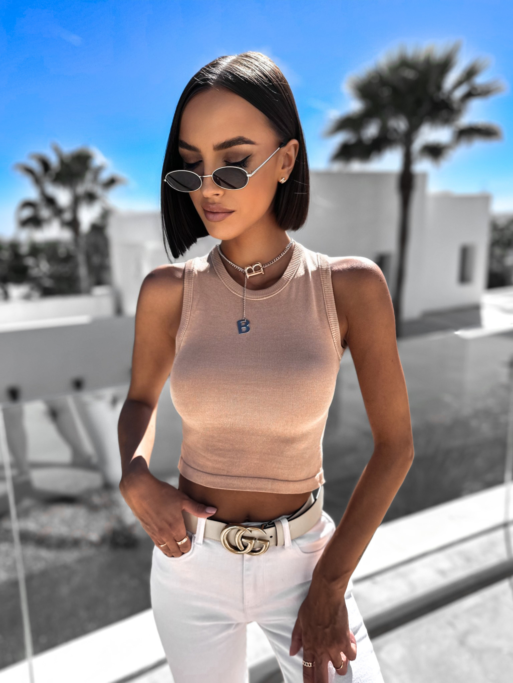 Hnědý žebrovaný top KAORU s kovovou aplikací