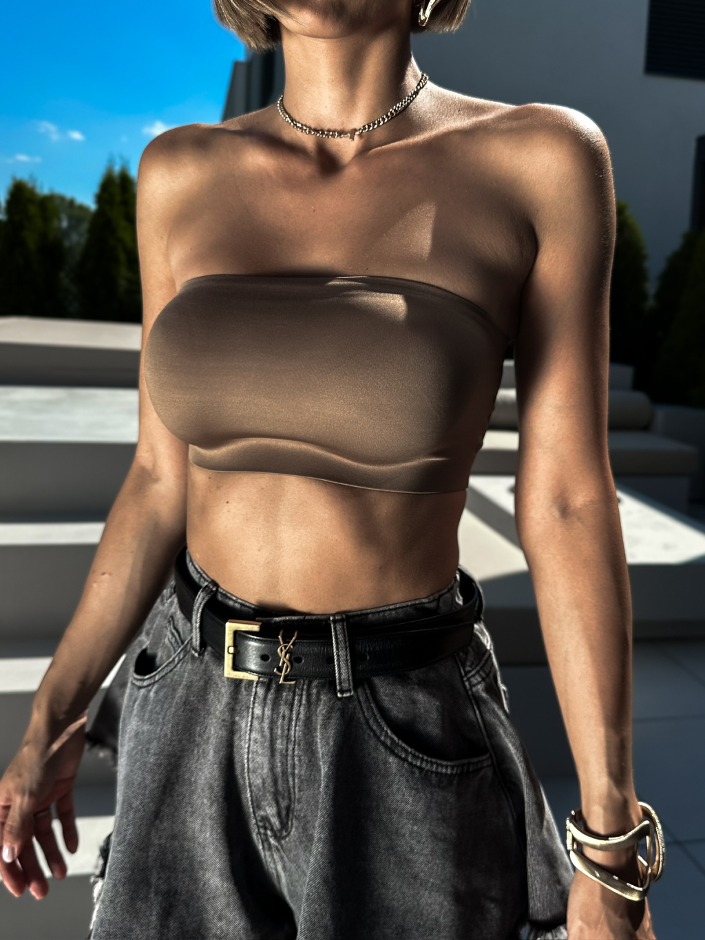 Hnědý zpevňující crop top TESEO