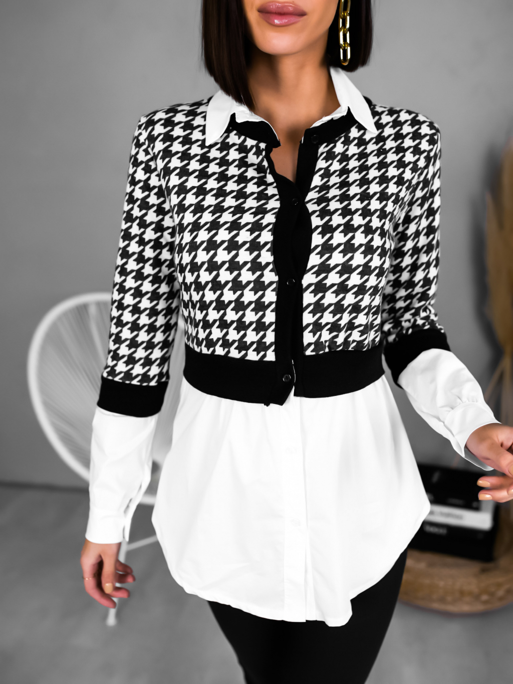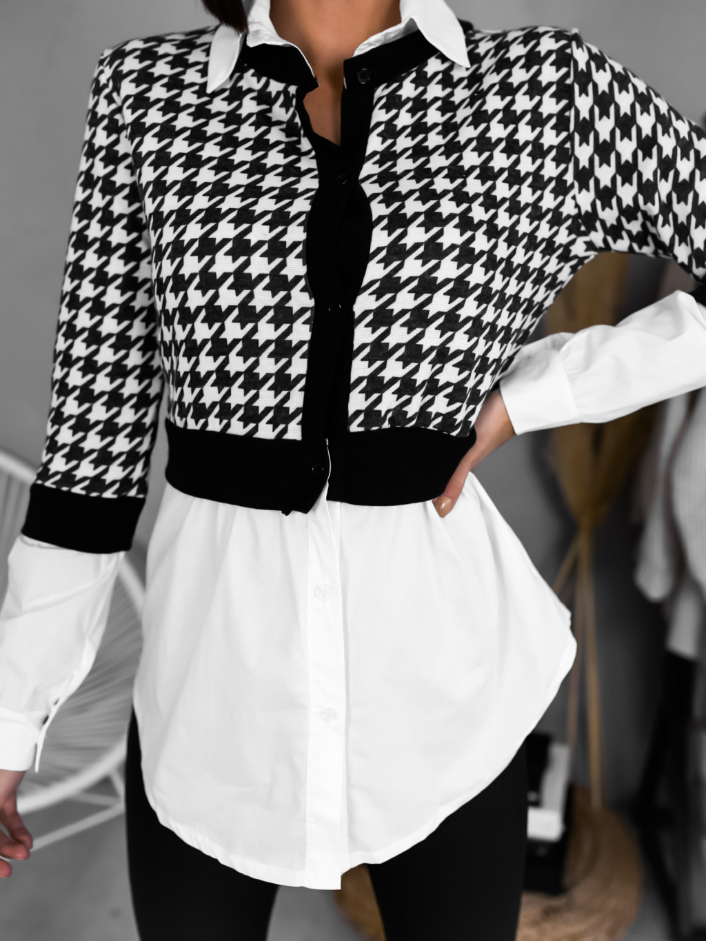 Košile Appear je vyrobena z kvalitního a velmi příjemného materiálu. Aktuálně je velmi trendy vrstvení, takže pokud chcete být šik, je pro Vás košile Appear to pravé. Kombinace černé a bílé je nesmrtelná klasika. Na originalitě košili přidává všitý svetřík. Košile má dlouhý rukáv a její délka sahá pod zadek. Jedná se o lehce kombinovatelný kousek, který si zamilujete stejně jako my.