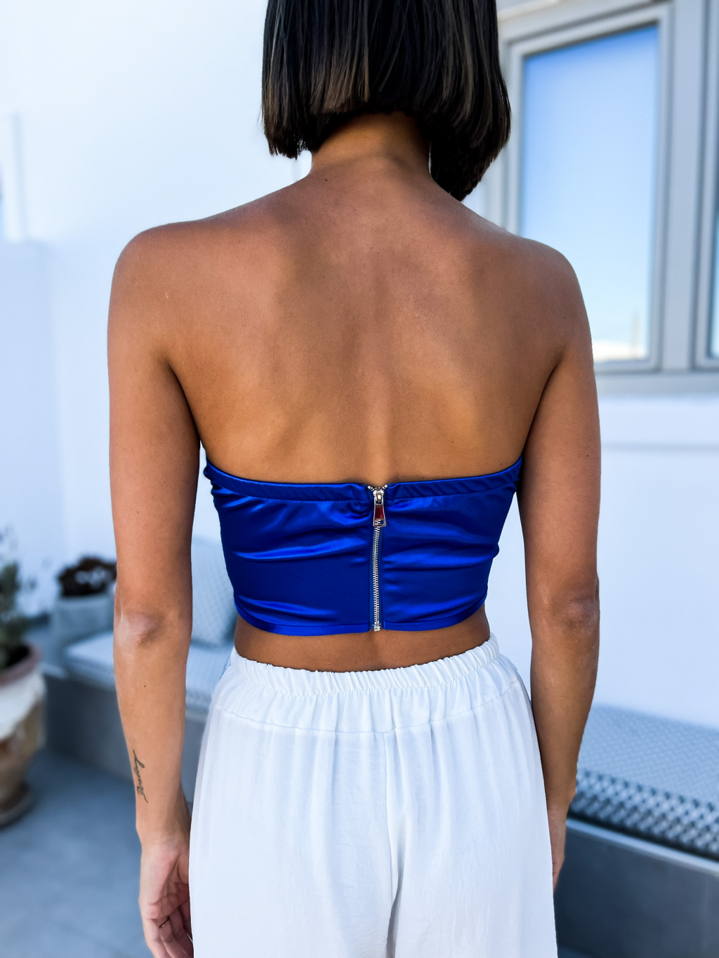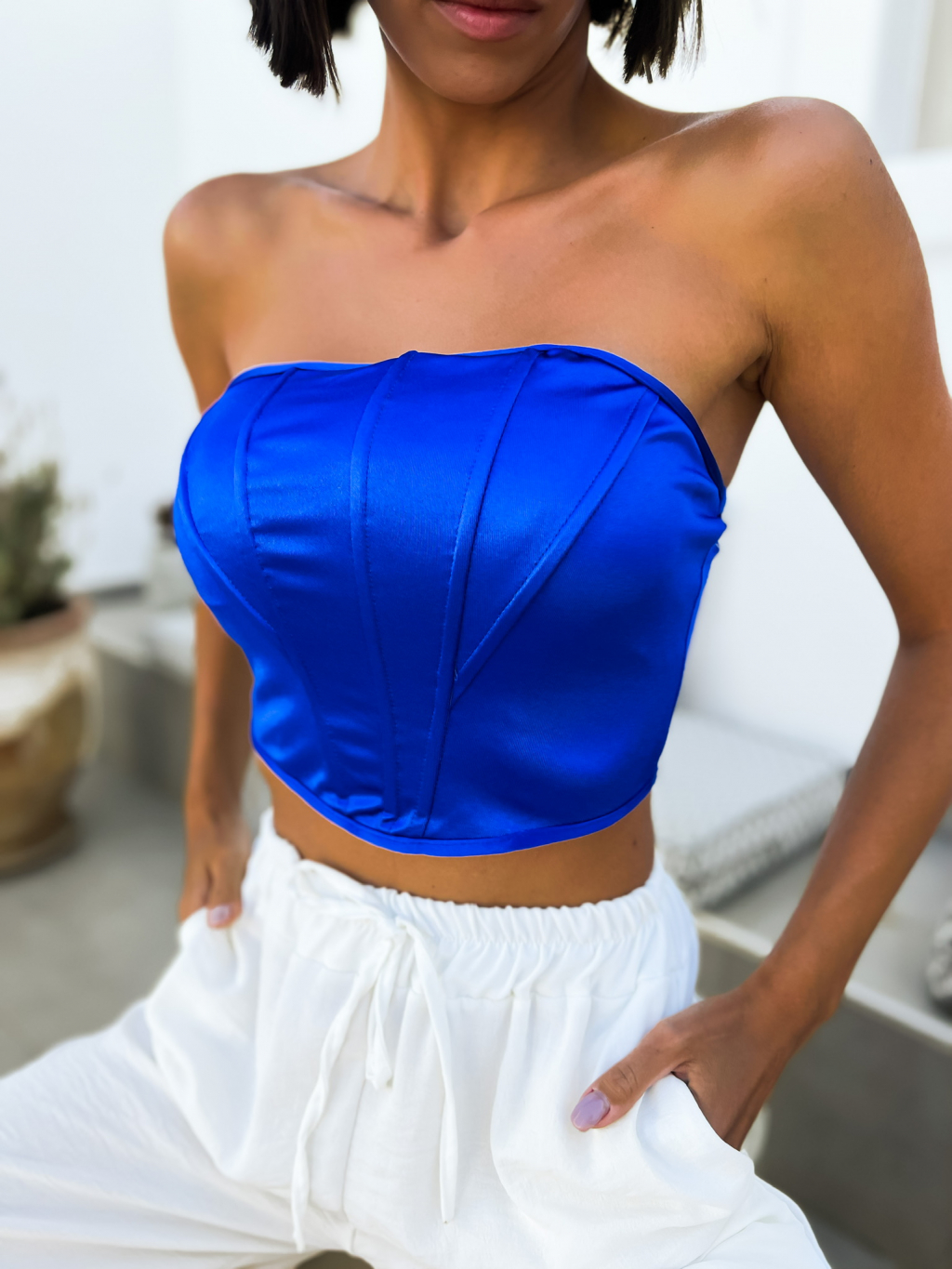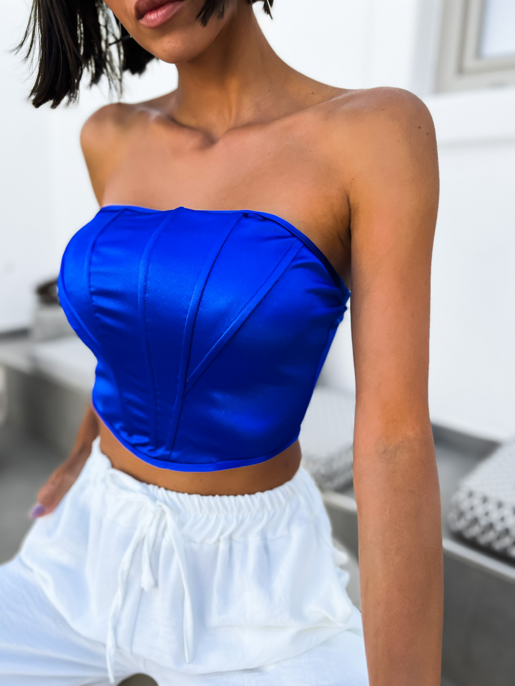 Královsky modrý elegantní crop top METEORITE