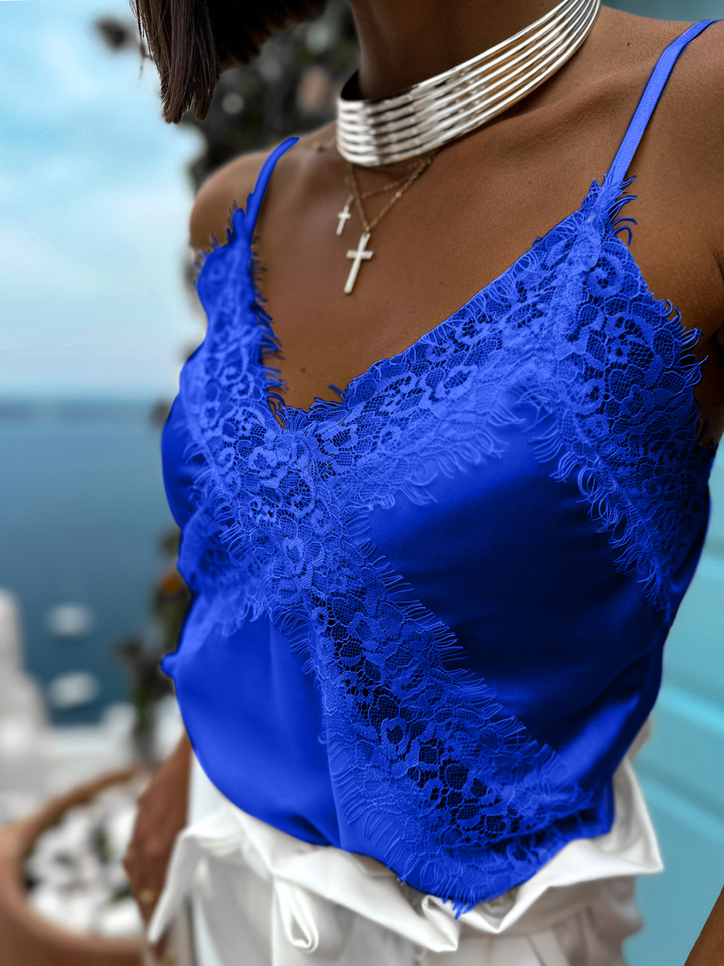 Královsky modrý krajkový top KONOSI
