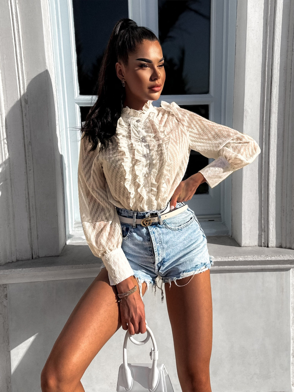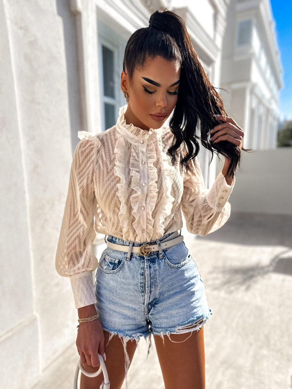 Krémová elegantní košile MORLENE s volánky