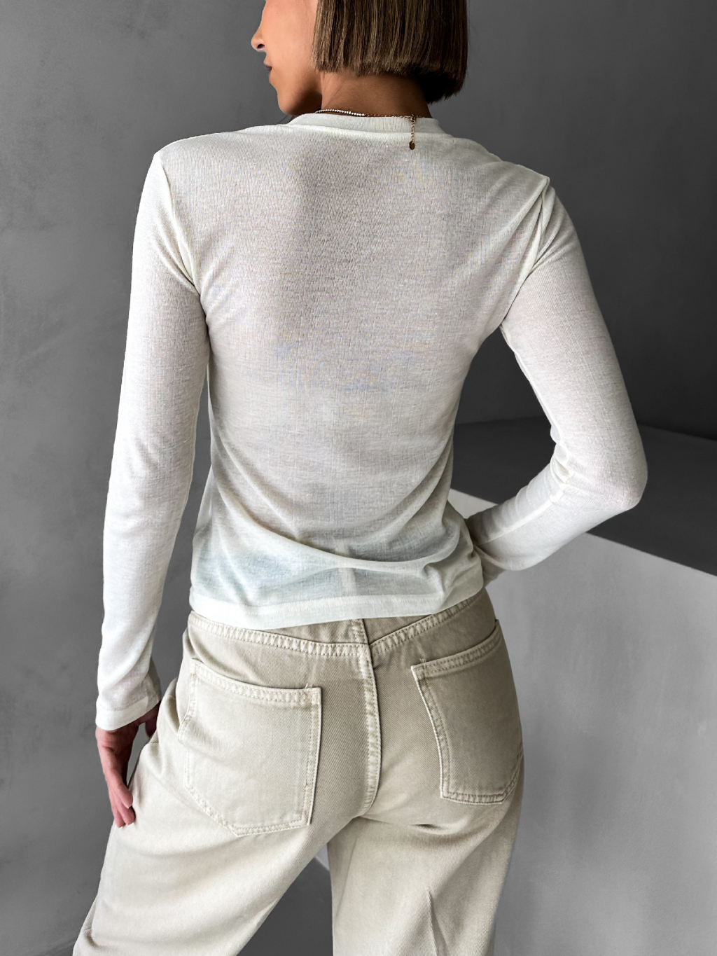 Krémové bavlněné triko PAZAR s dlouhým rukávem