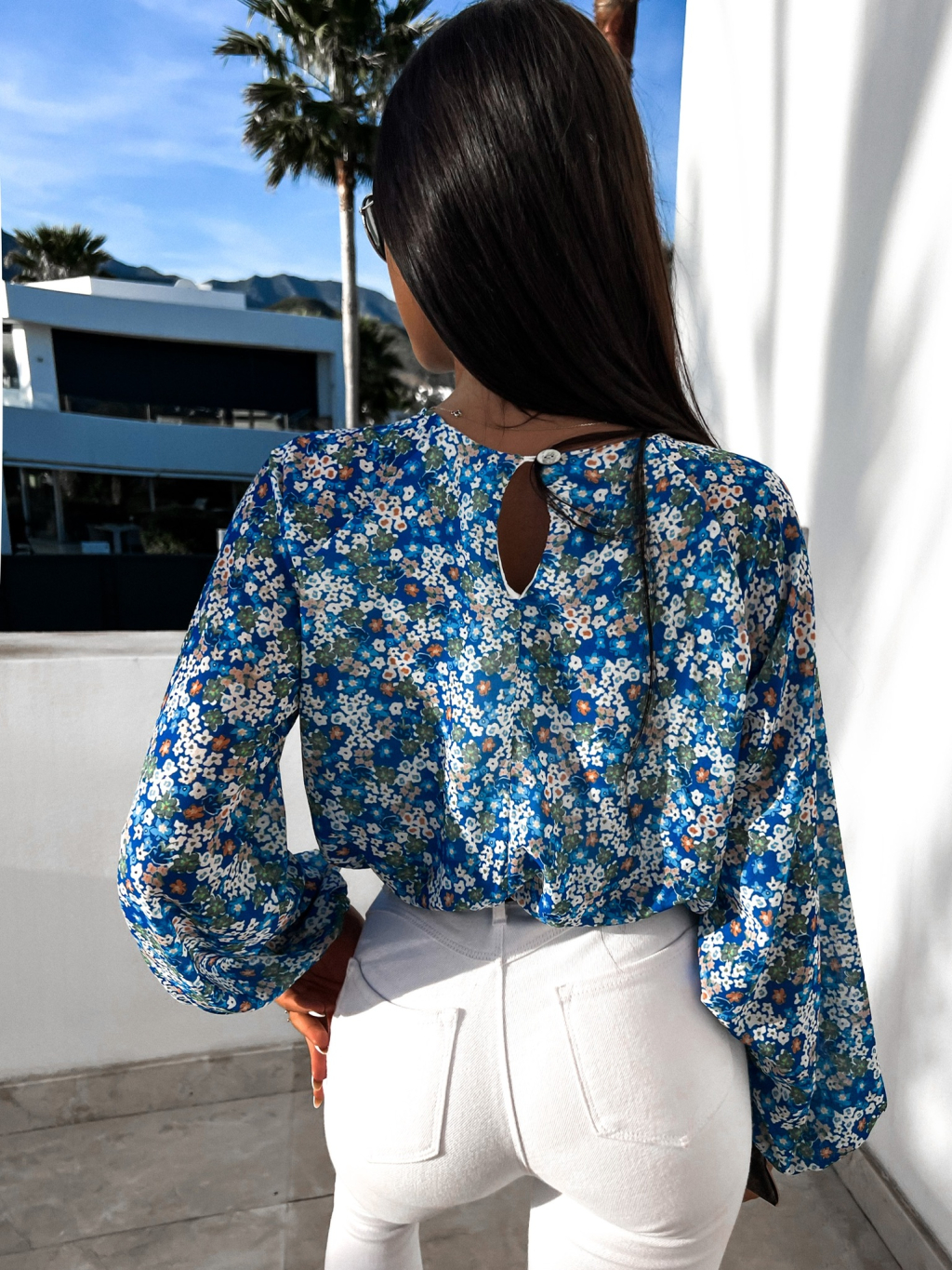 Modrá elegantní halenka REAGGIE s dlouhým rukávem