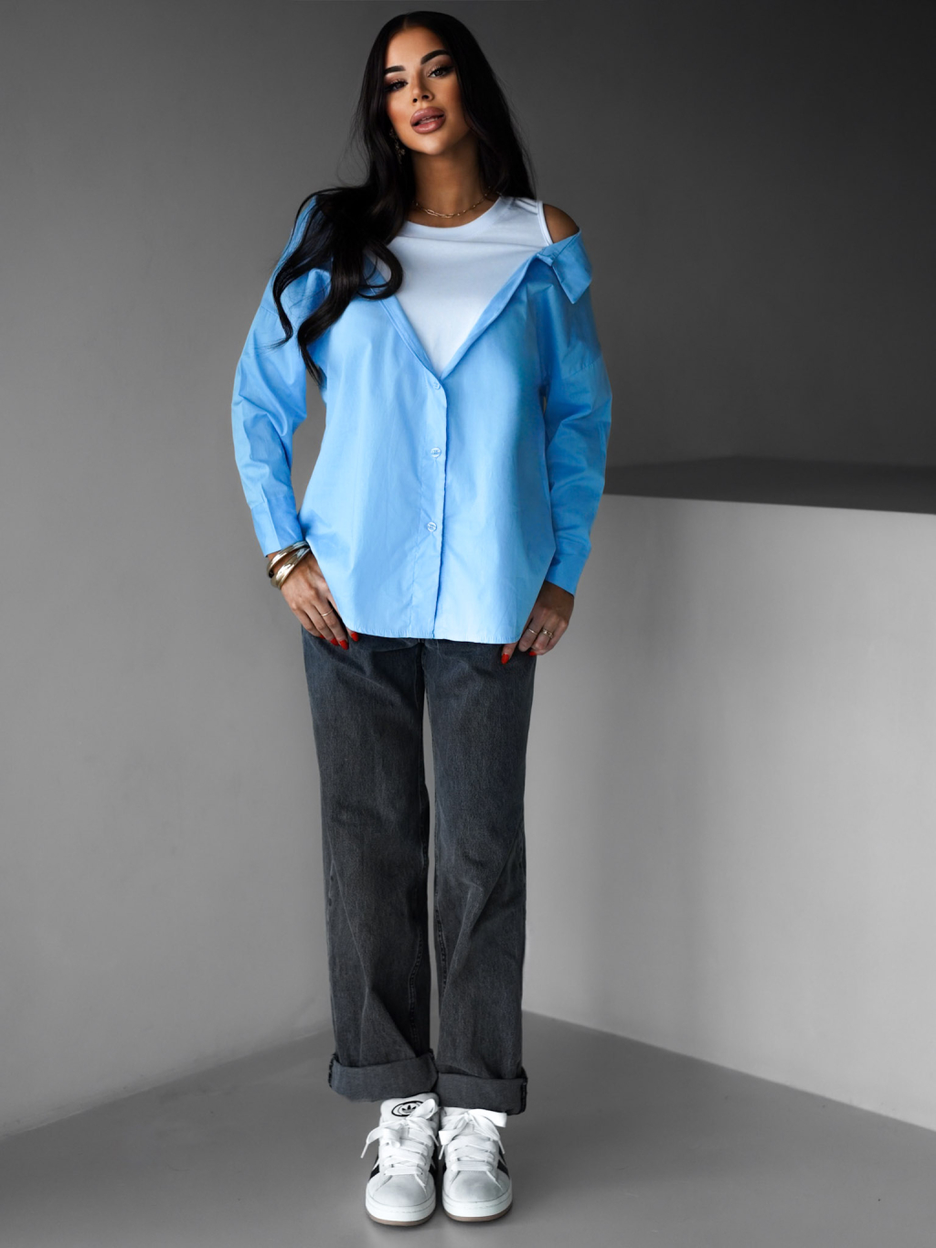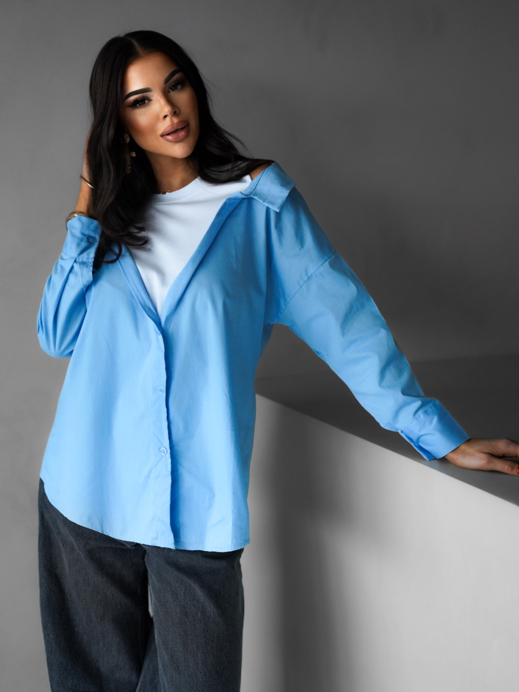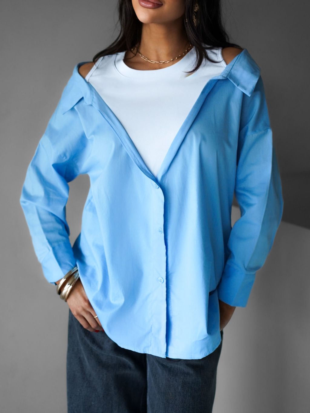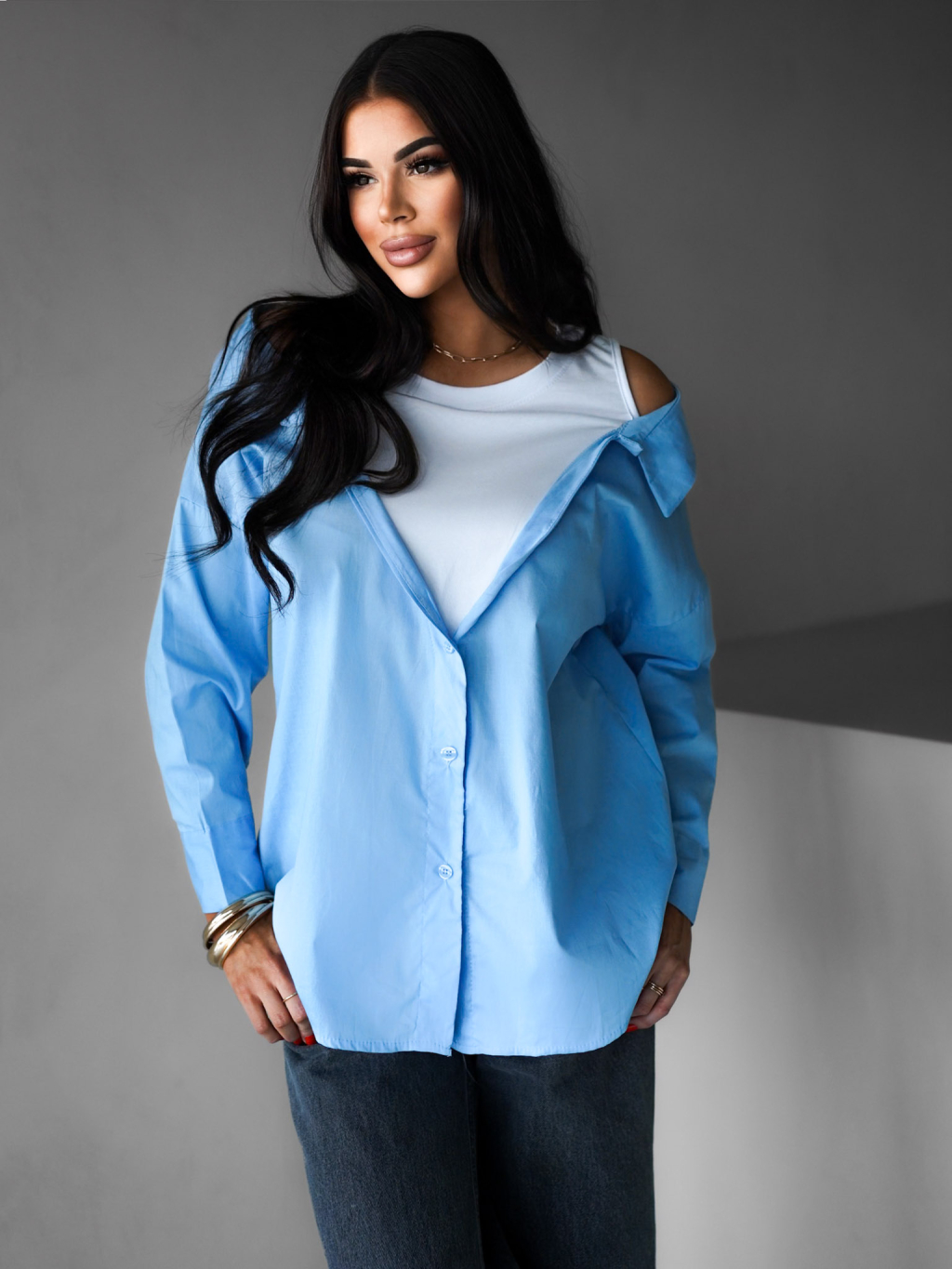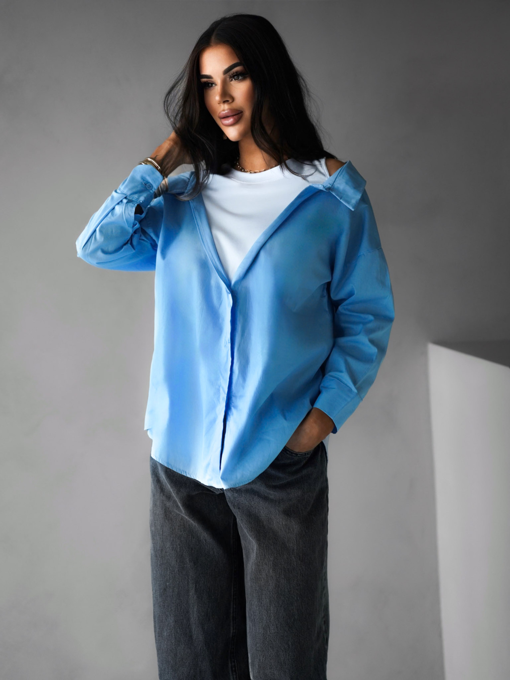 Modrá košile ELVIRE s dlouhým rukávem