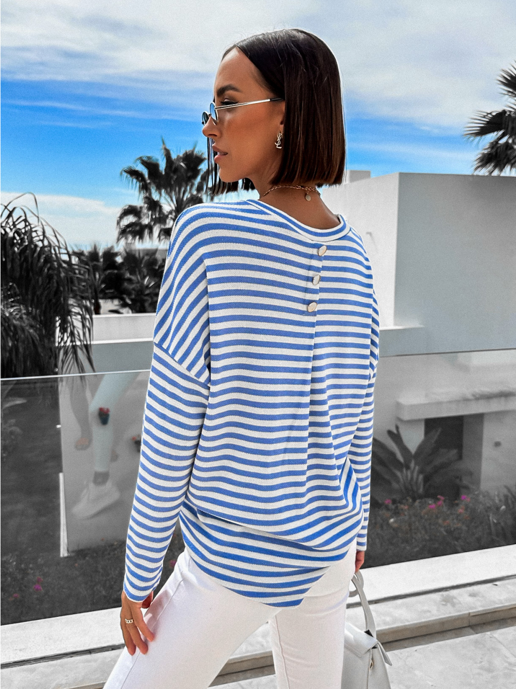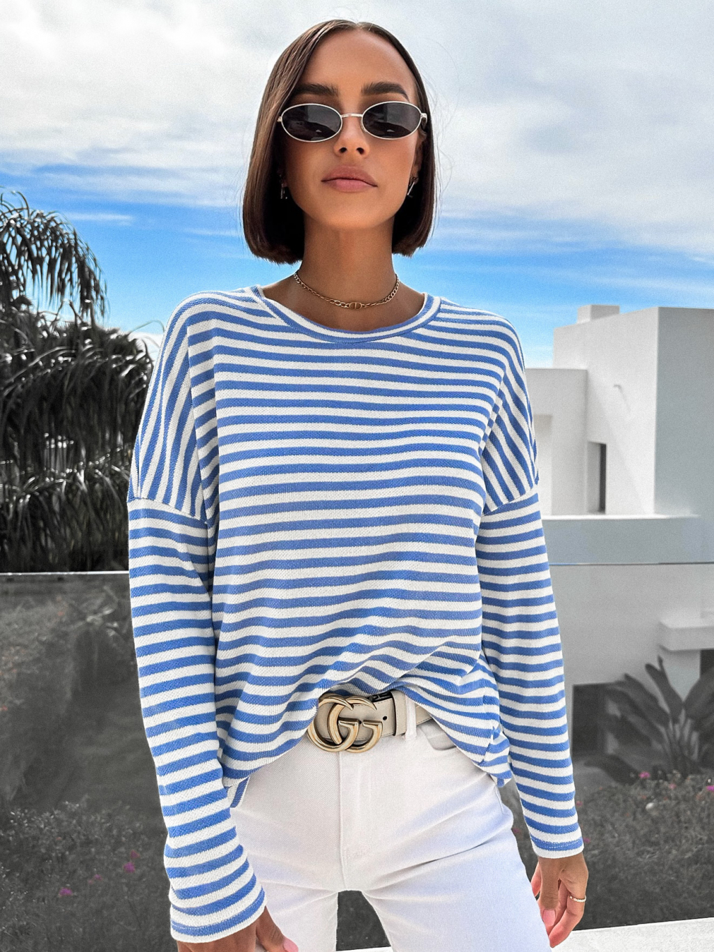 Modré pruhované tričko WRENLEY s dlouhým rukávem
