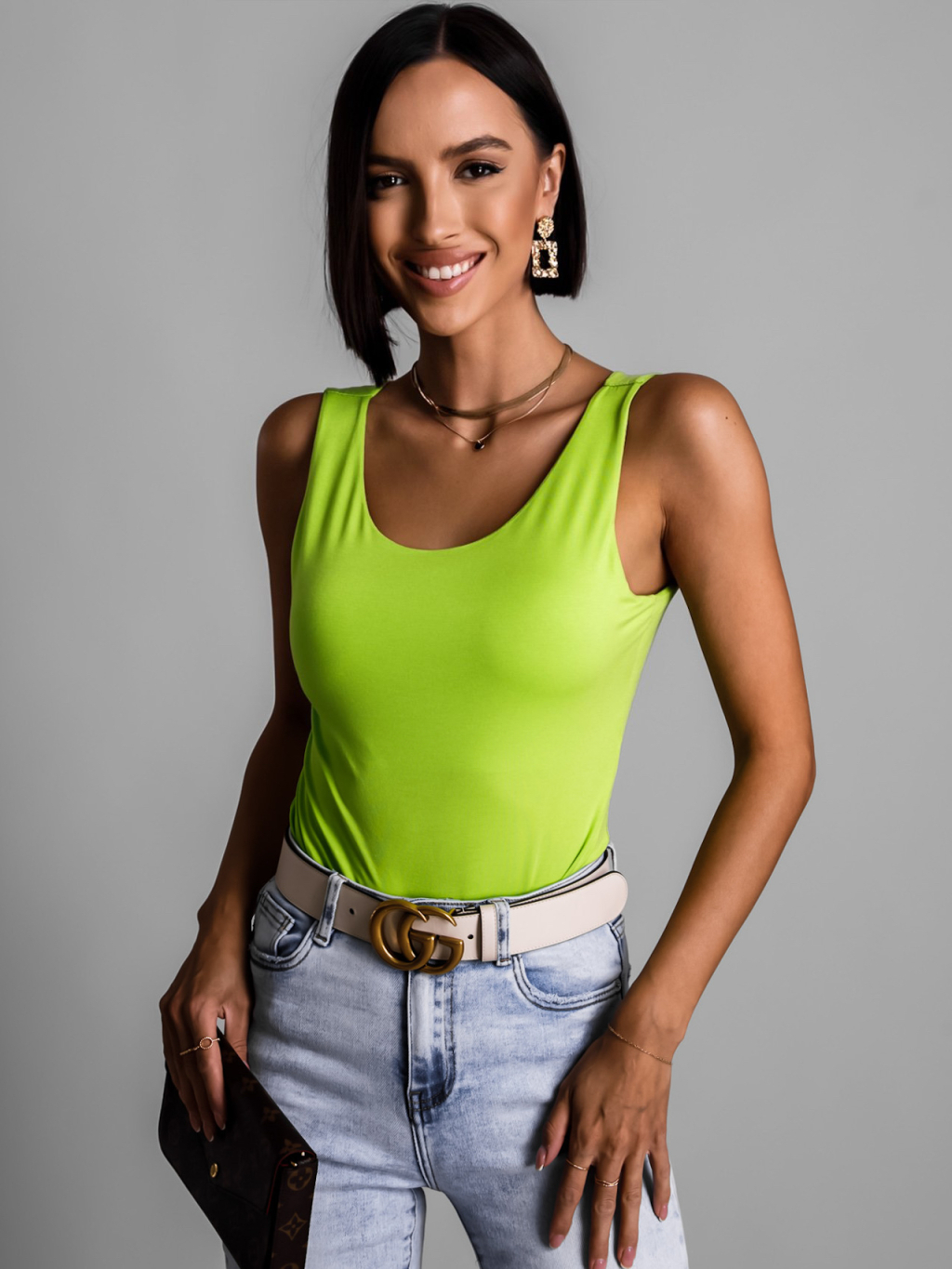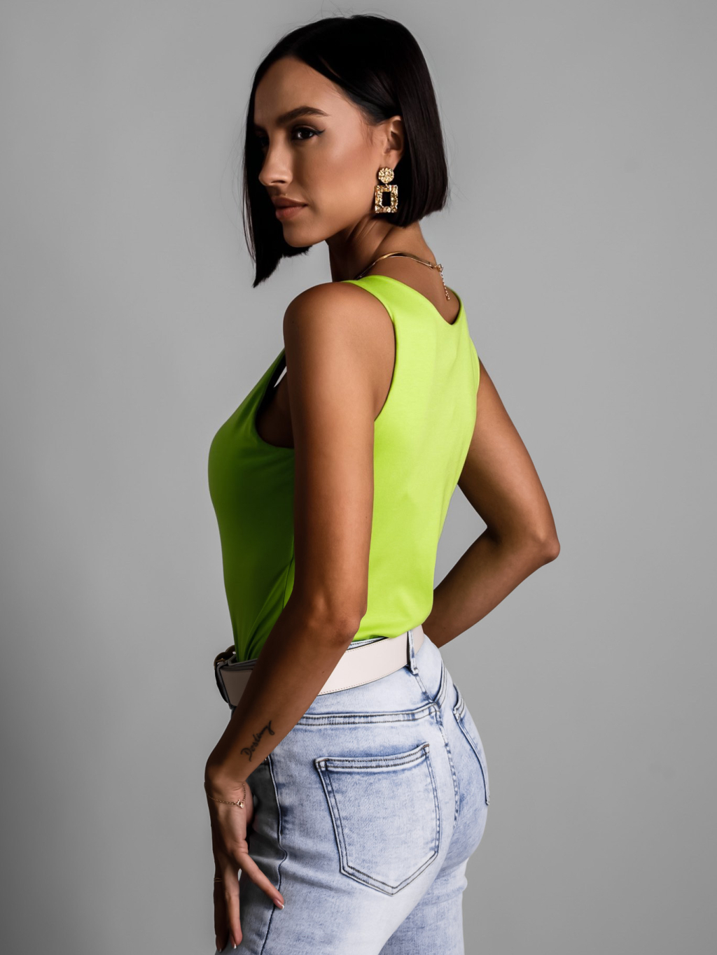 Neonově zelený elegantní jednoduchý top ZARRA