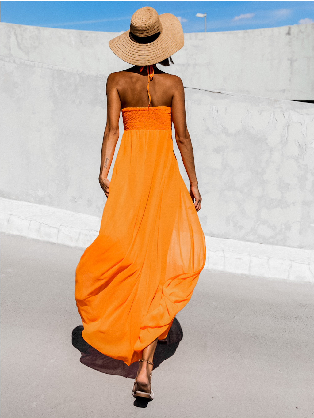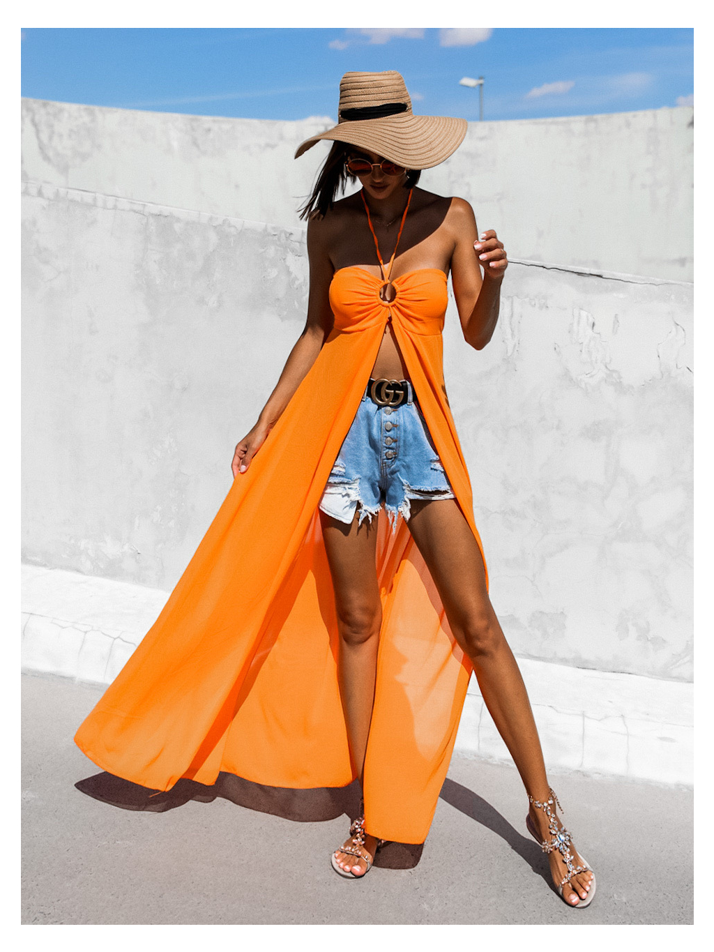 Oranžový dlouhý elegantní top ETELLE s průstřihy