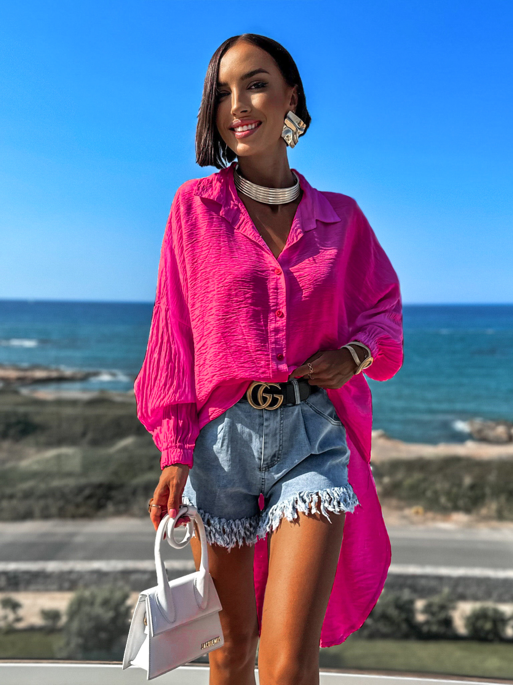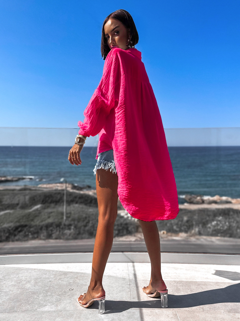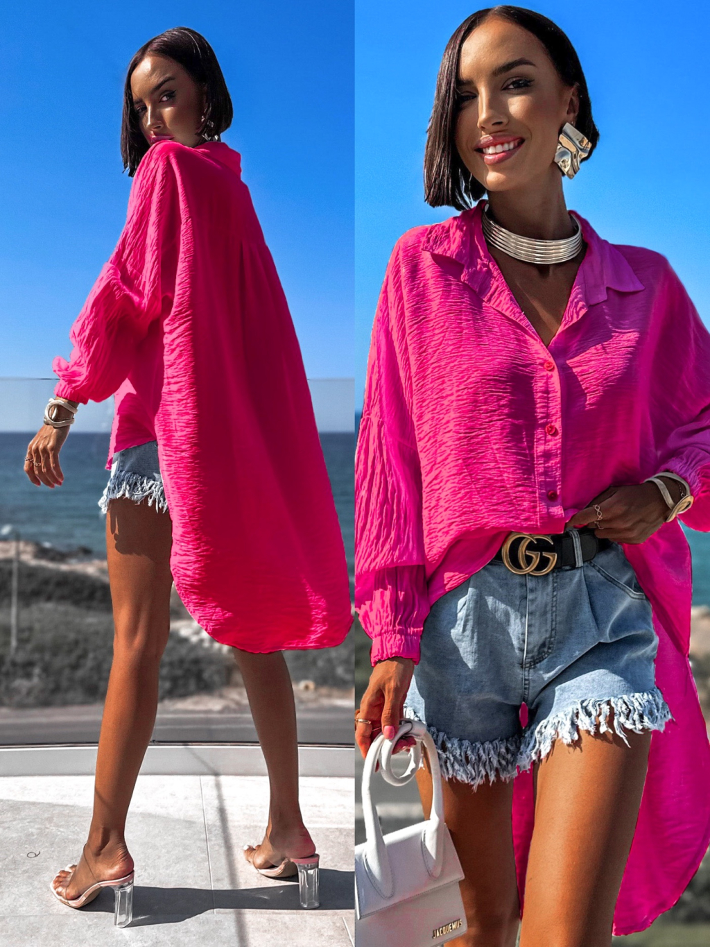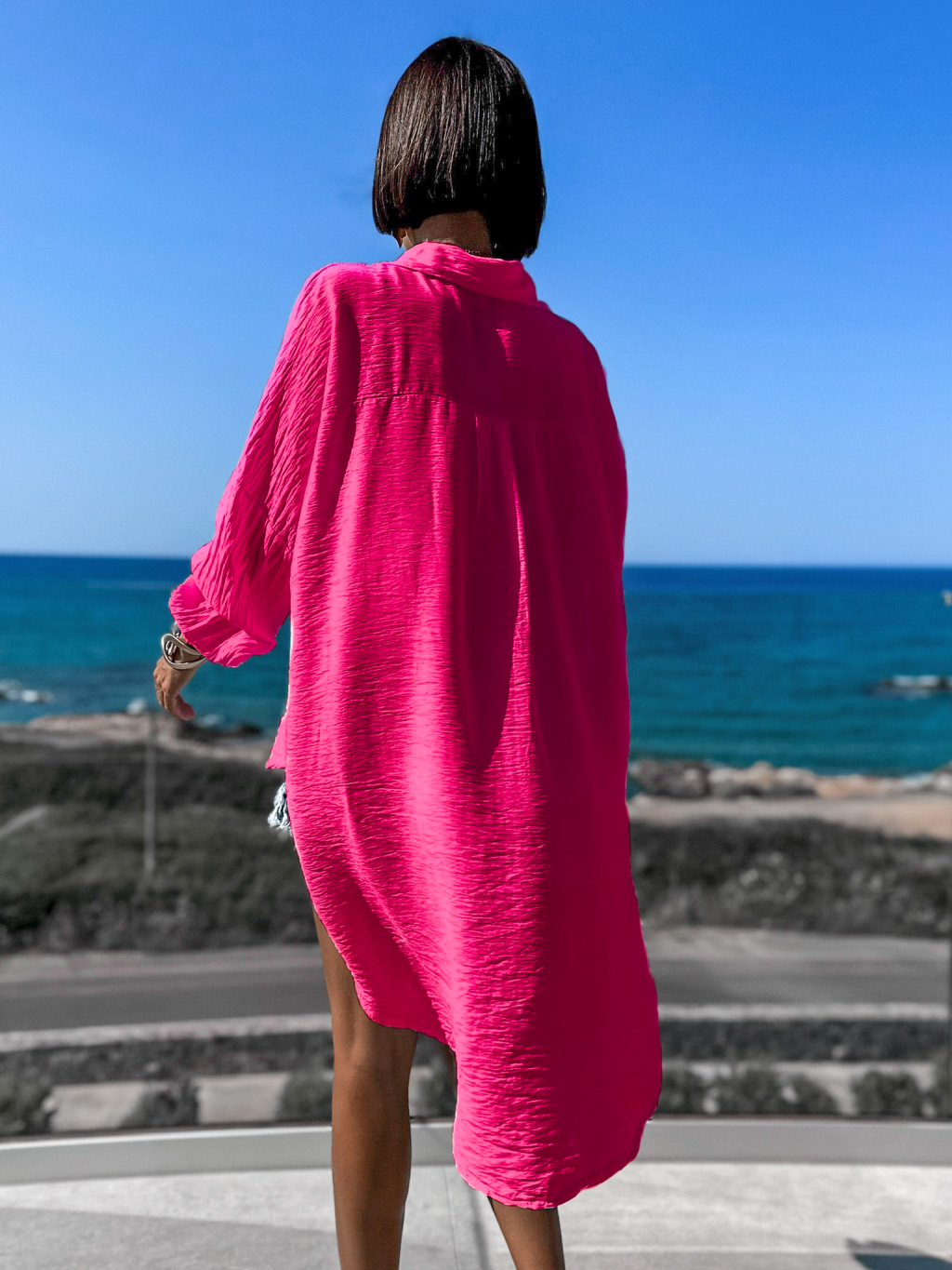 Růžová delší košile VENIEN s dlouhým rukávem